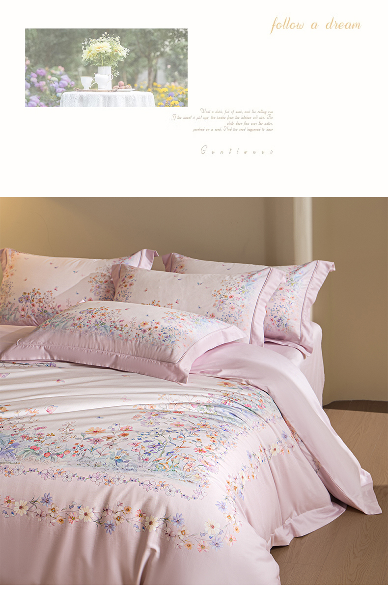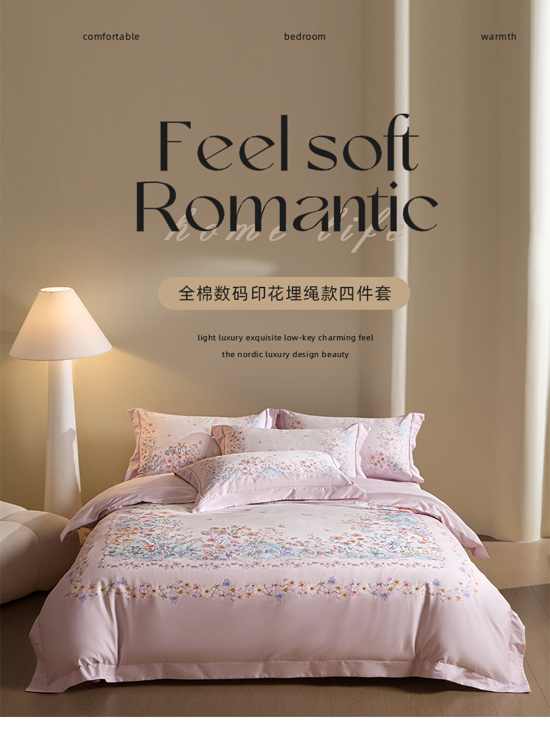 当前位置: 91家纺网 > 商品网购 > 床品套件 > 四件套 > 全棉普通四件套 > 禾时 2026新款全棉纯棉数码印花埋绳款四件套 花间逐梦(粉)