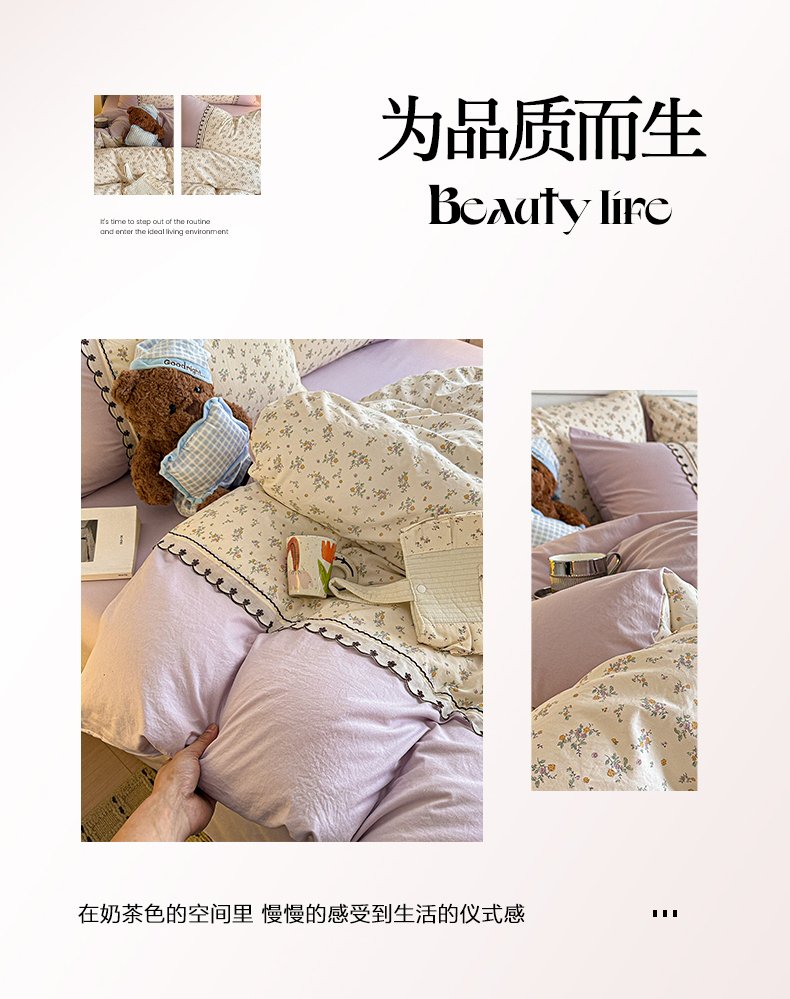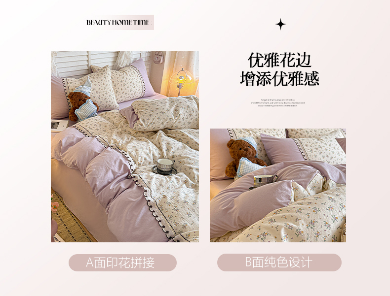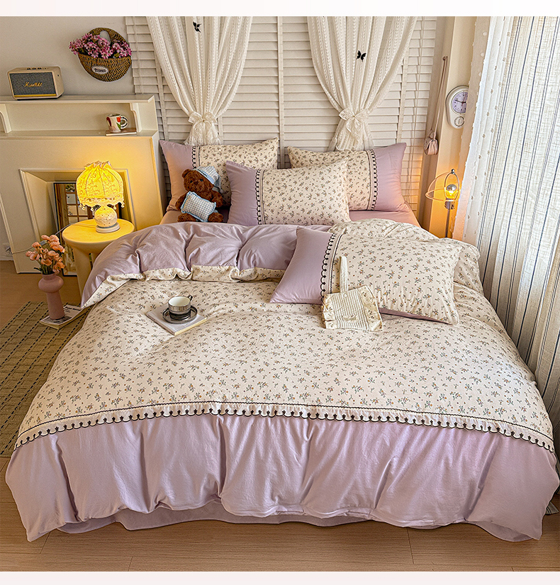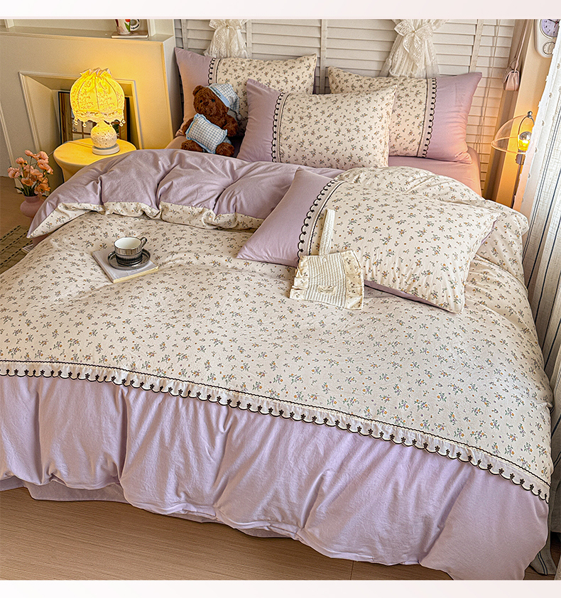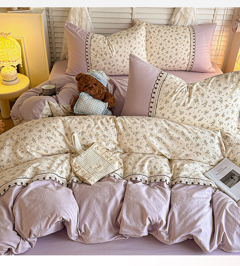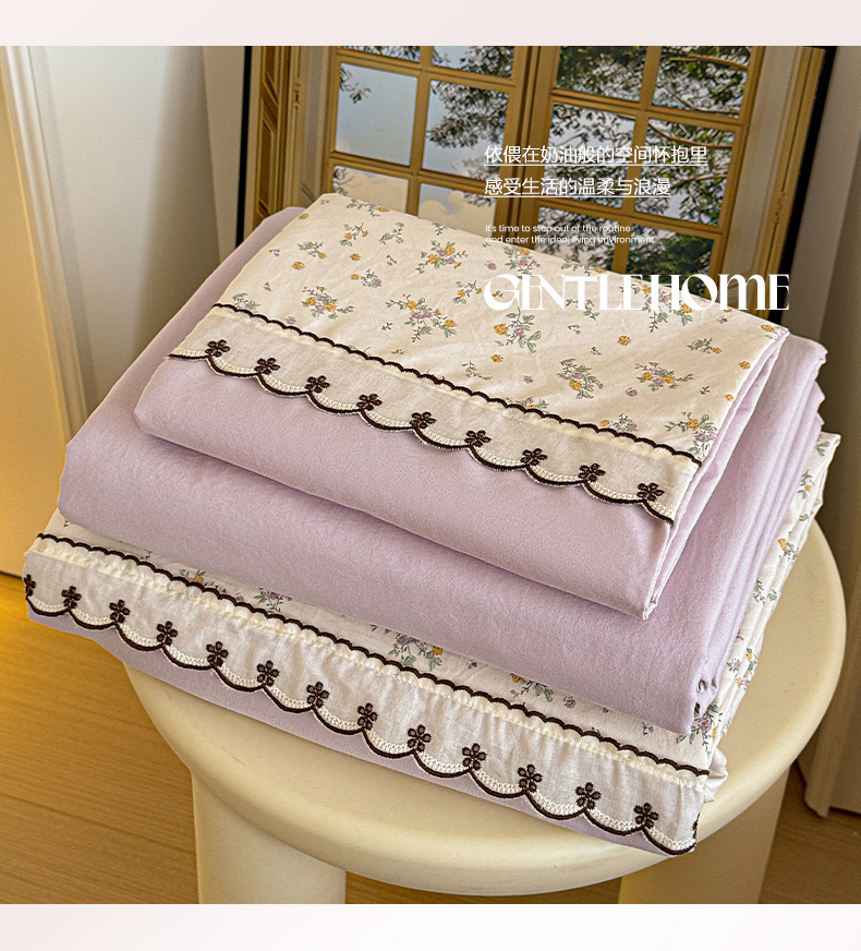 当前位置: 91家纺网 > 商品网购 > 床品套件 > 四件套 > 其它四件套 > 鑫利来家纺 2026新款古法水洗棉法式花边四件套甄选纯棉花边拼接款四件套印花被套床单单品四件 屿花