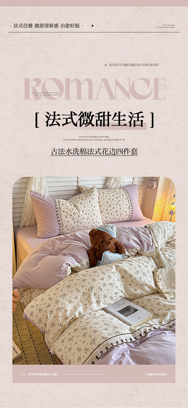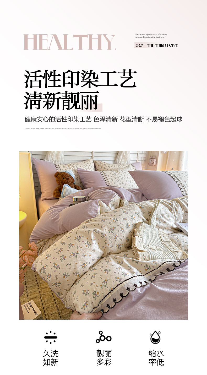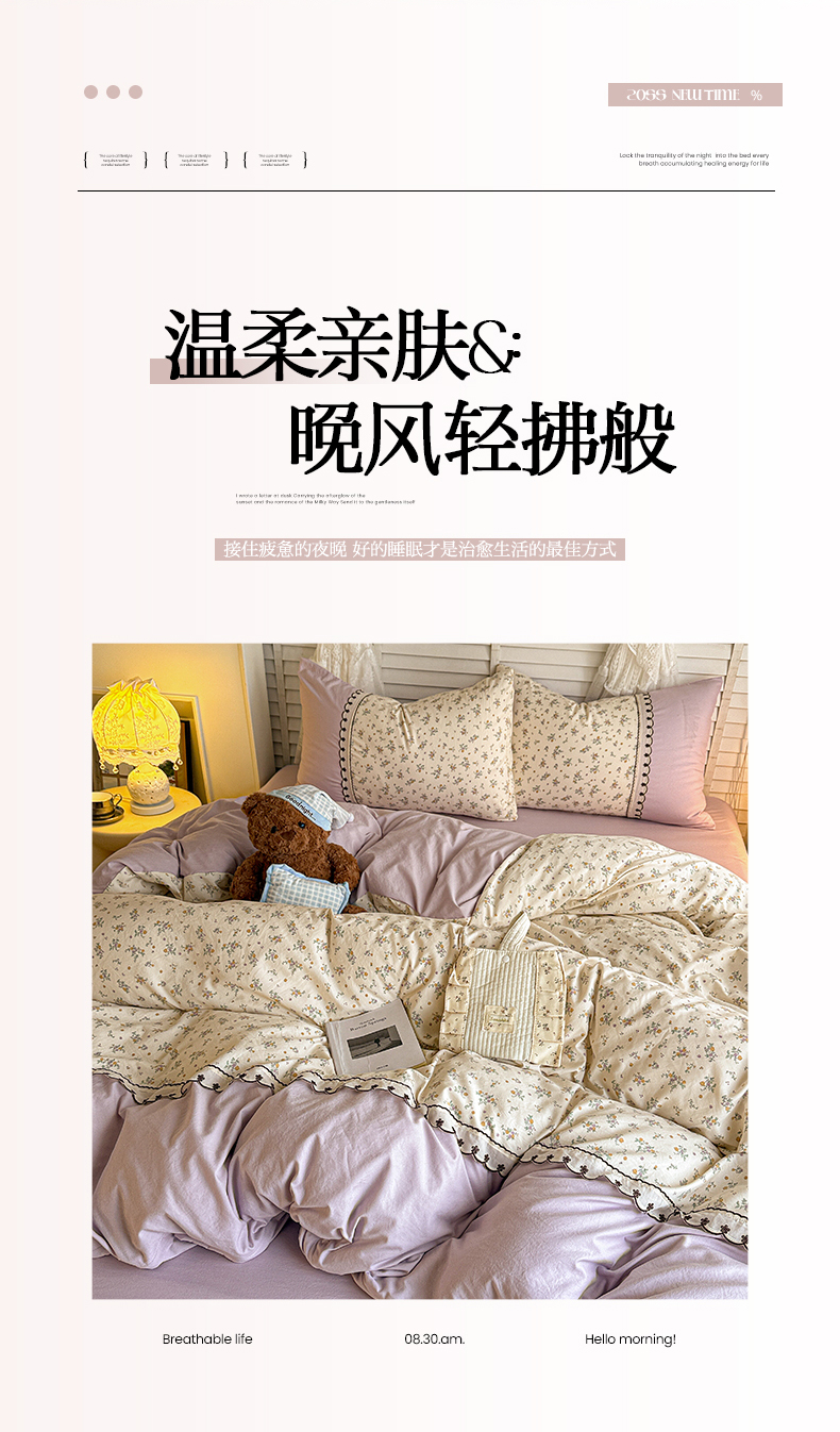 当前位置: 91家纺网 > 商品网购 > 床品套件 > 四件套 > 其它四件套 > 鑫利来家纺 2026新款古法水洗棉法式花边四件套甄选纯棉花边拼接款四件套印花被套床单单品四件 屿花