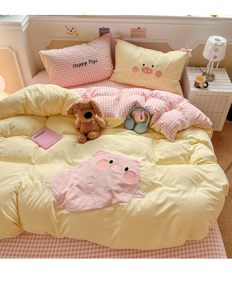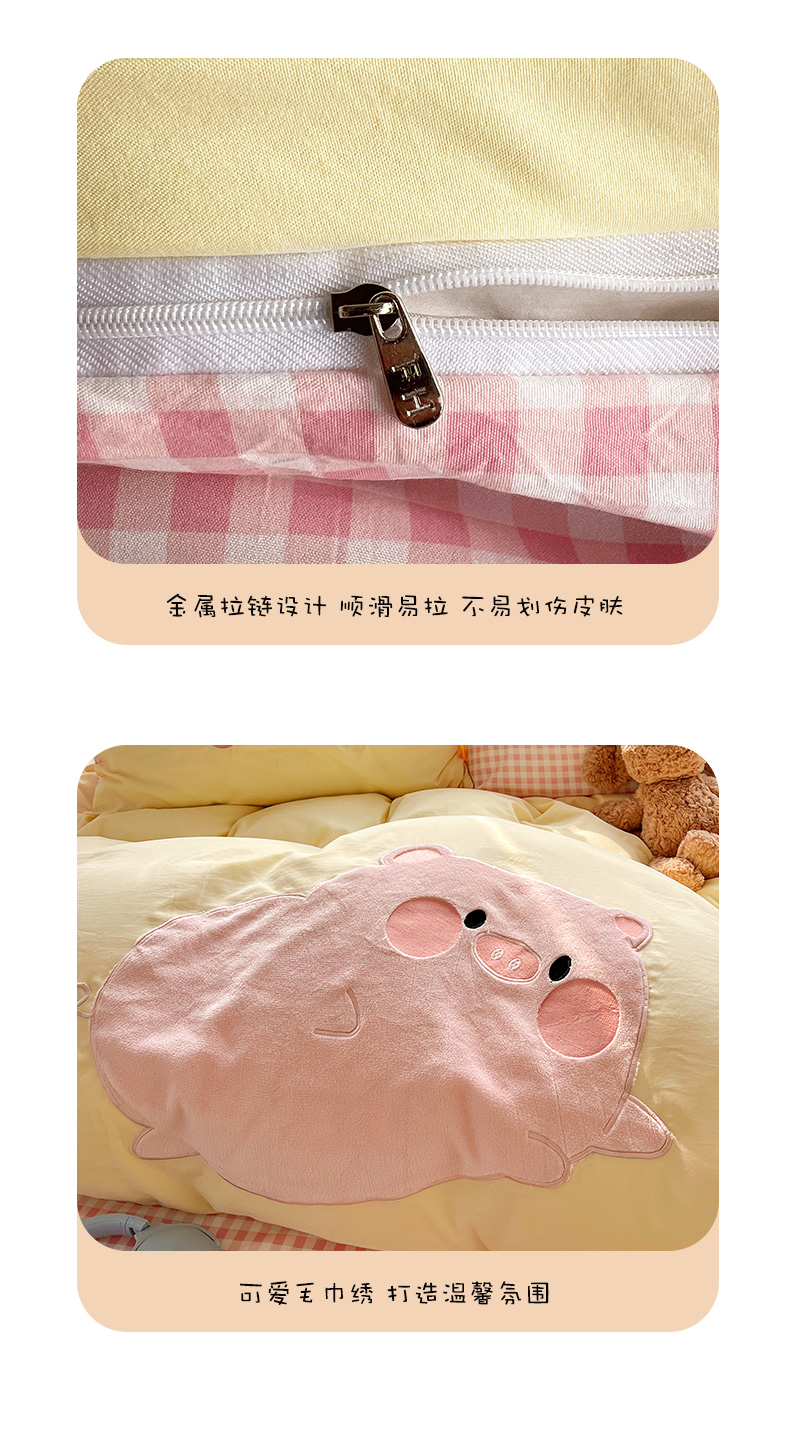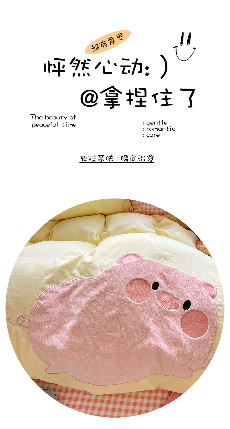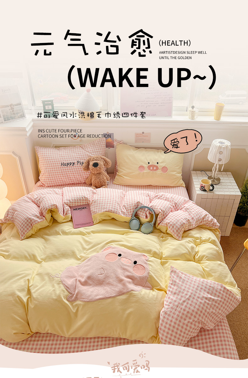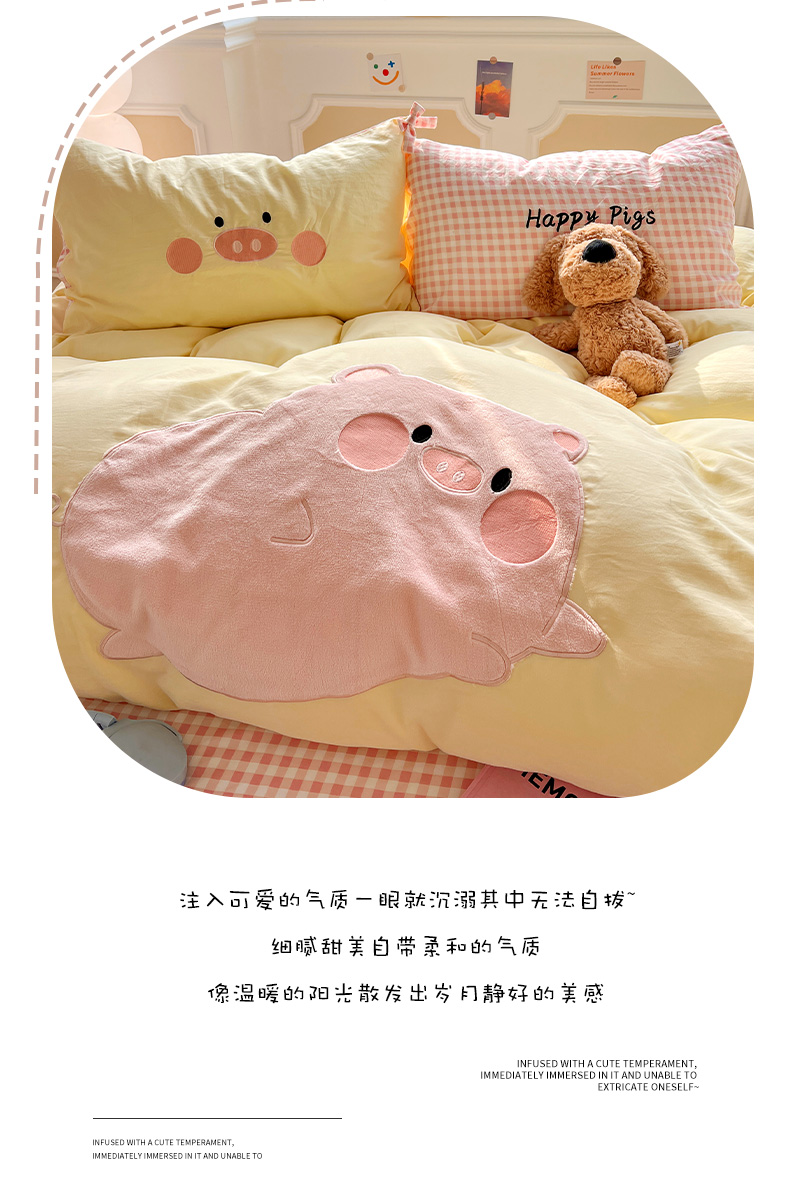 当前位置: 91家纺网 > 商品网购 > 床品套件 > 四件套 > 毛巾绣四件套 > 繁花家居 2026新款云感泡芙棉邹邹木棉可爱童趣贴布绣毛巾绣四件套 小粉猪