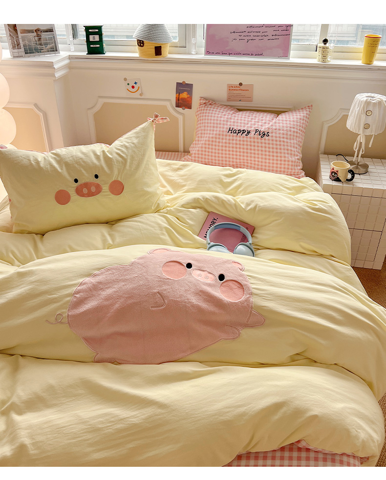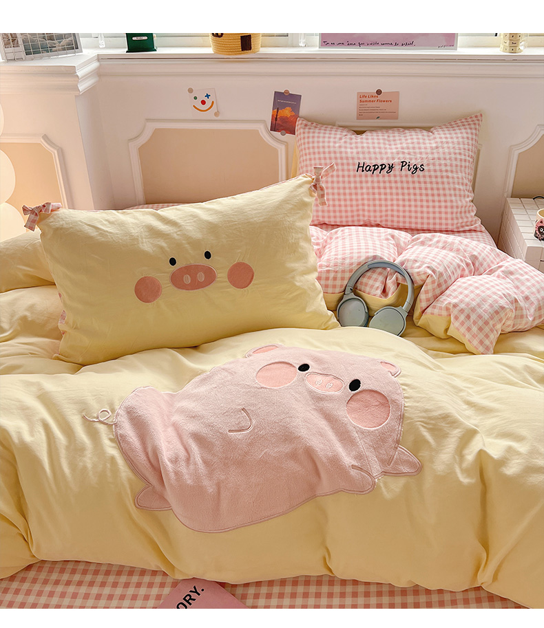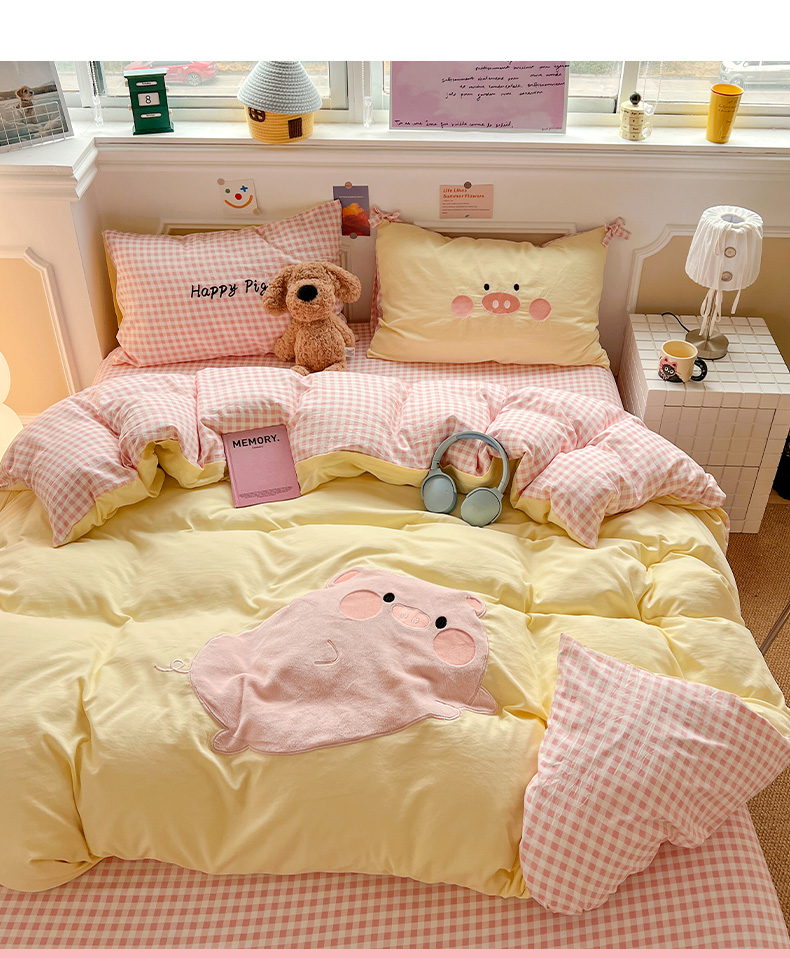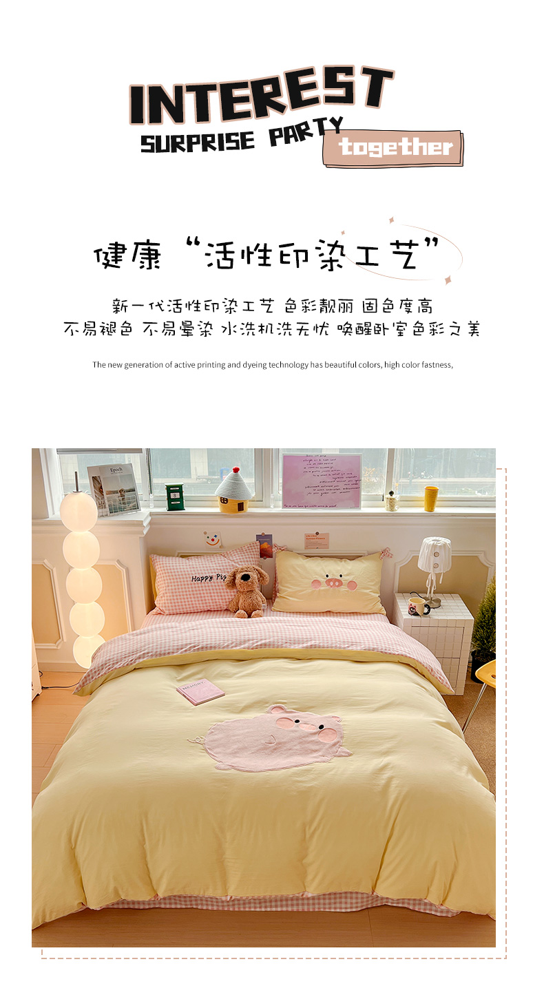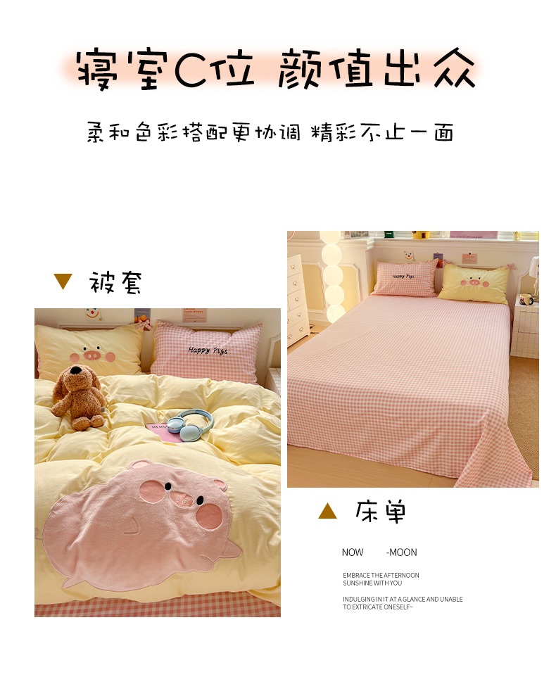 当前位置: 91家纺网 > 商品网购 > 床品套件 > 四件套 > 毛巾绣四件套 > 繁花家居 2026新款云感泡芙棉邹邹木棉可爱童趣贴布绣毛巾绣四件套 小粉猪