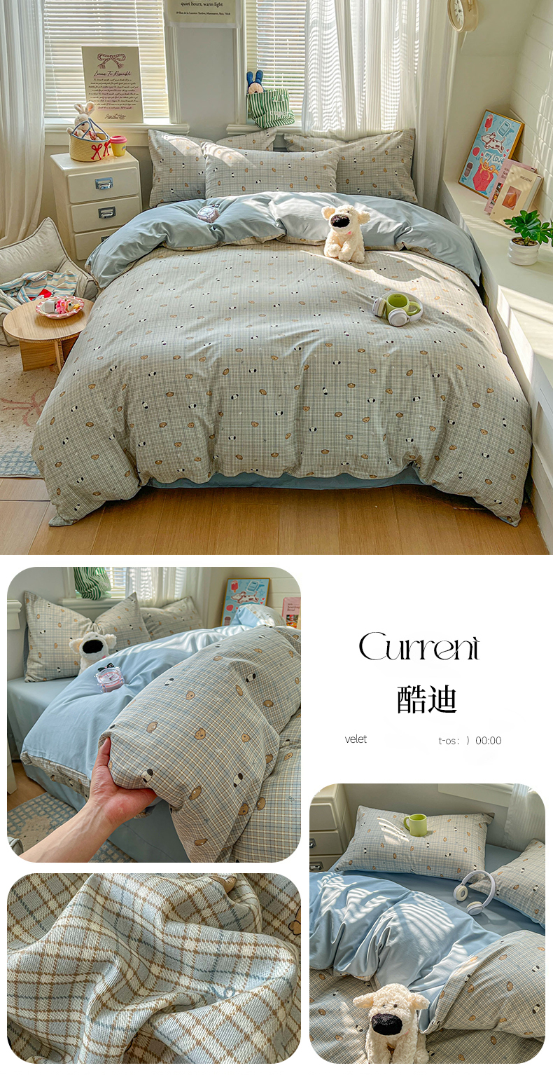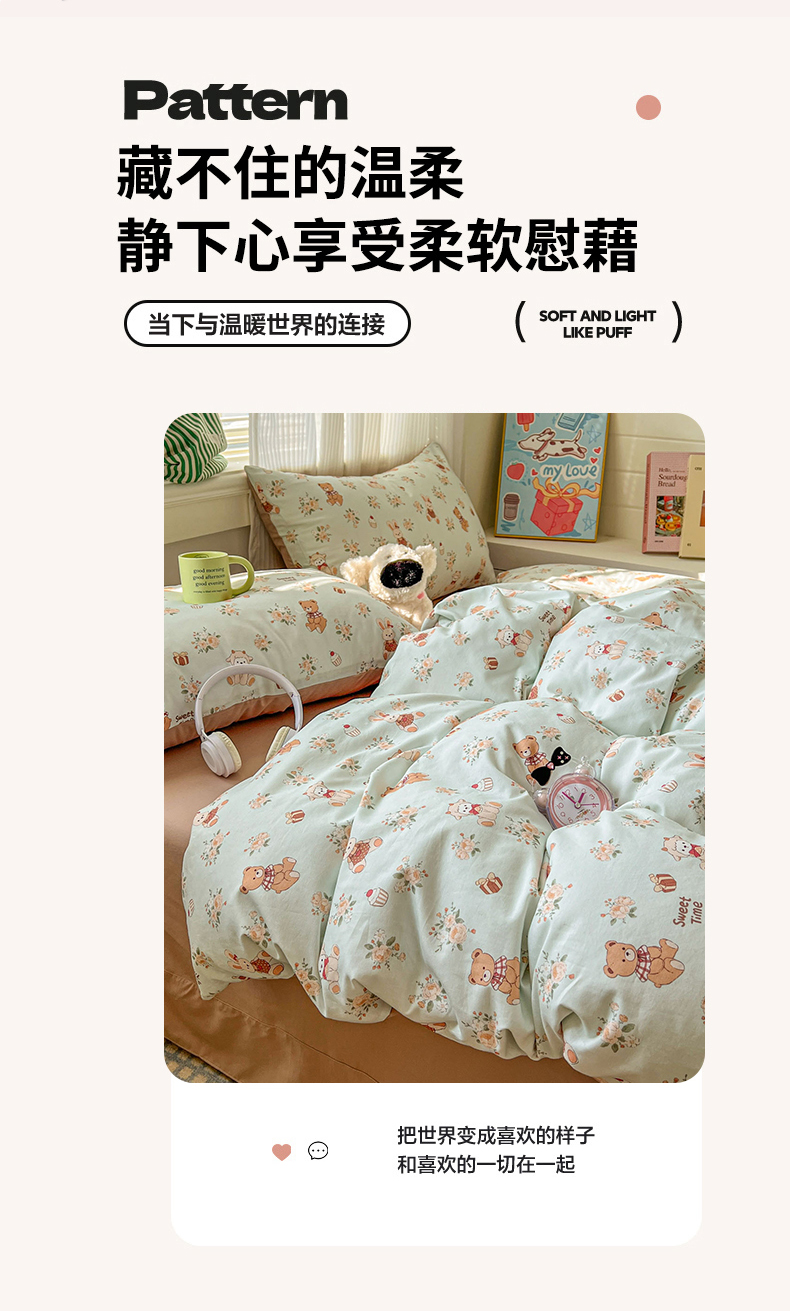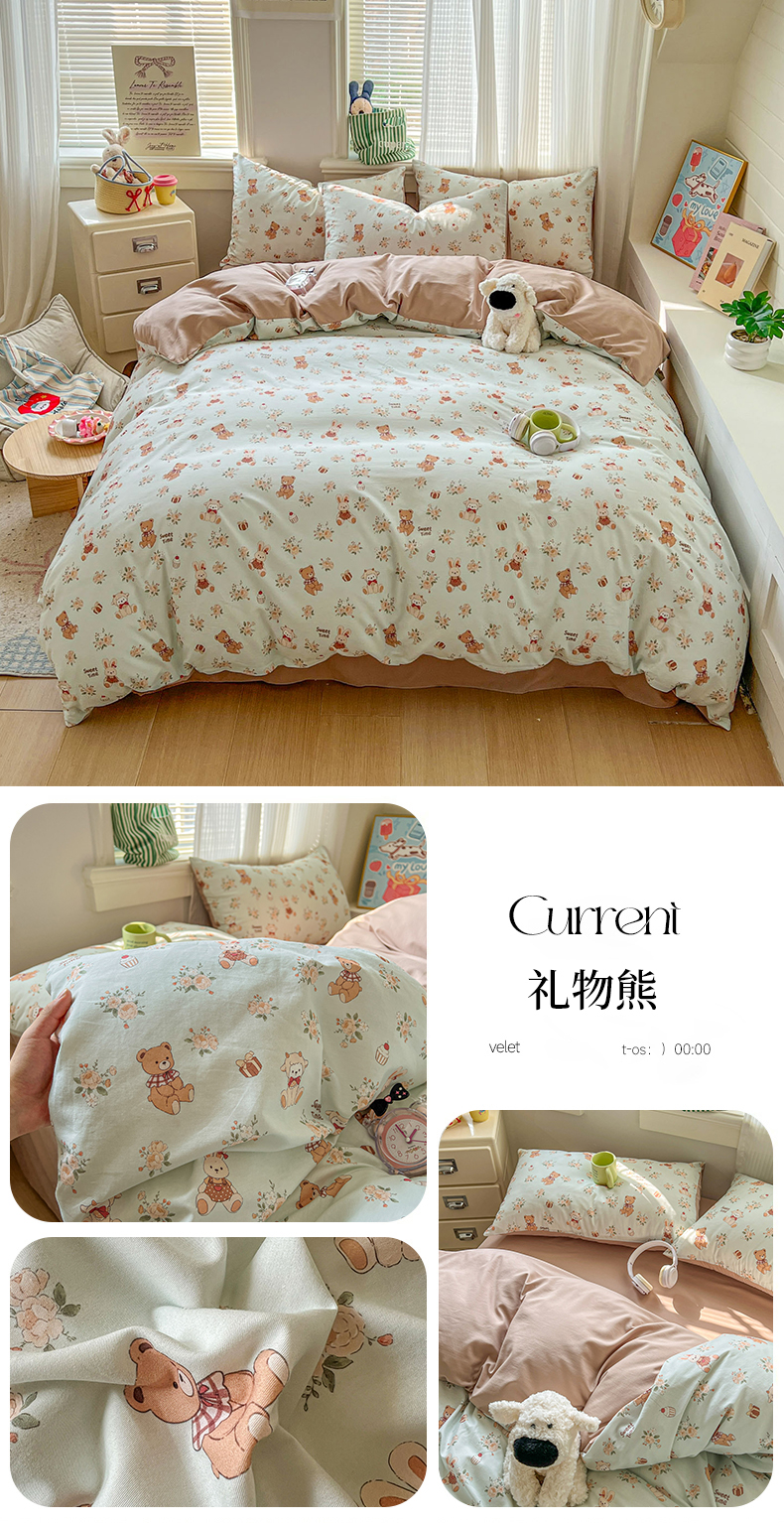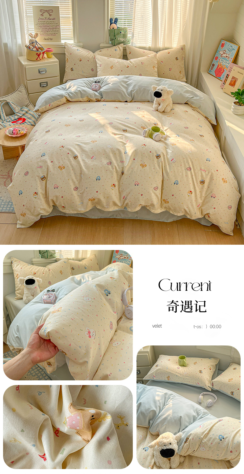 (总)漫仙阁家纺 2026新款纯棉学生宿舍A版100%新疆棉B版古法水洗三件套全棉四件套,草莓甜心,戚风浅夏,粉色蜜恋,哨兵熊,告白,奇遇记,星星人,酷迪,小木马,粉桃,朝花夕拾,礼物熊,抹茶花语,南瓜派对,奶酪狗