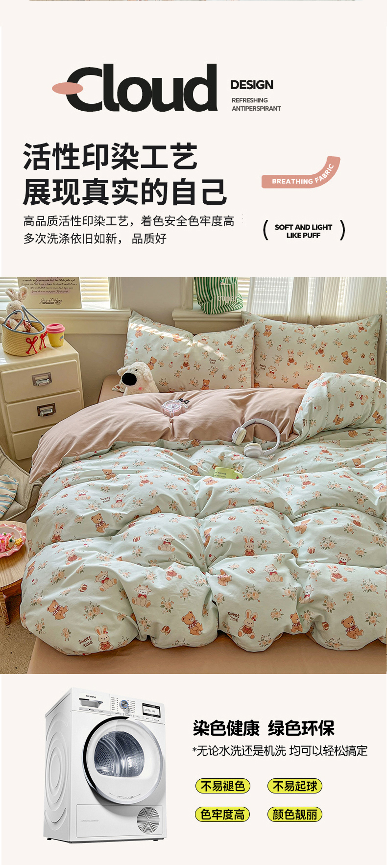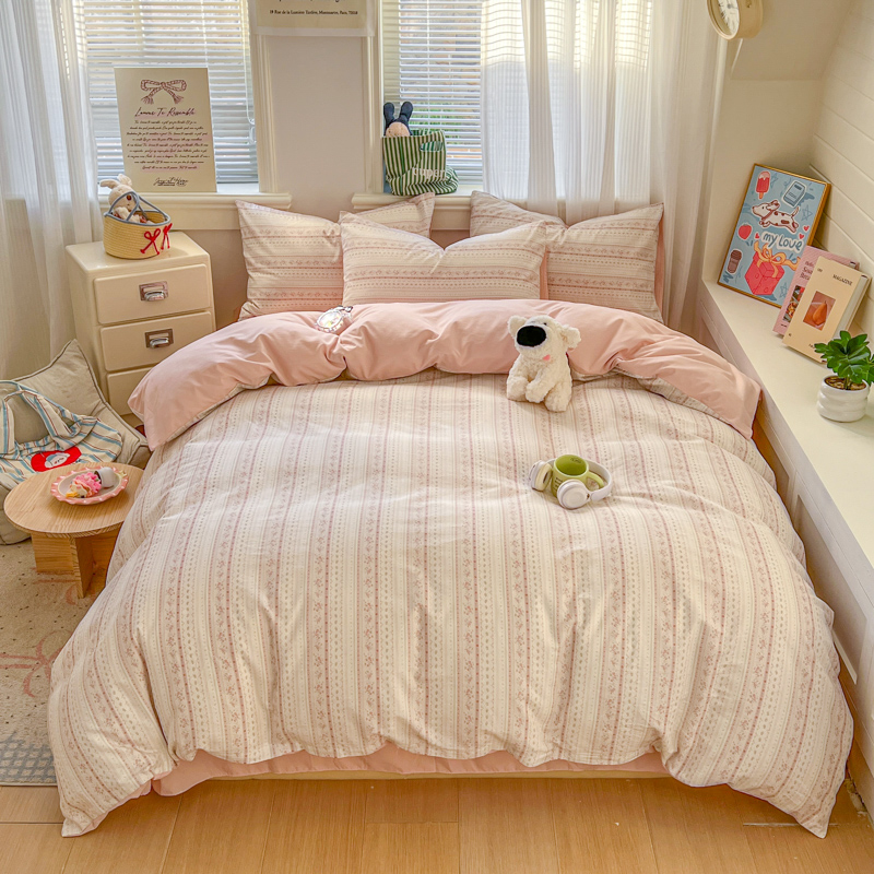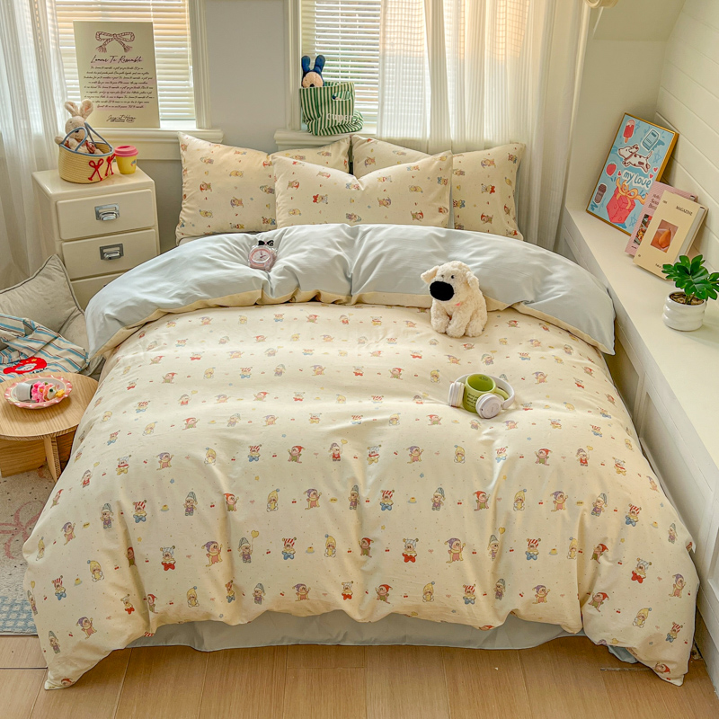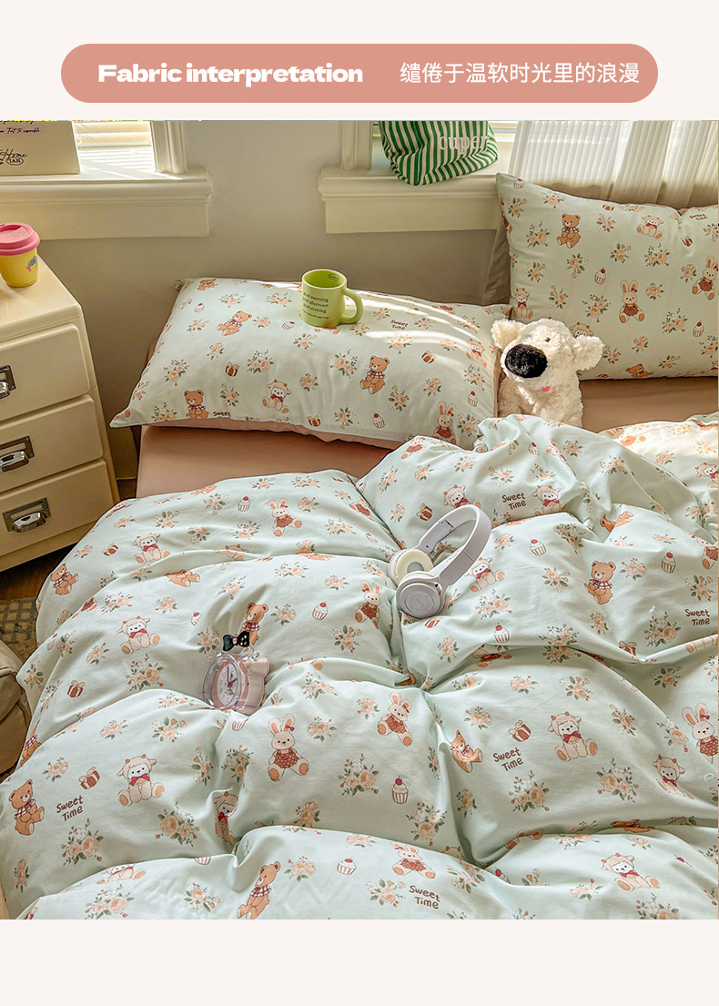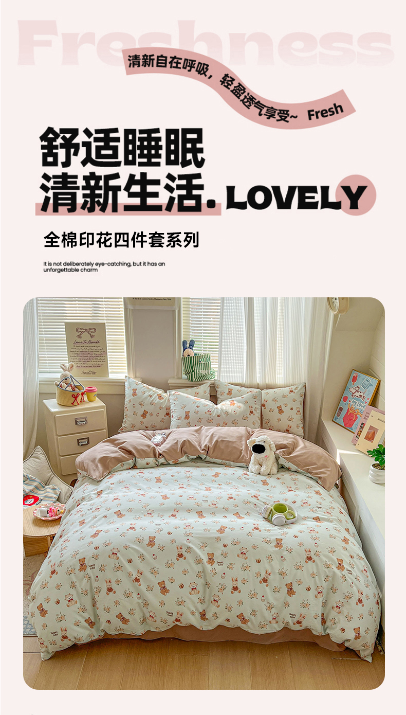 (总)漫仙阁家纺 2026新款纯棉学生宿舍A版100%新疆棉B版古法水洗三件套全棉四件套,草莓甜心,戚风浅夏,粉色蜜恋,哨兵熊,告白,奇遇记,星星人,酷迪,小木马,粉桃,朝花夕拾,礼物熊,抹茶花语,南瓜派对,奶酪狗