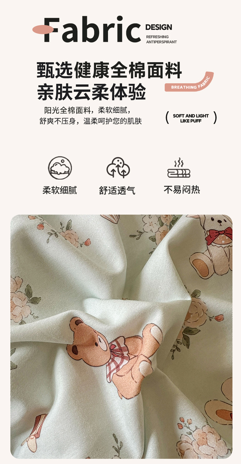 (总)漫仙阁家纺 2025新品云朵棉可爱风卡通烫画单床笠枕套三件套,小浣熊,邻家女孩,小青蛙,兔小姐,花仙子,狗狗家族