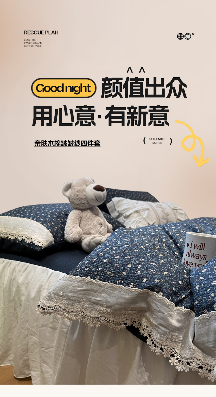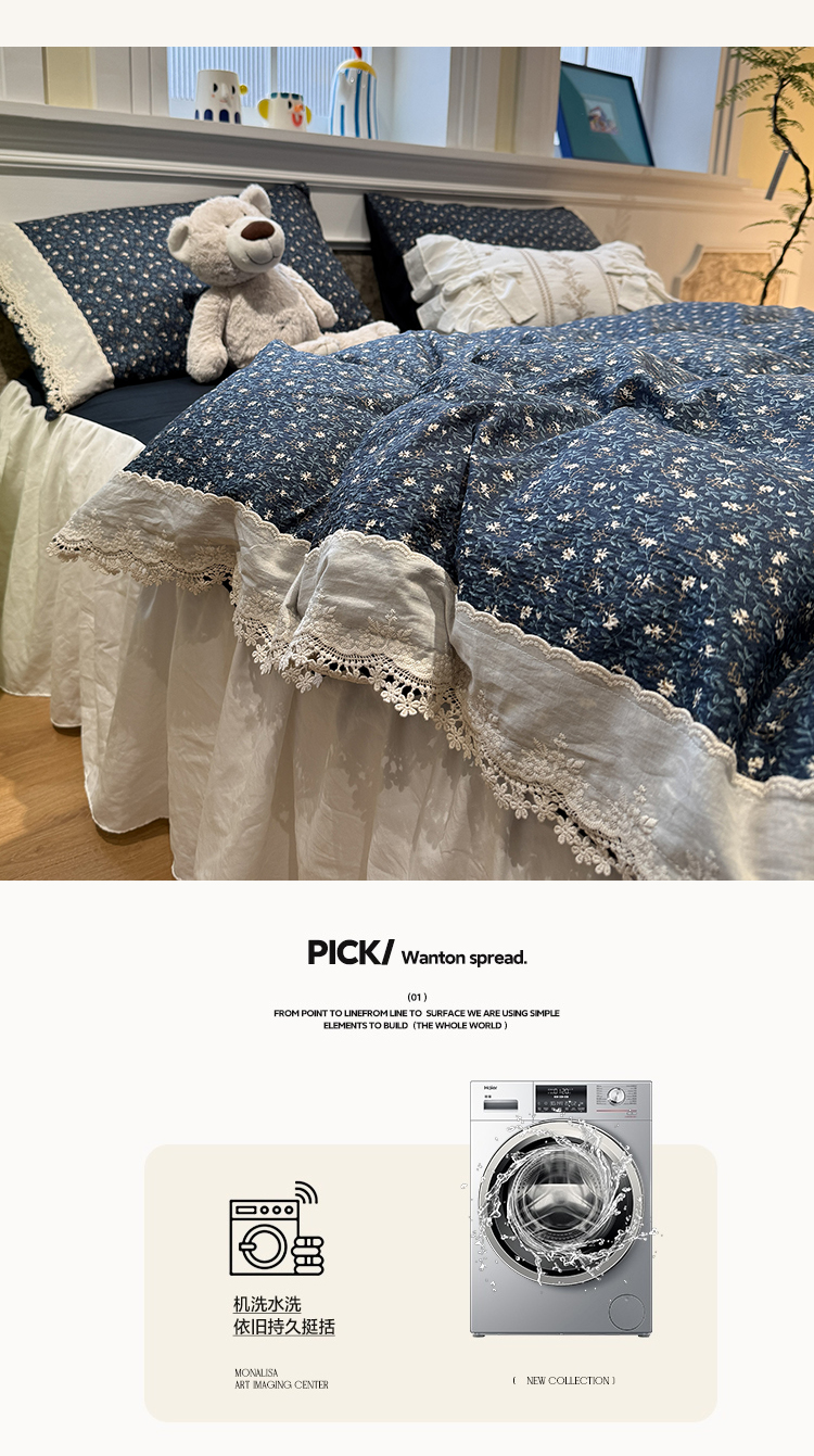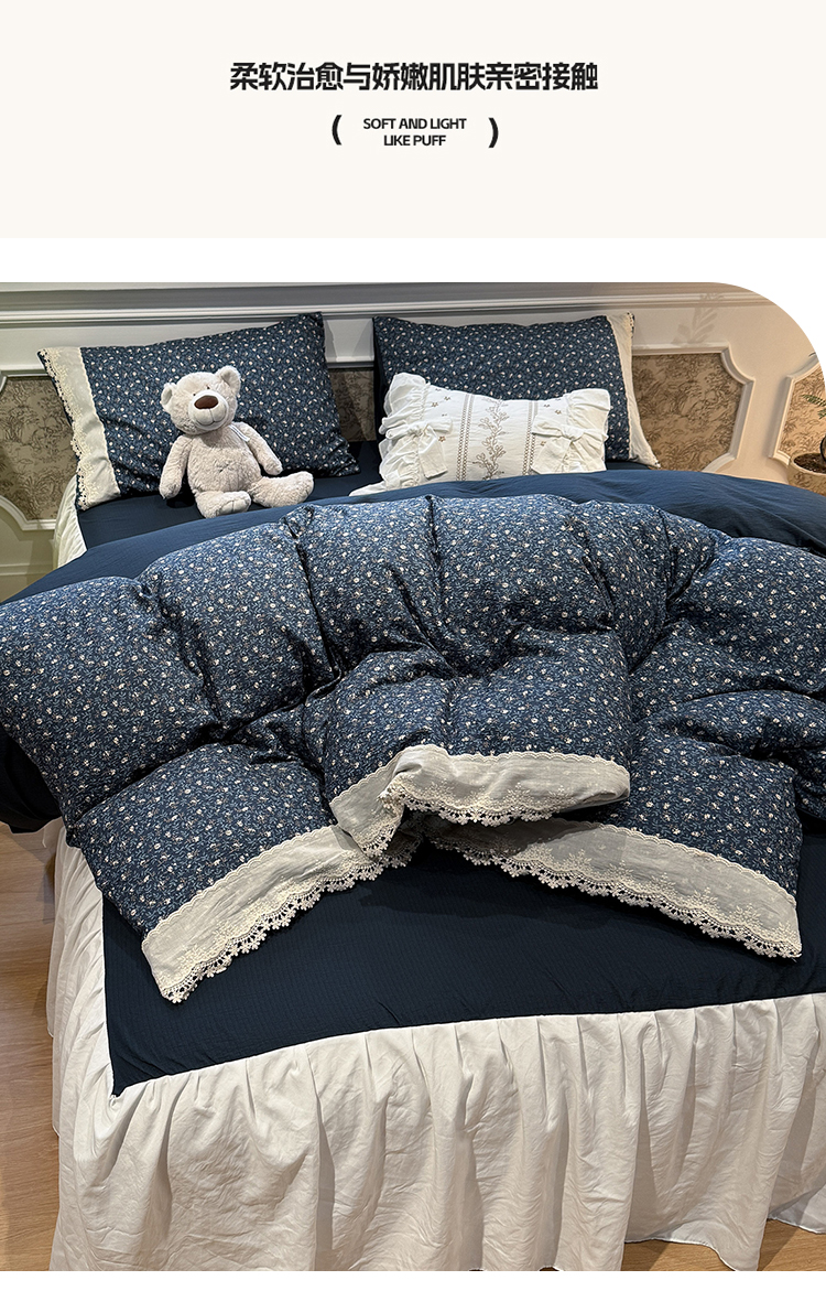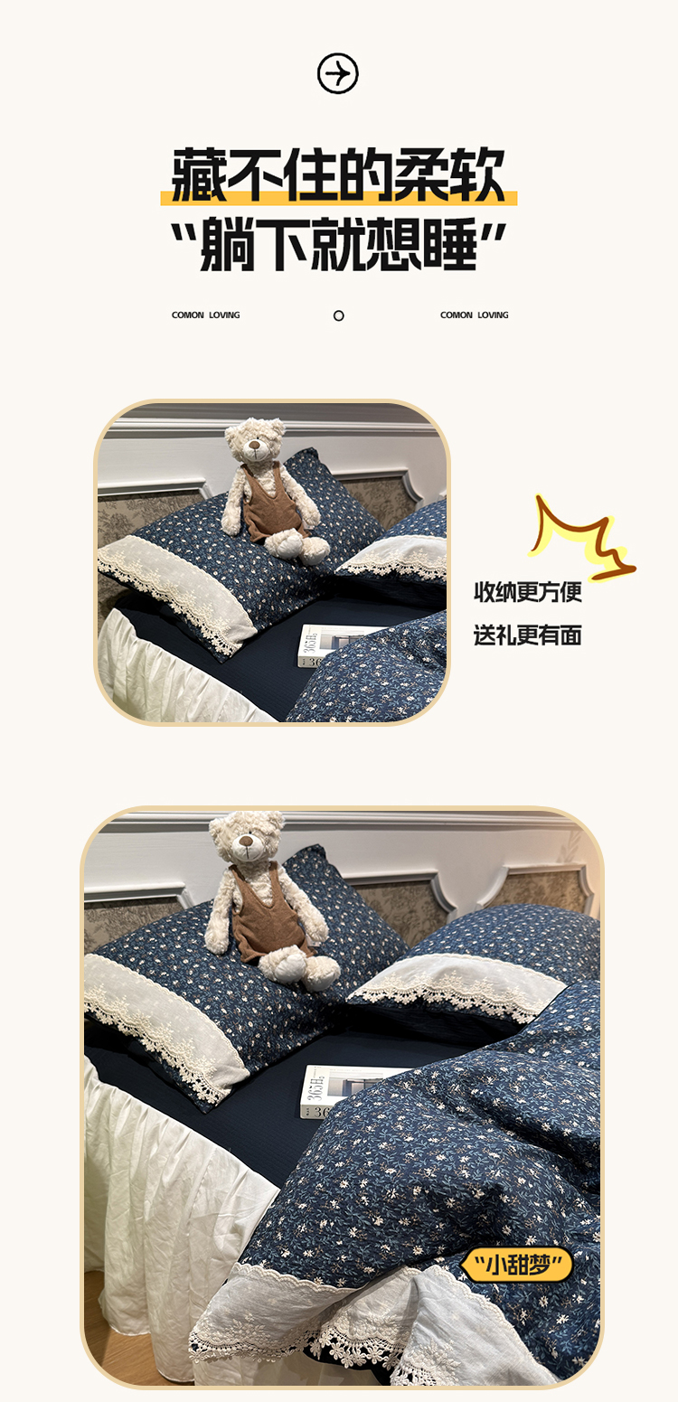 当前位置: 91家纺网 > 商品网购 > 床品套件 > 四件套 > 其它四件套 > 盼季家纺 2026新款亲肤木棉法式复古蕾丝花边皱皱纱四件套 复古蕾丝花边-南法假日
