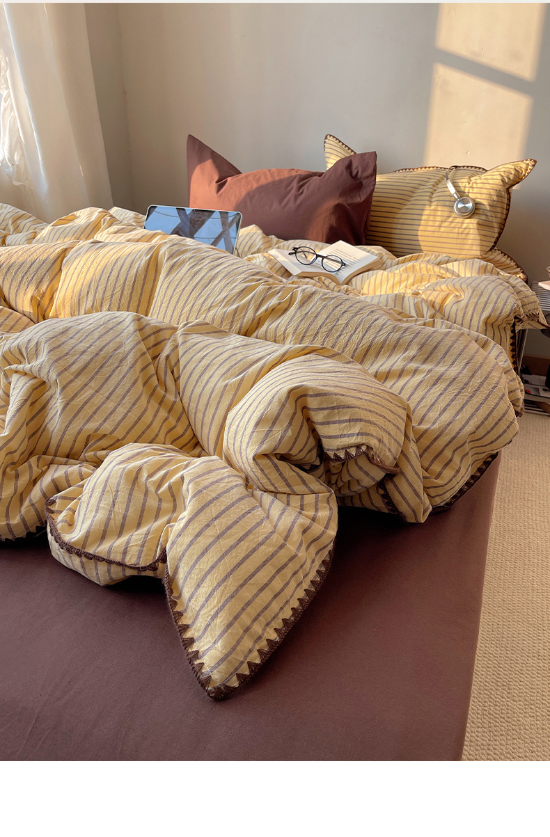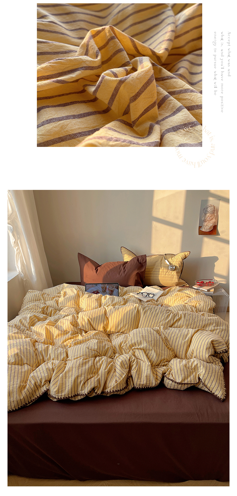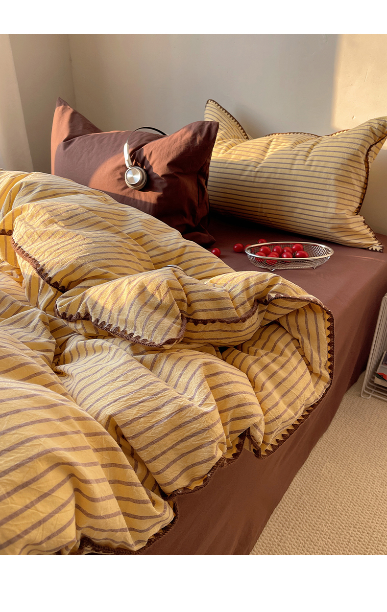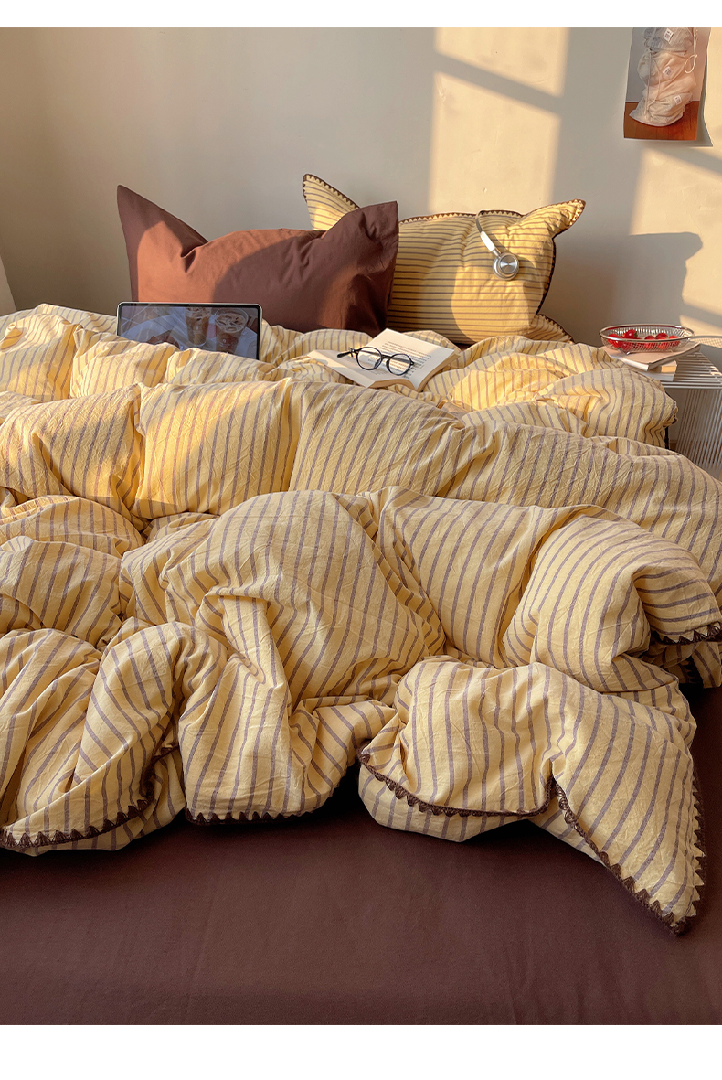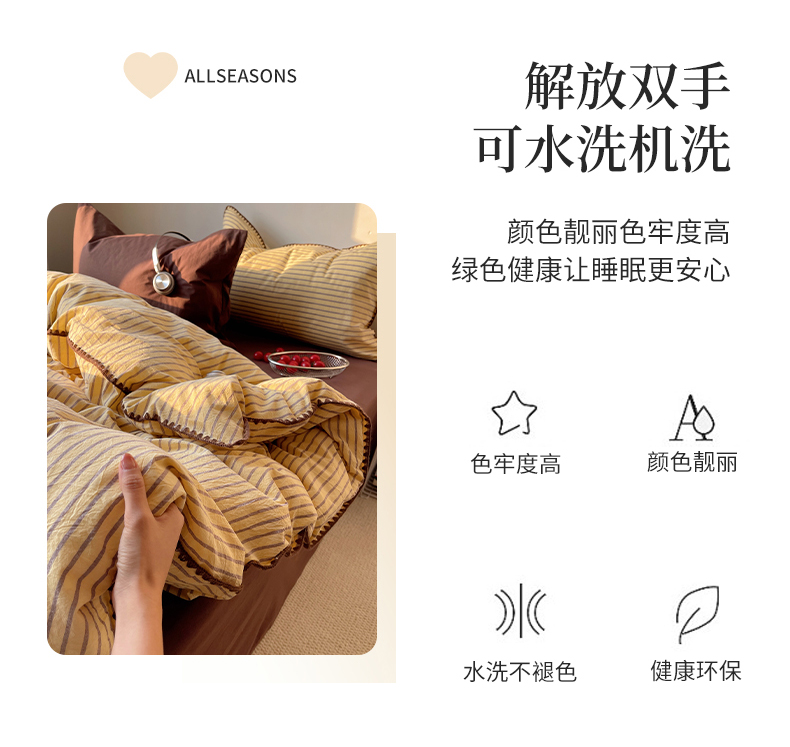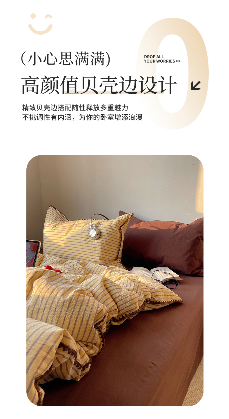 当前位置: 91家纺网 > 商品网购 > 床品套件 > 四件套 > 全棉普通四件套 > 瑞莱 2026年新款全棉纯棉水洗棉贝壳边四件套 暖阳黄棕