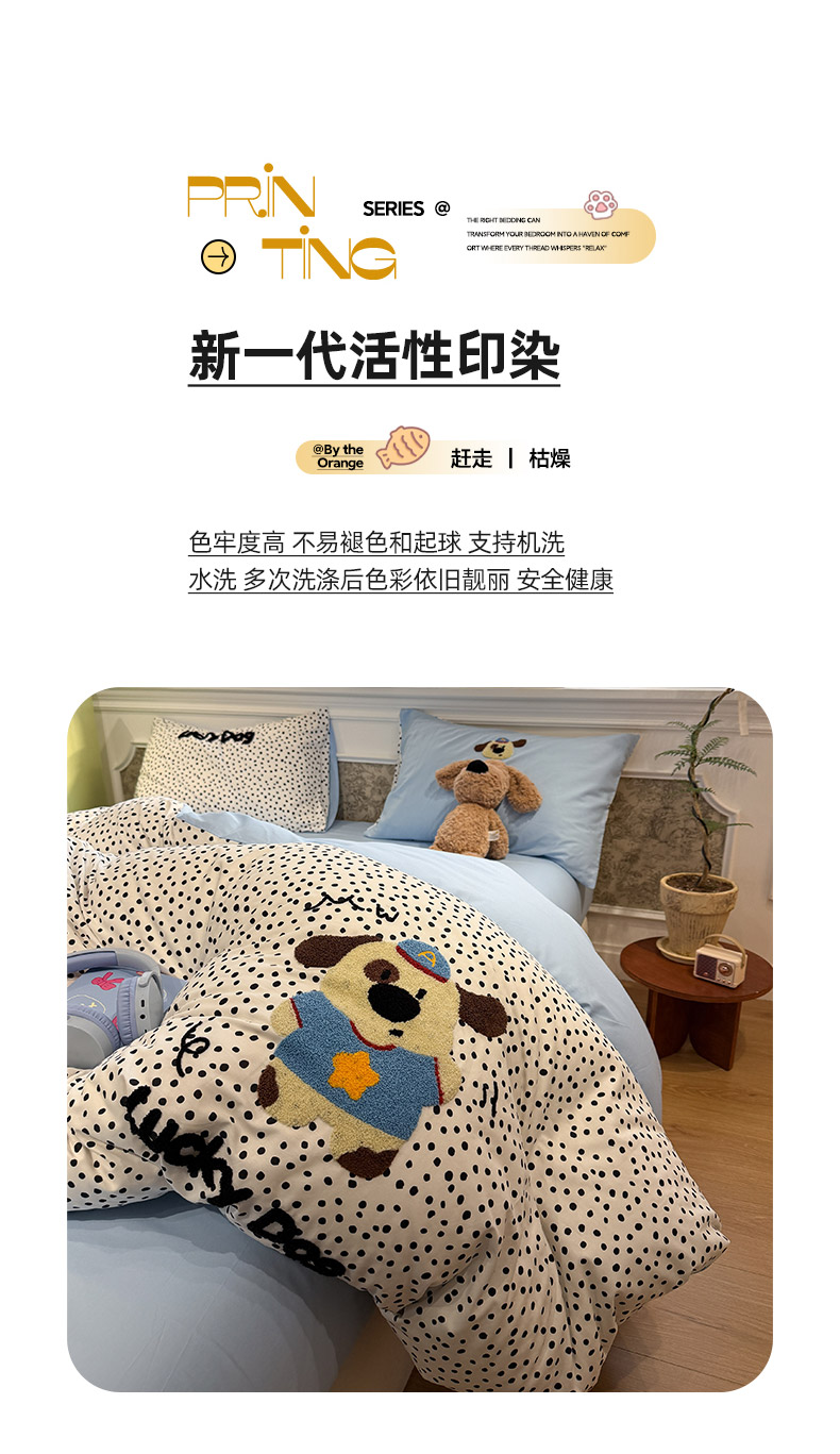 当前位置: 91家纺网 > 商品网购 > 床品套件 > 四件套 > 全棉普通四件套 > 怡家居 2026新款全棉纯棉印花立体毛巾绣四件套 快乐精灵