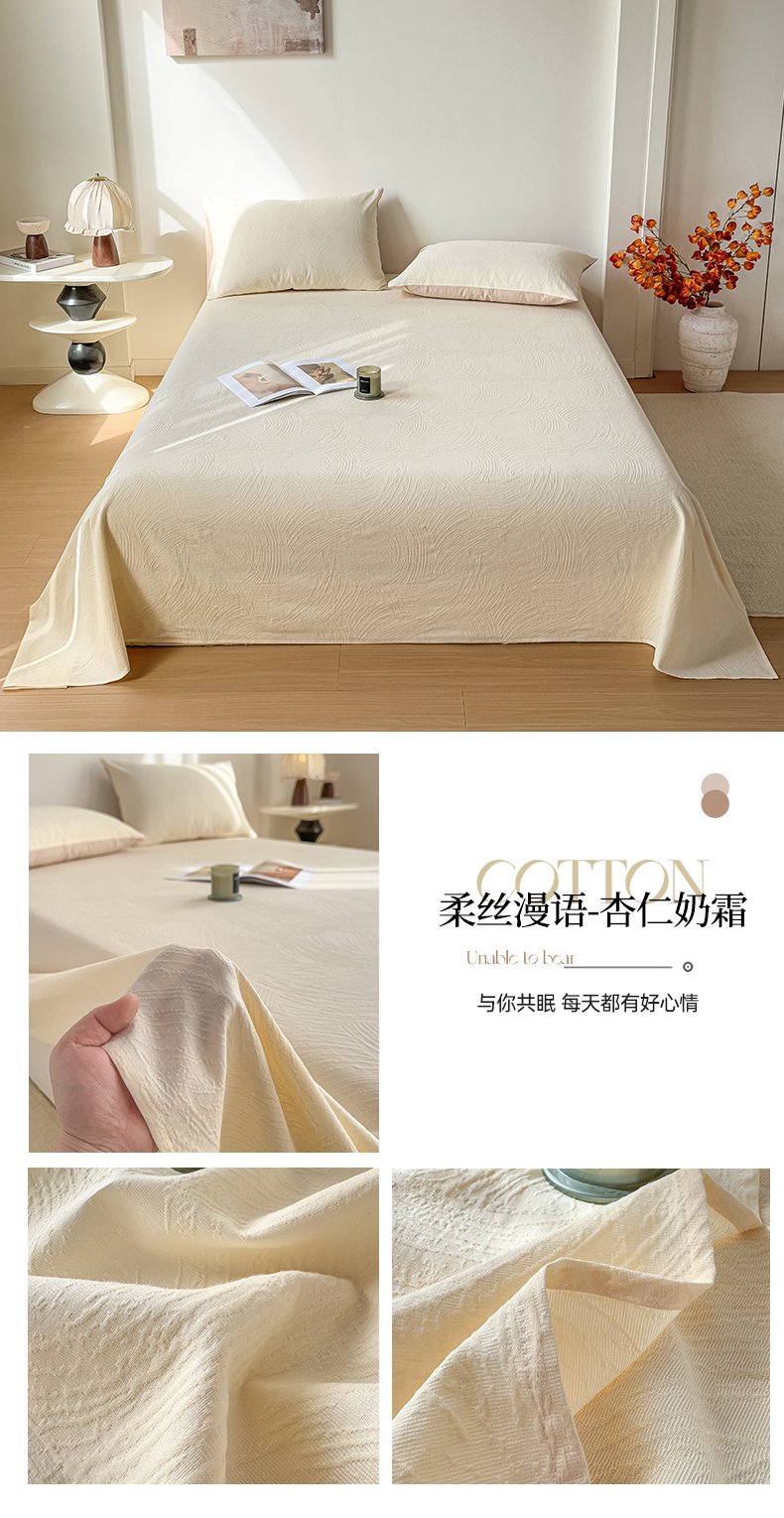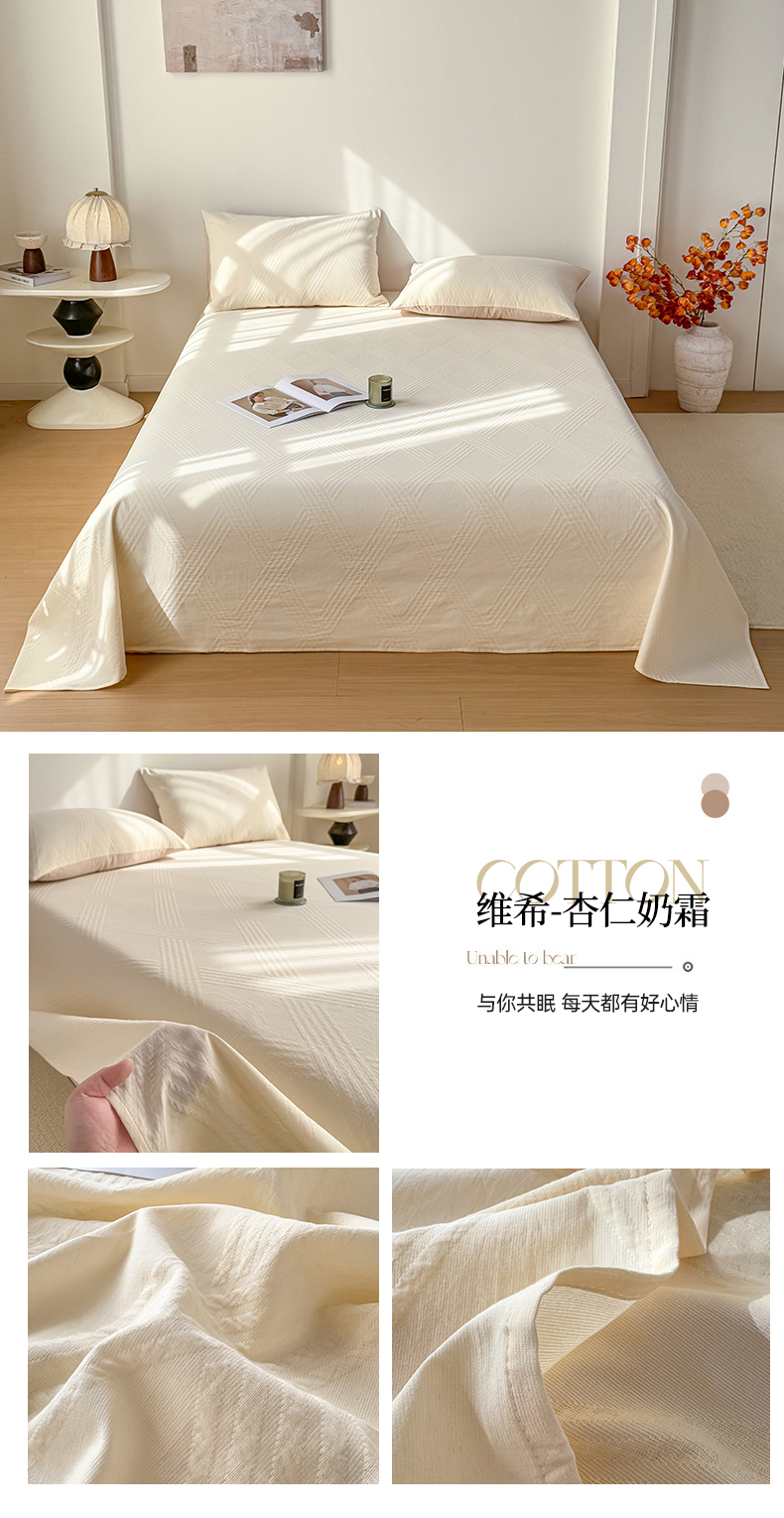 • 91家纺网 家纺一手货源 找家纺 灰鲸 2026新款全棉纯棉厚织三层水洗色织提花床单单床单床单单件 维希-杏仁奶霜