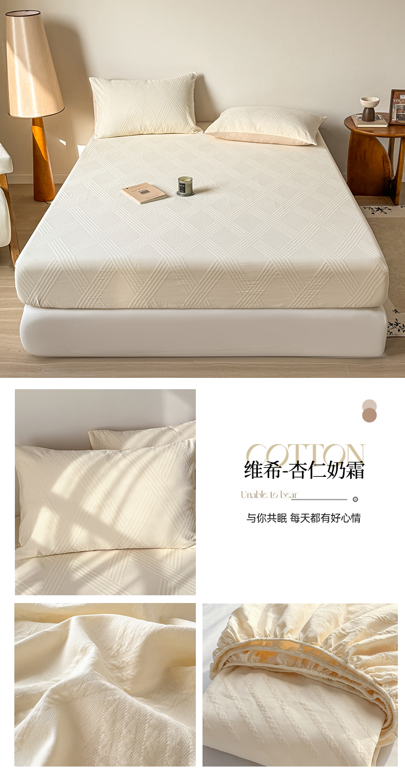 • 91家纺网 家纺一手货源 找家纺 灰鲸 2026新款全棉纯棉厚织三层水洗色织提花床笠单品床笠床笠单件 维希-杏仁奶霜