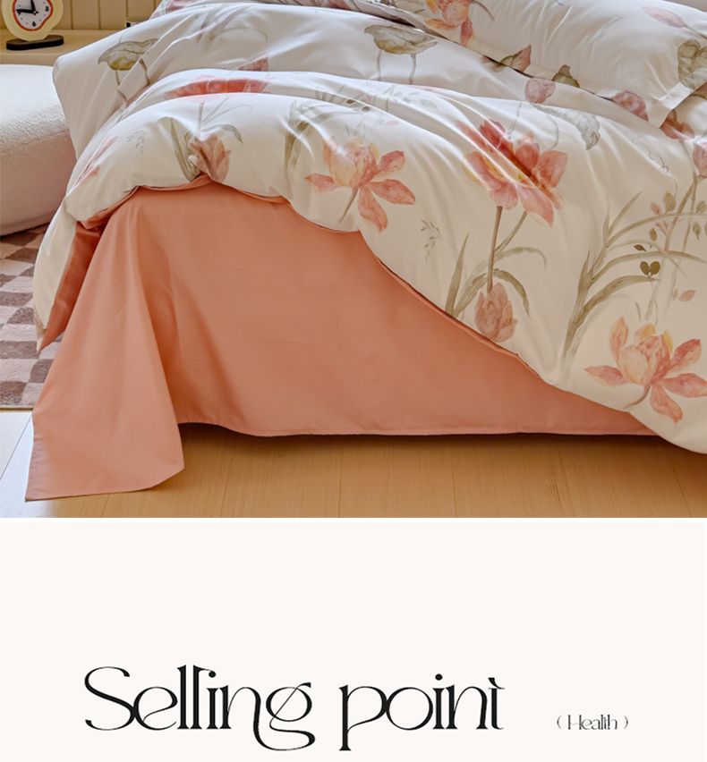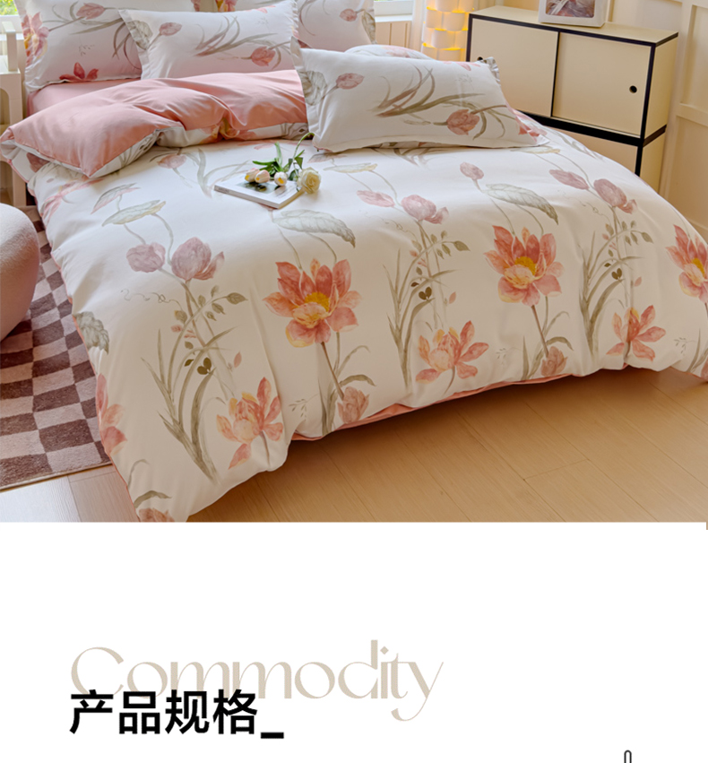 商品名称:佑佳2024新款140克磨毛印花植物羊绒四件套直播 月下荷塘