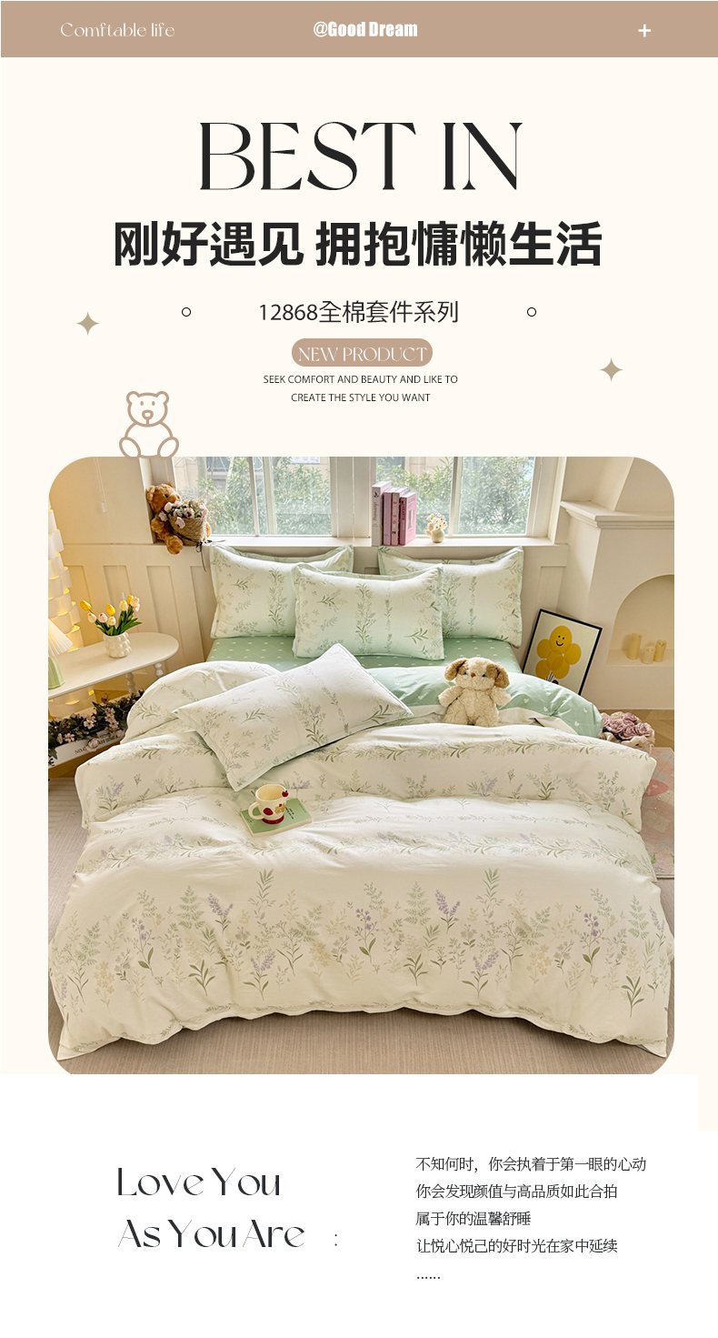 (总)简冠家纺 2026新款12868印花全棉四件套纯棉四件套,贝贝莉亚-黄,布朗熊,城南花开,初享时光-咖,初心-粉,初心-绿,精灵王国-黄,快乐动物城,生活日记-蓝,碎花拾影,田园诗篇-米,小飞象,星空印记