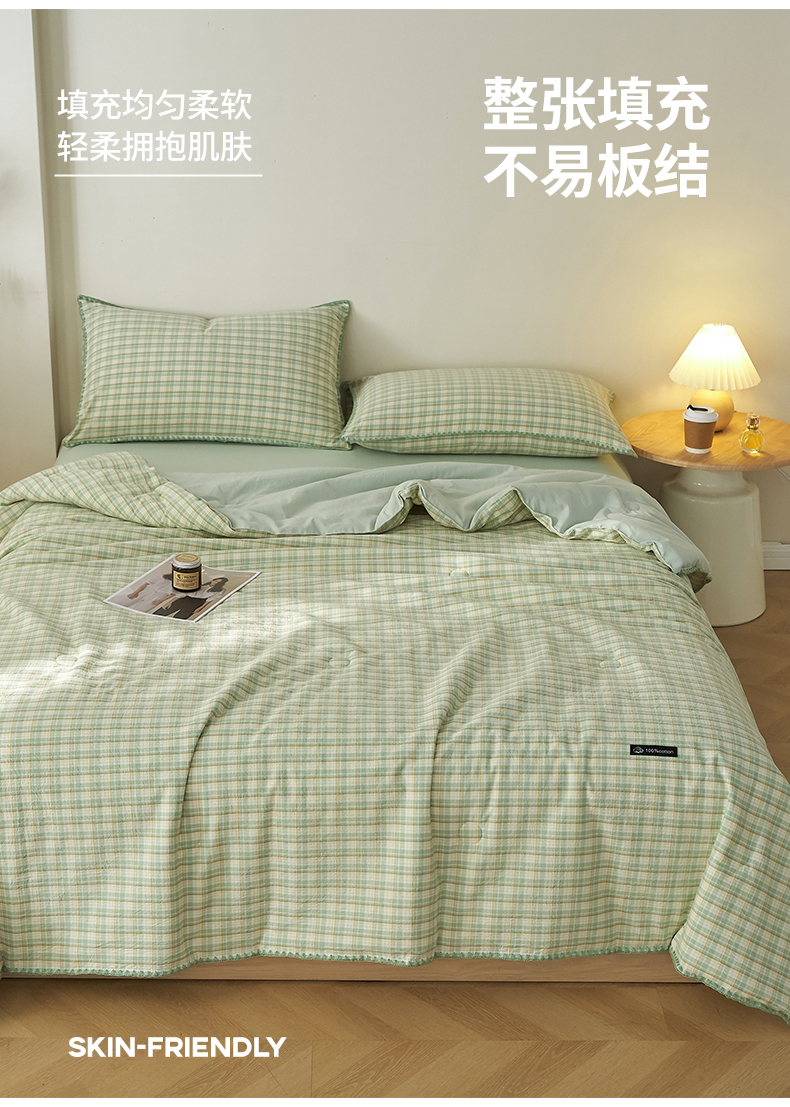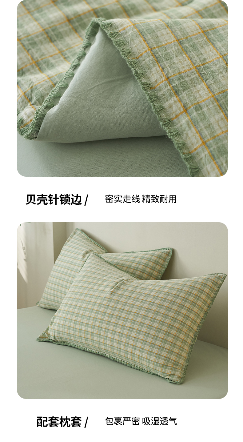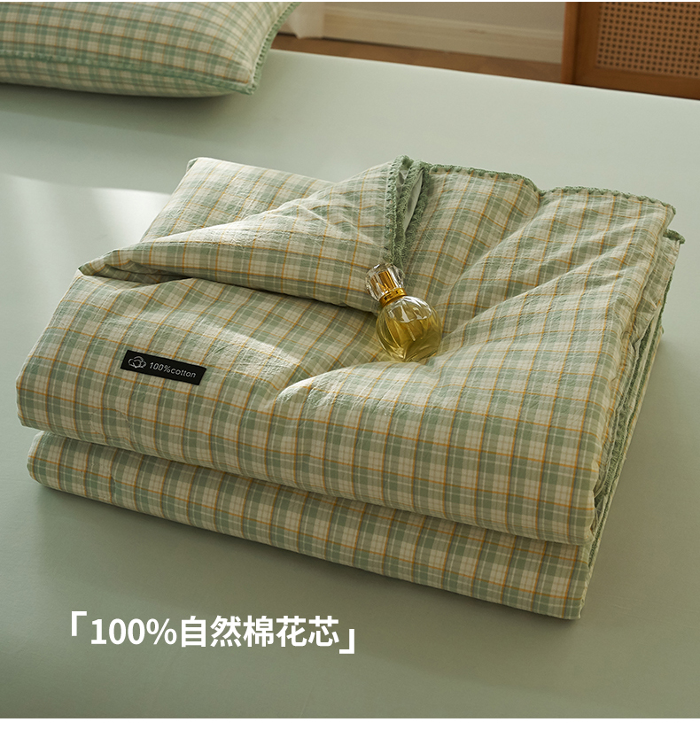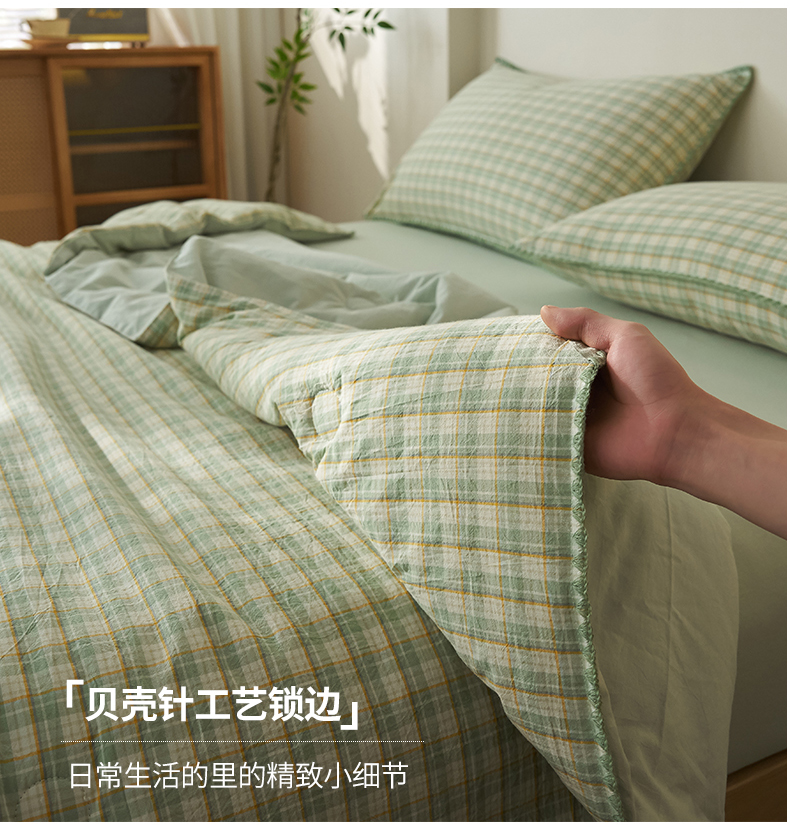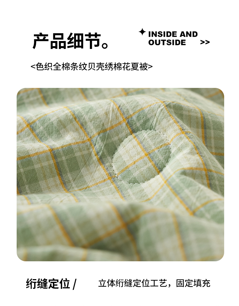 商品名称:暖阳 2026新款无印风色织全棉贝壳绣棉花夏被夏凉被空调被 贝壳青年格绿