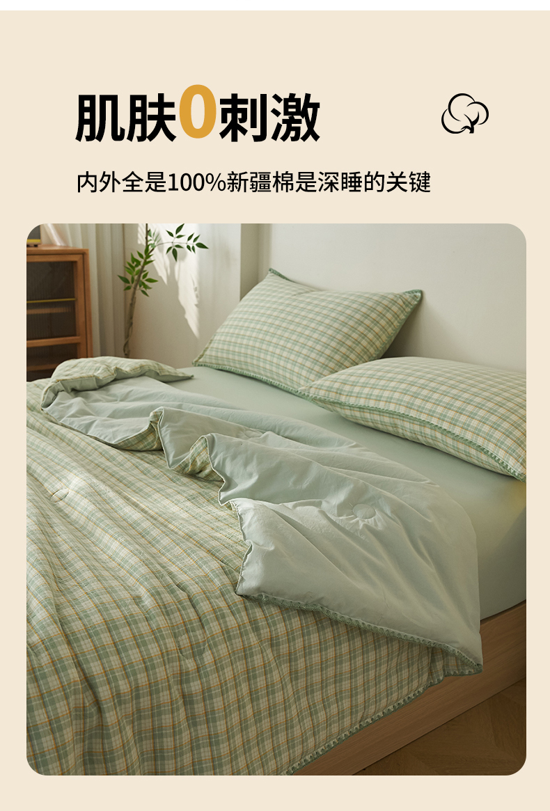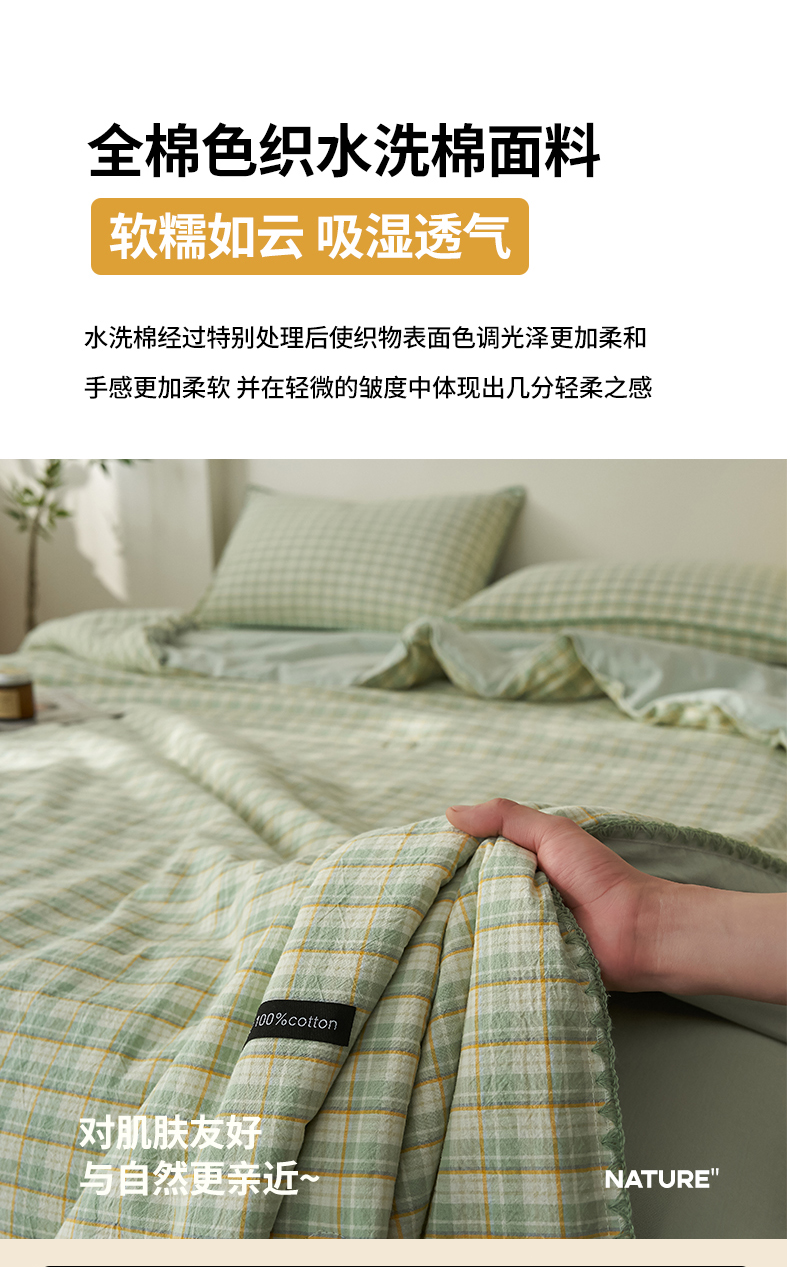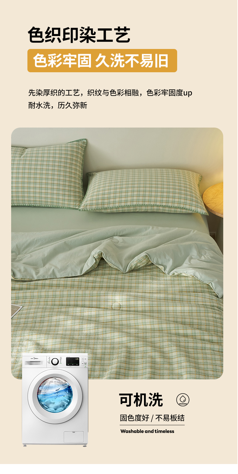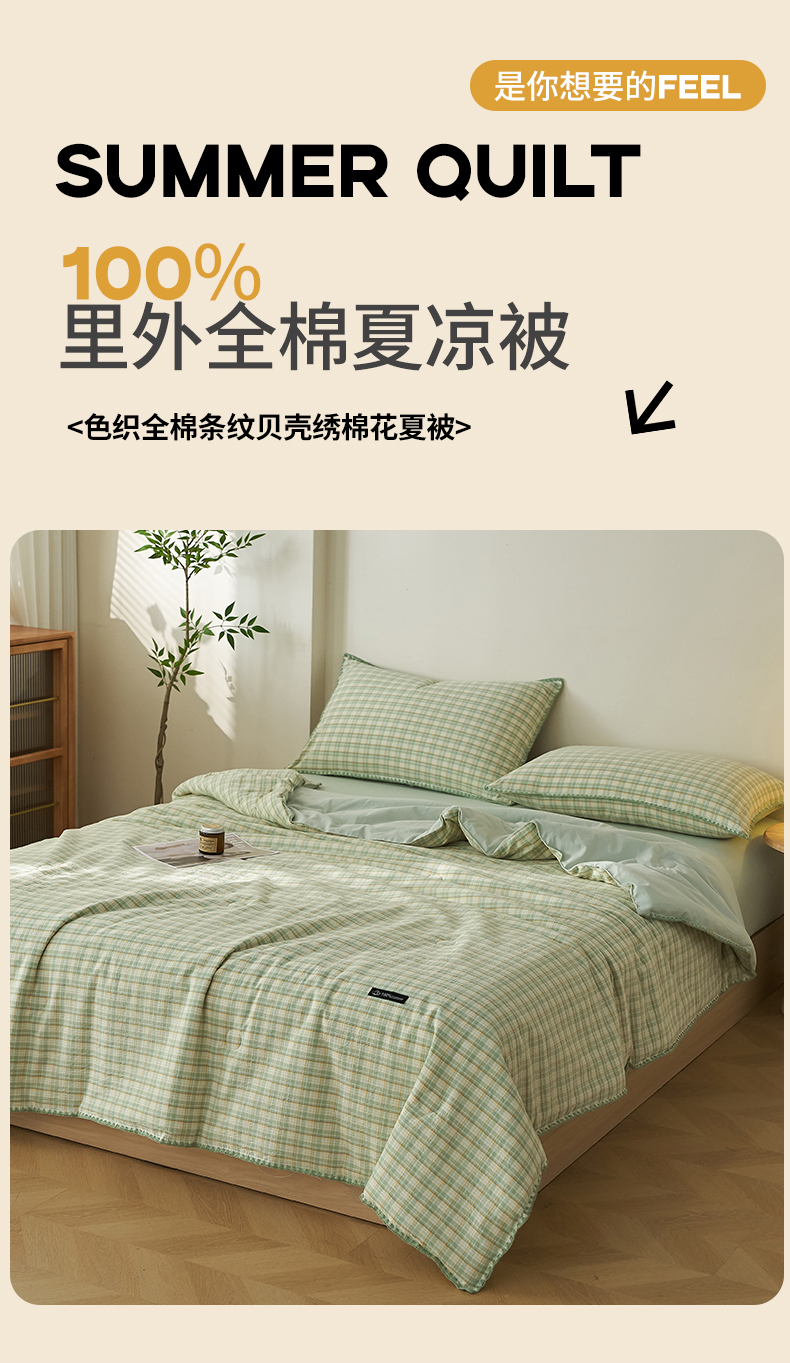 商品名称:暖阳 2026新款无印风色织全棉贝壳绣棉花夏被夏凉被空调被 贝壳青年格绿