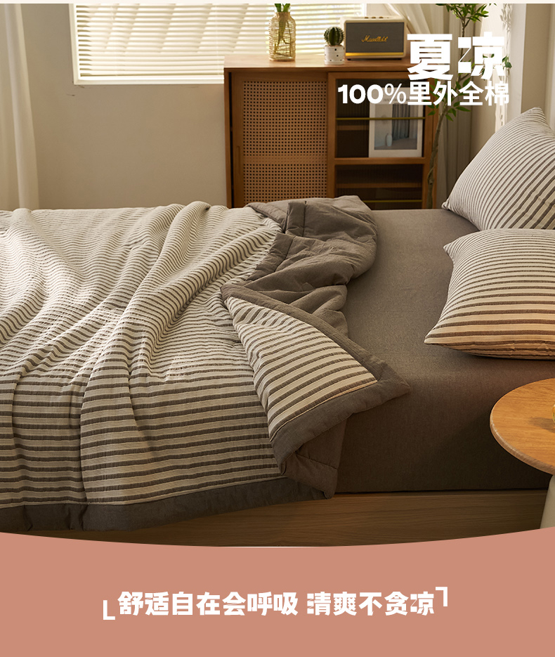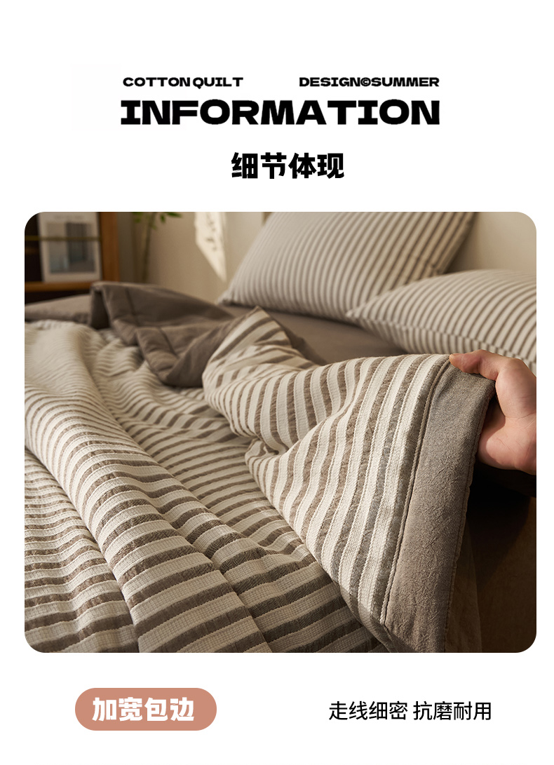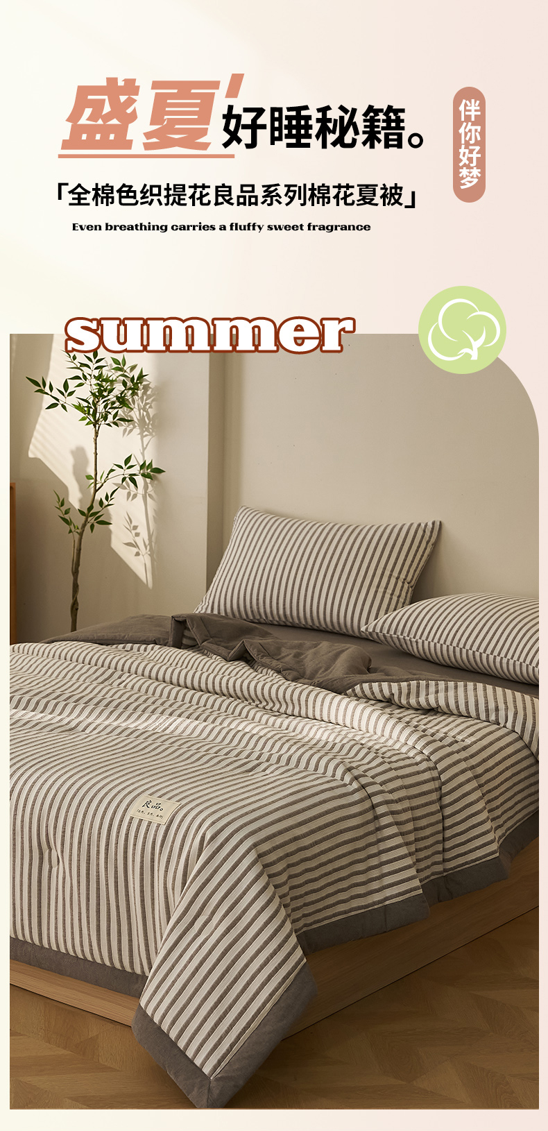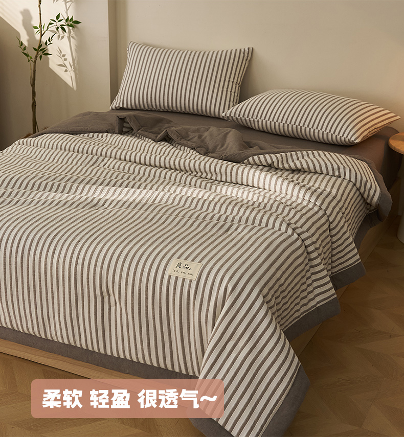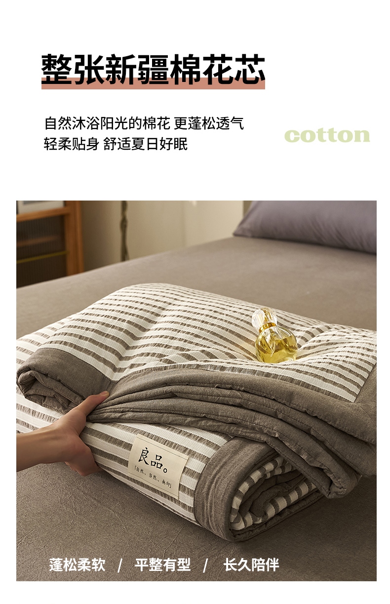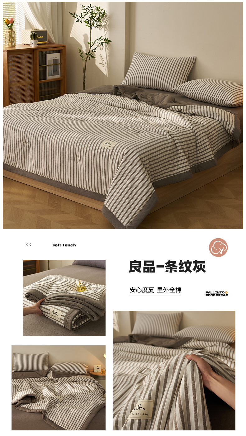 • 91家纺网 家纺一手货源 找家纺 暖阳 2026新款全棉色织提花良品系列棉花夏被夏凉被空调被 良品-条纹灰