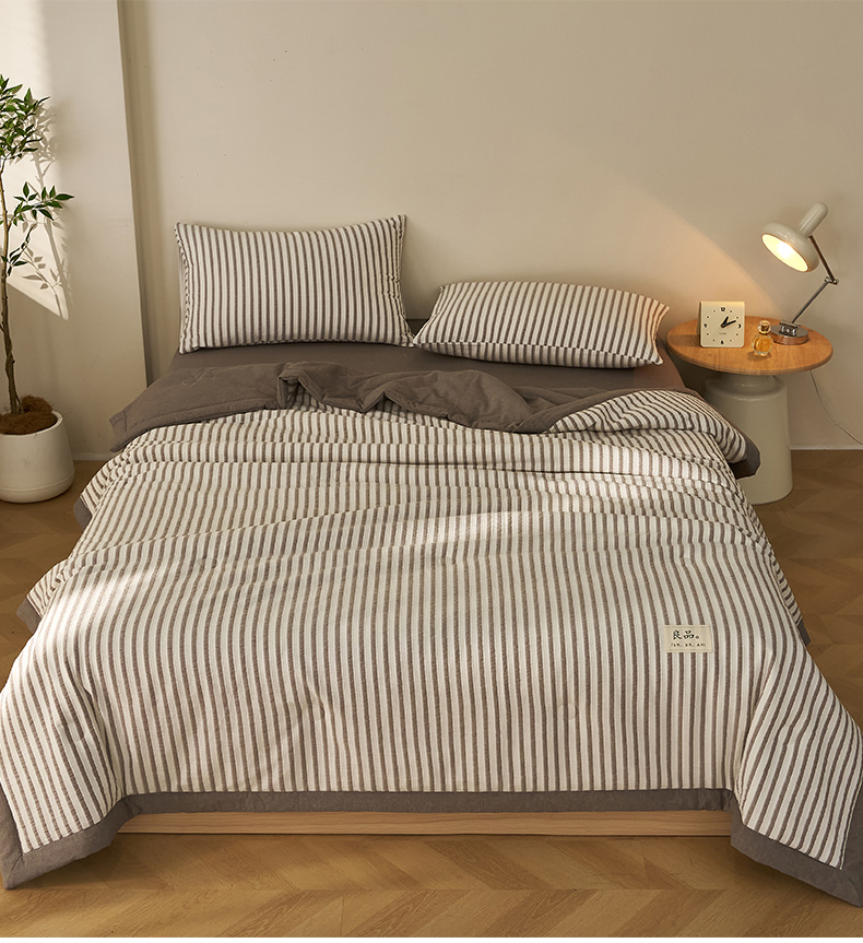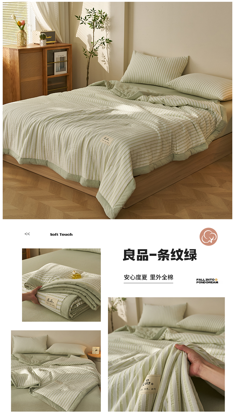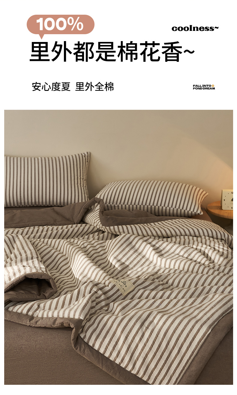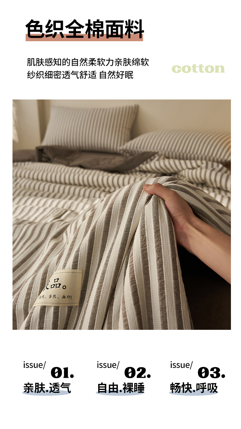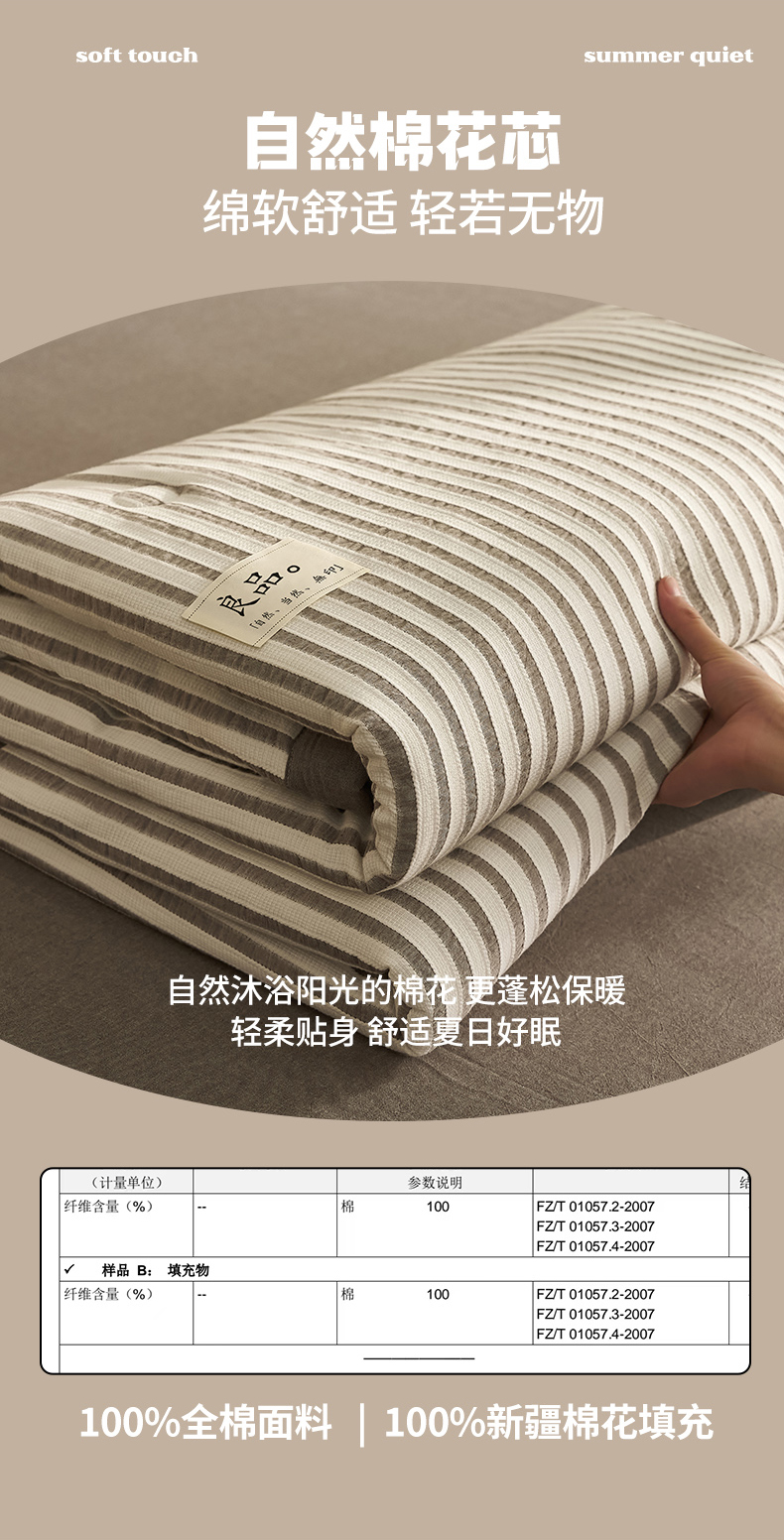 • 91家纺网 家纺一手货源 找家纺 暖阳 2026新款全棉色织提花良品系列棉花夏被夏凉被空调被 良品-条纹灰