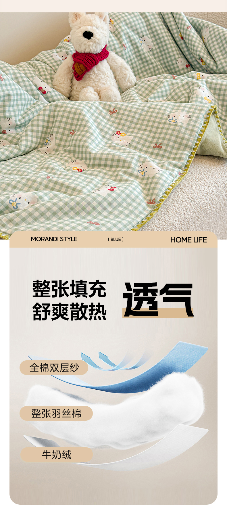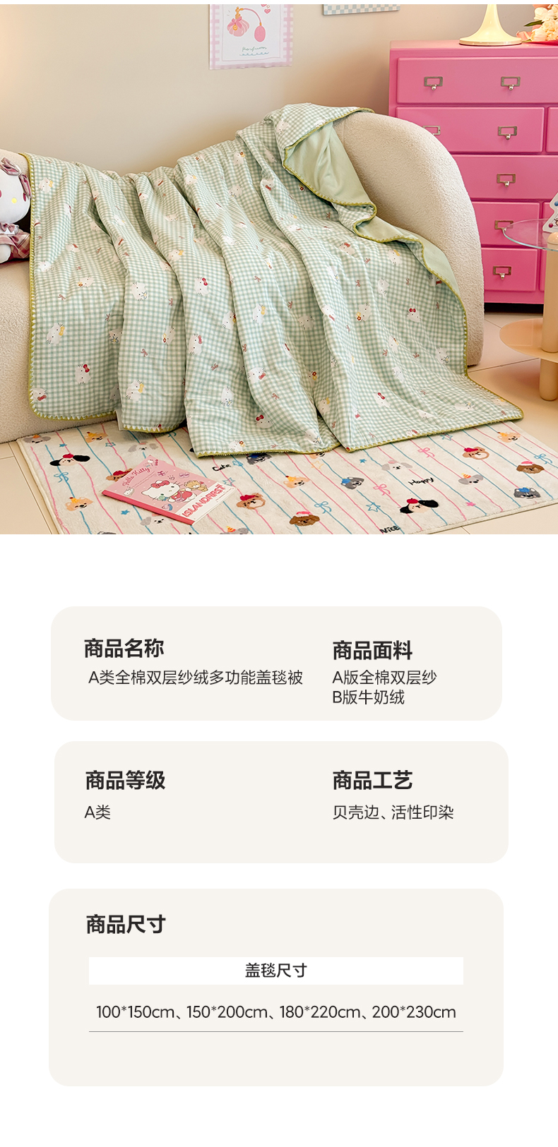 (总)妮可 2026新款跑量款全棉双层纱绒四季可用床盖系列,元气萌宠,花园兔宝,蓝汪拾趣,暖阳熊仔,甜梦凯蒂,甜心乐园,芋泥奶霜,组合图(仅参考)