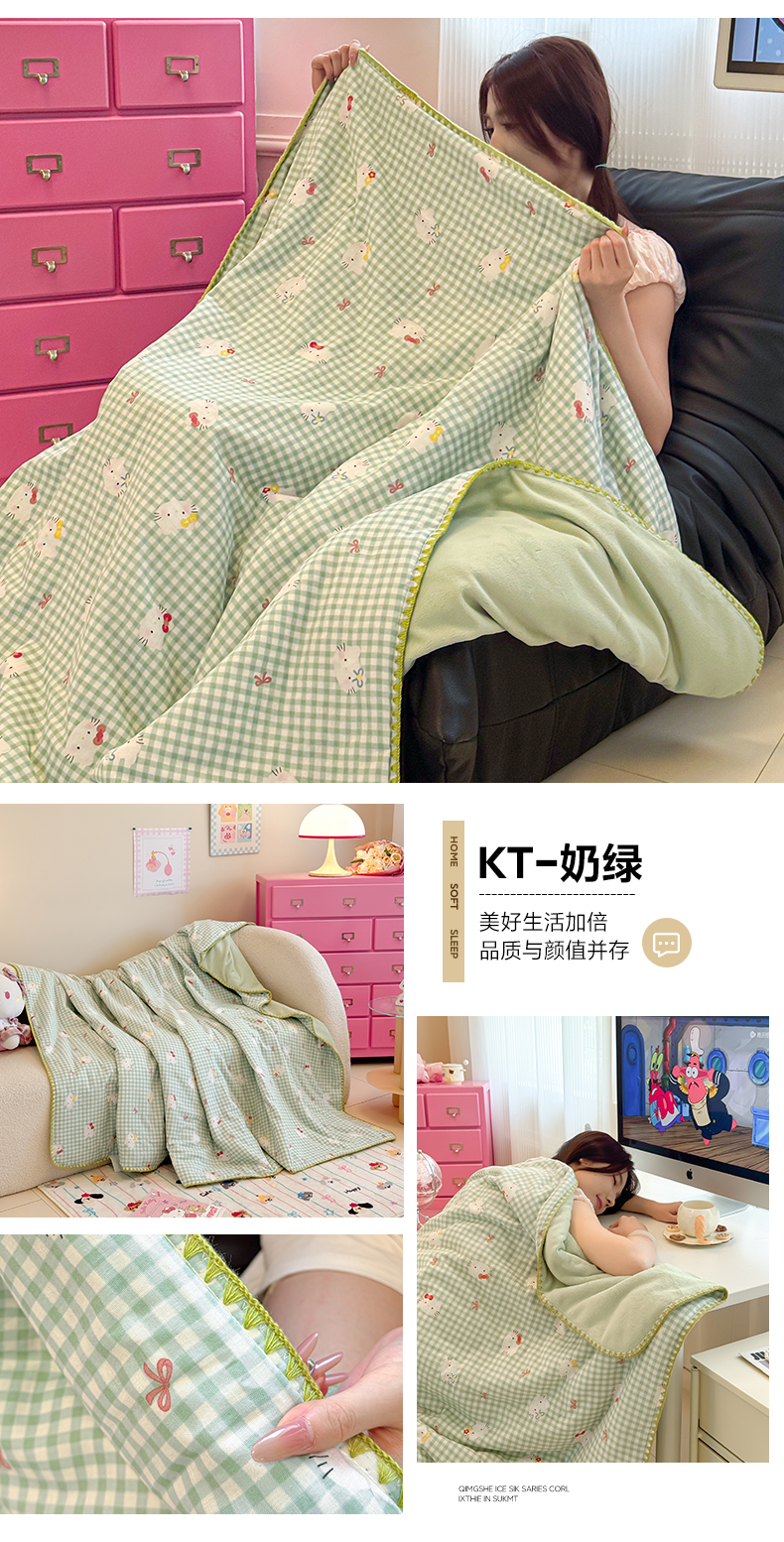 妮可 2026新款A类三层夹棉全棉双层纱绒多功能盖毯被 KT-浅粉