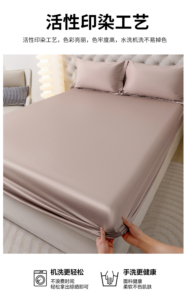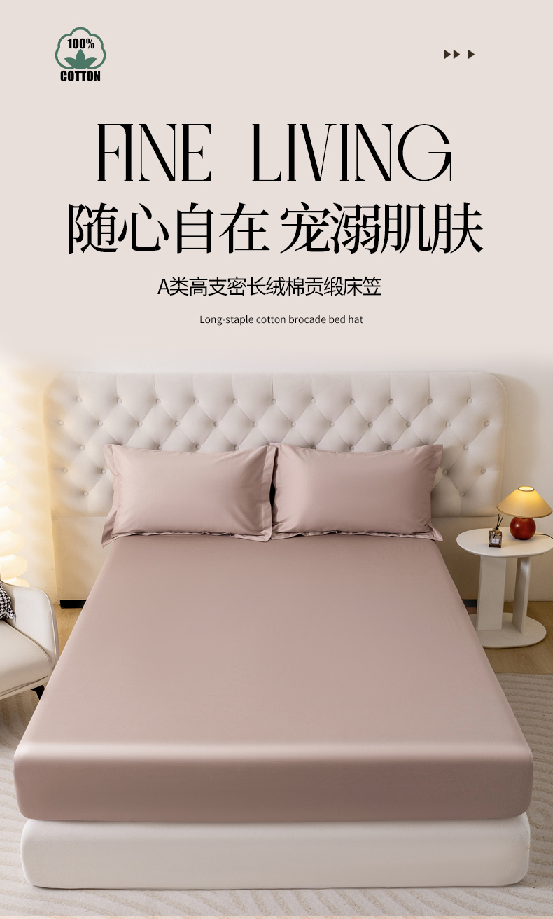 (总)宝时兰 2026新款全棉100S长绒棉床笠单件纯色纯棉贡缎,黛蓝,米白,蜜金,藕粉,浅灰,深灰,水绿,烟紫,叠拍