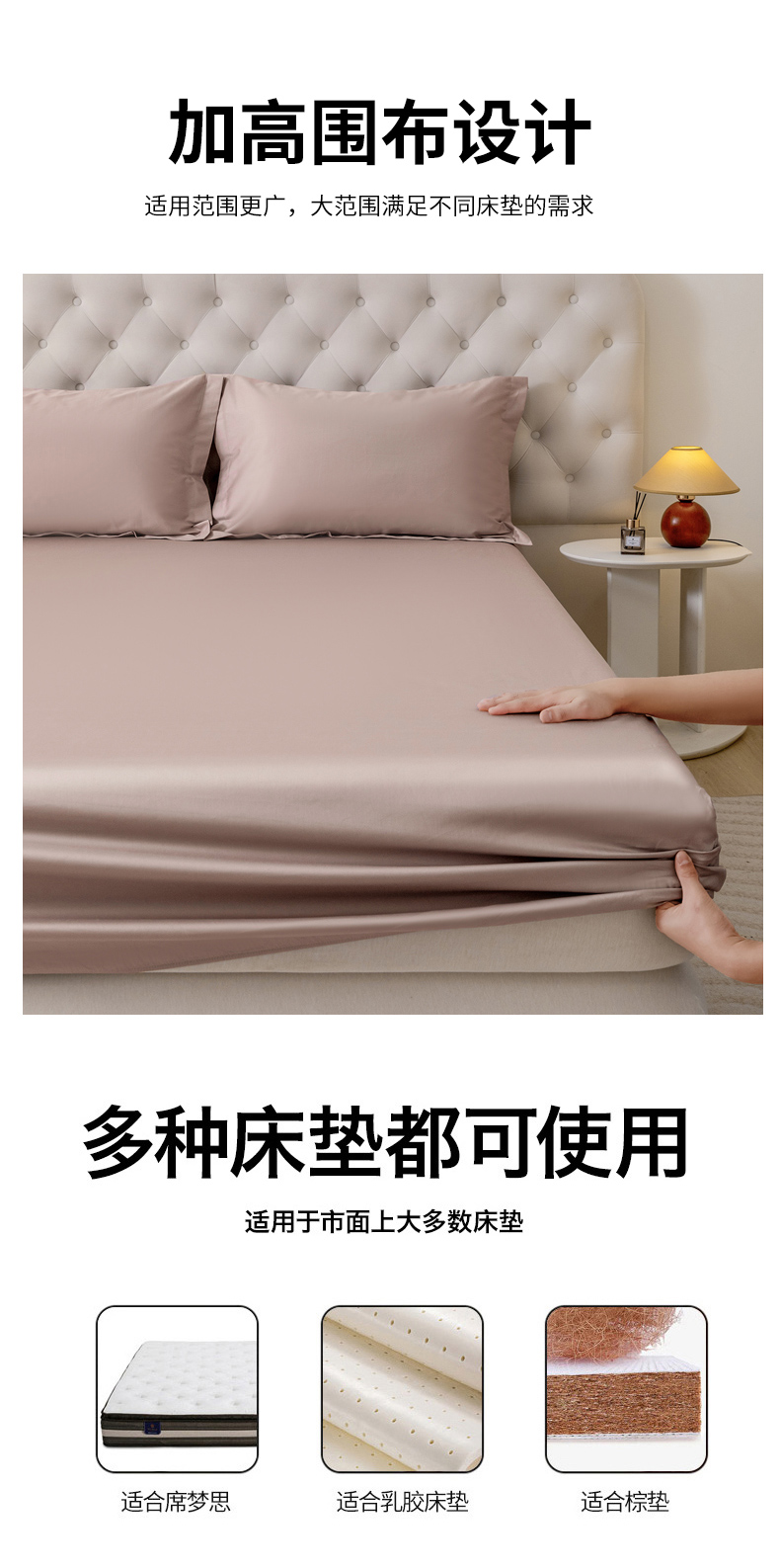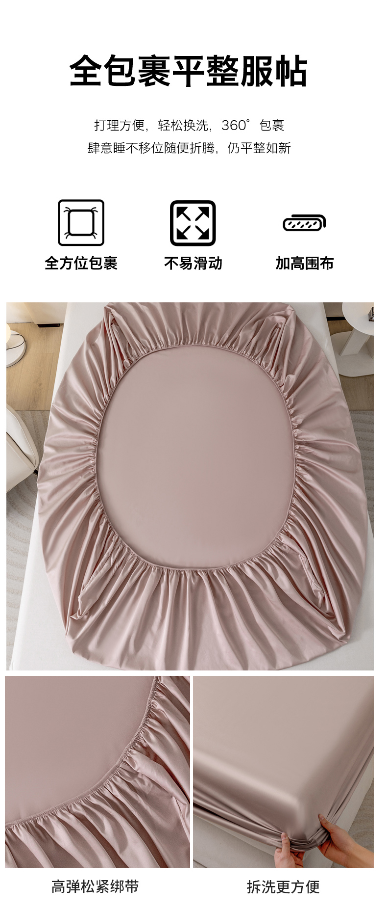 商品名称:宝时兰 2026新款全棉100S长绒棉床笠单件纯色纯棉贡缎 藕粉