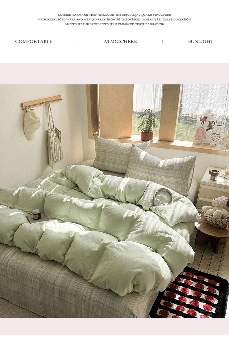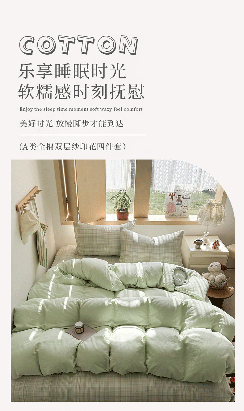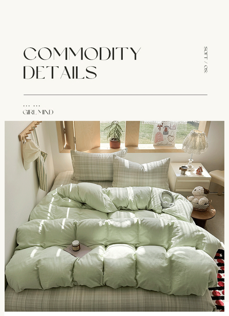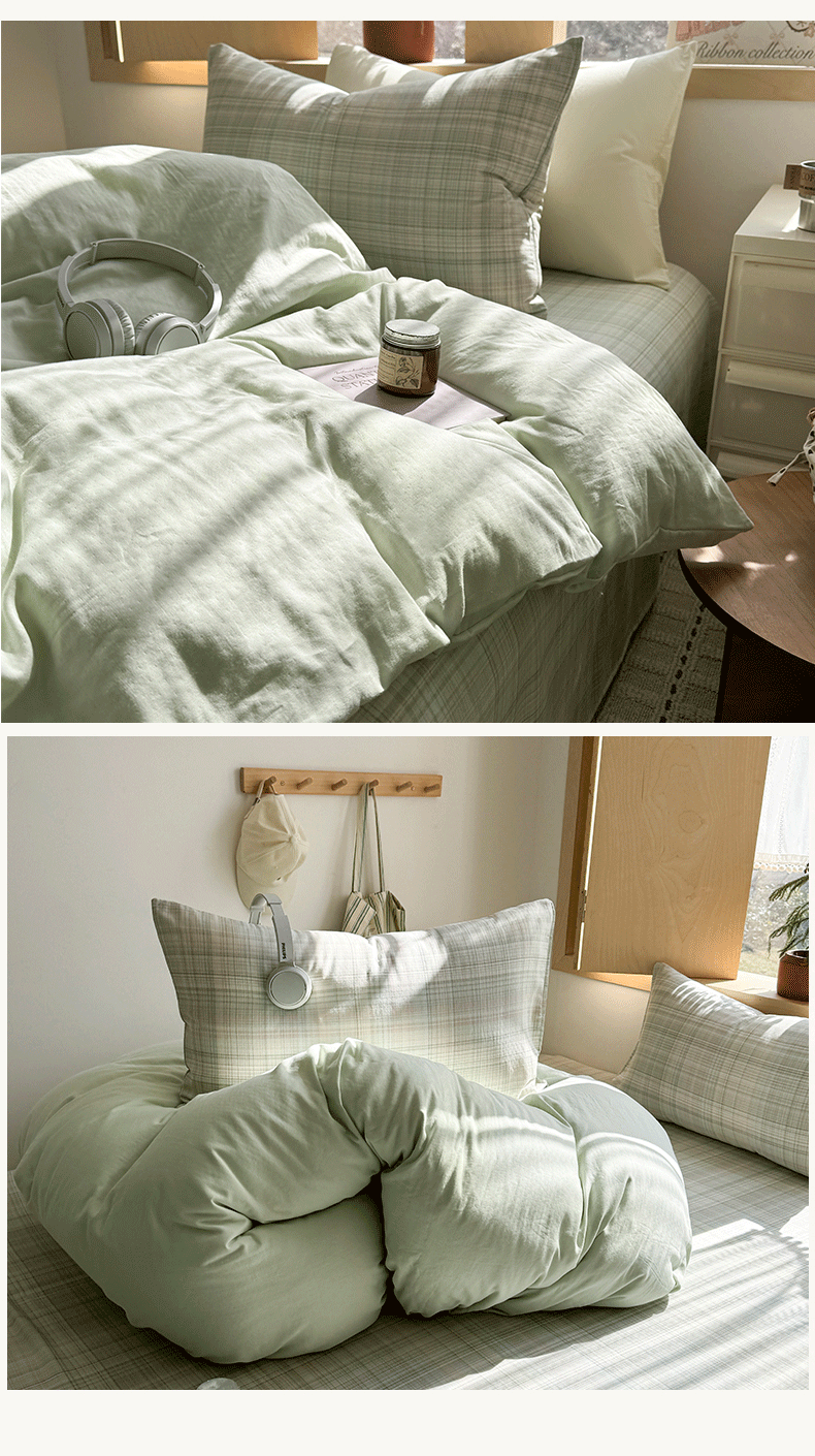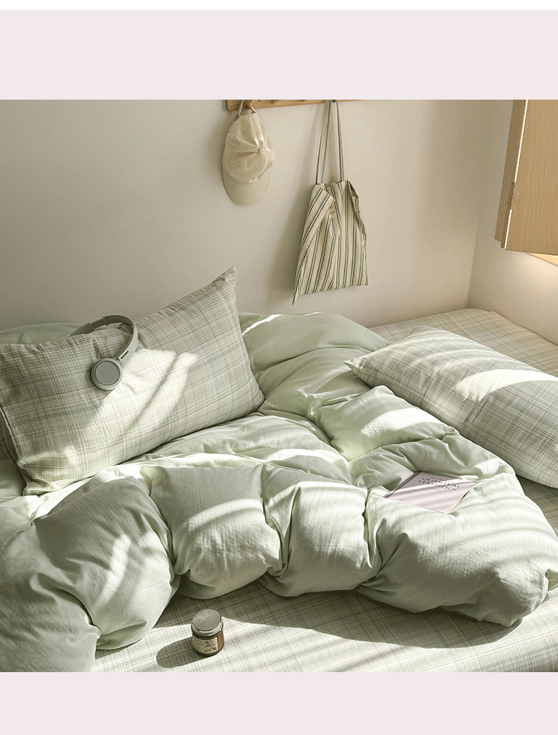 当前位置: 91家纺网 > 商品网购 > 床品套件 > 四件套 > 全棉普通四件套 > 爱思佳 2026新款全棉双层纱混搭格子系列四件套 绿-青柠