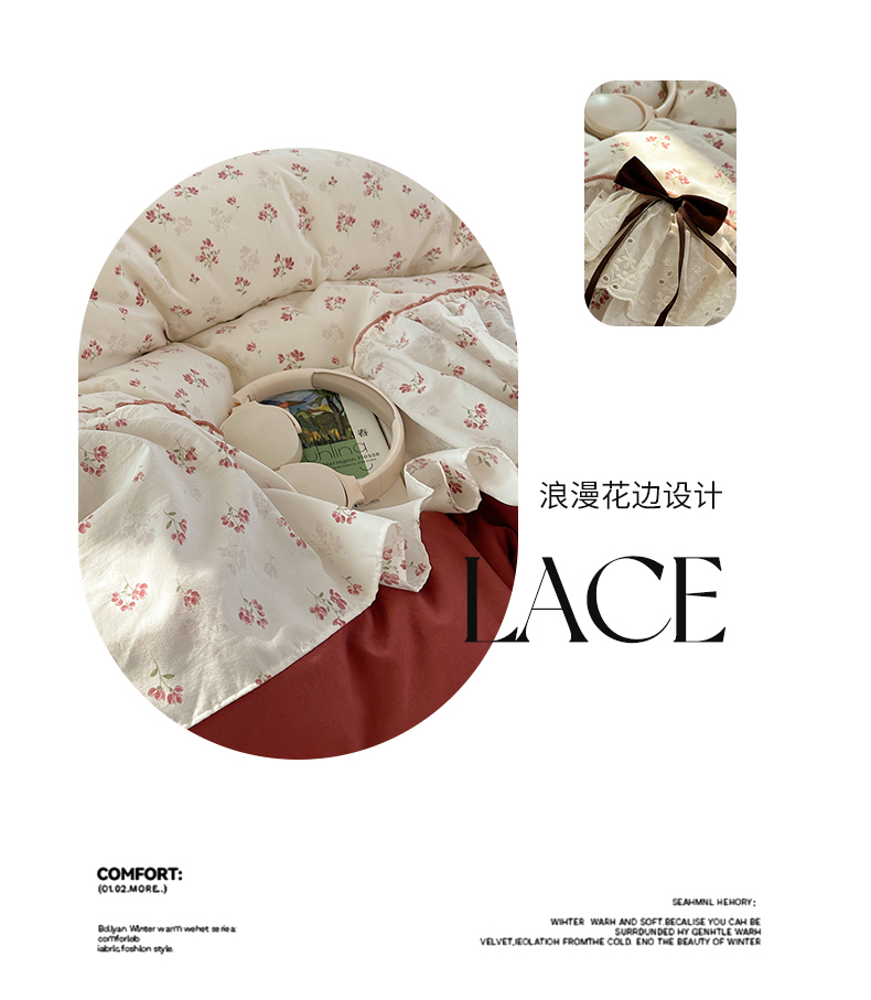 当前位置: 91家纺网 > 商品网购 > 床品套件 > 四件套 > 其它四件套 > 凯洛奇 2026新款A类仿棉云朵棉蝴蝶结花边四件套(提供买家秀) 柔花轻语