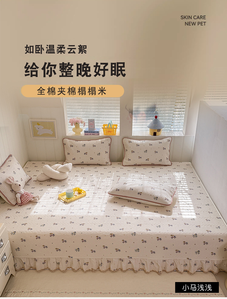 当前位置: 91家纺网 > 商品网购 > 床垫/床褥 > 榻榻米床垫 > 美达家纺 2026新款密道款夹棉全棉防滑榻榻米 花叶私语-紫