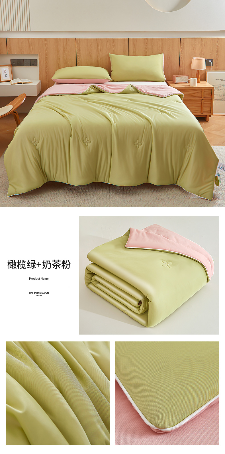 (总)悦织语 2026新款A类纯色原棉大豆夏被,原棉-抹茶绿,原棉-灰,原棉-粉,原棉-海青,原棉-蓝,原棉-米白,原棉-藕粉