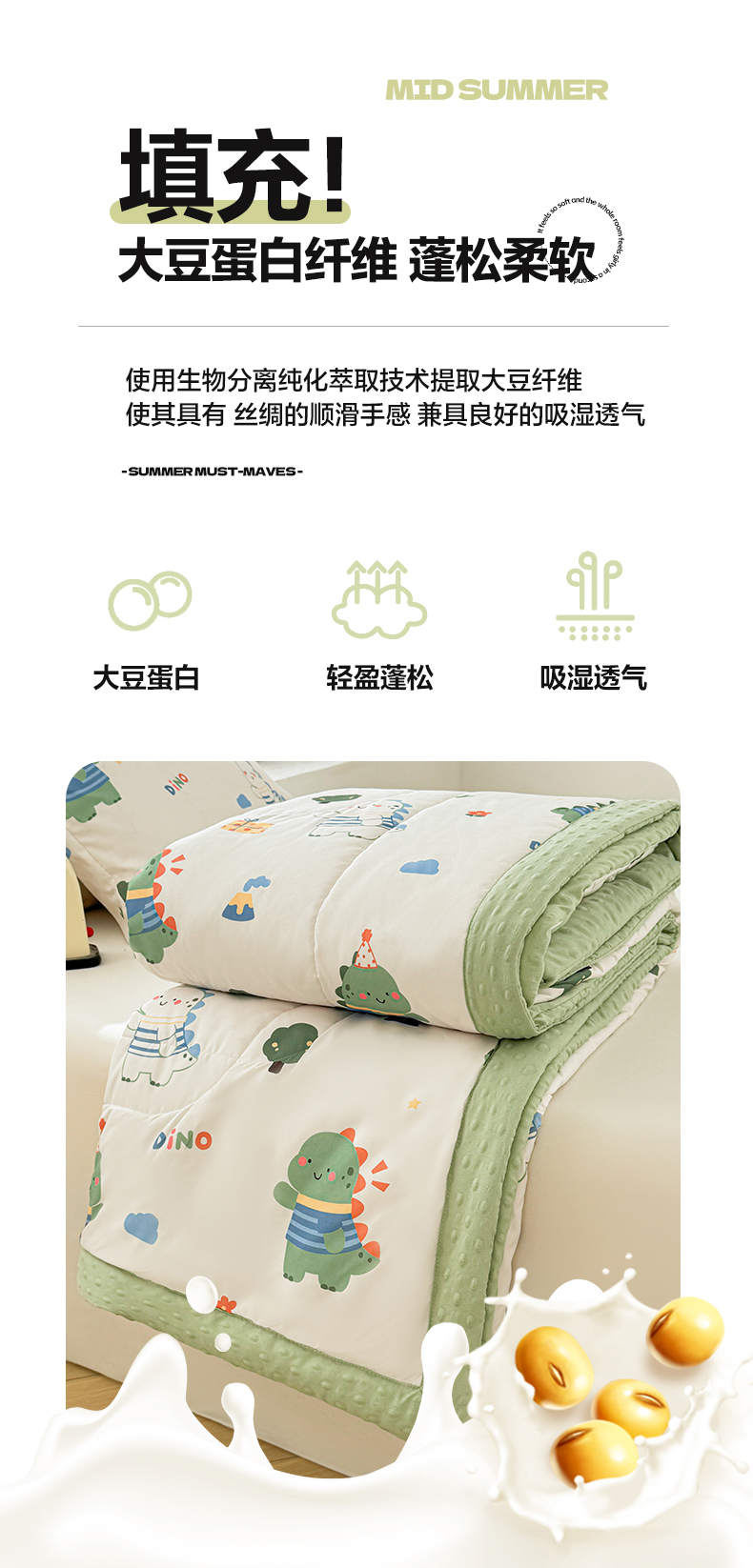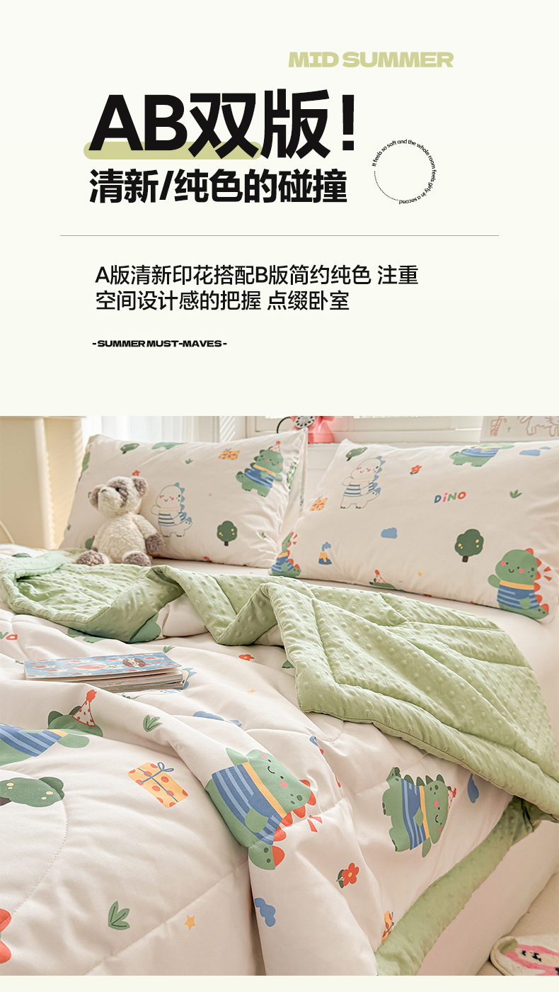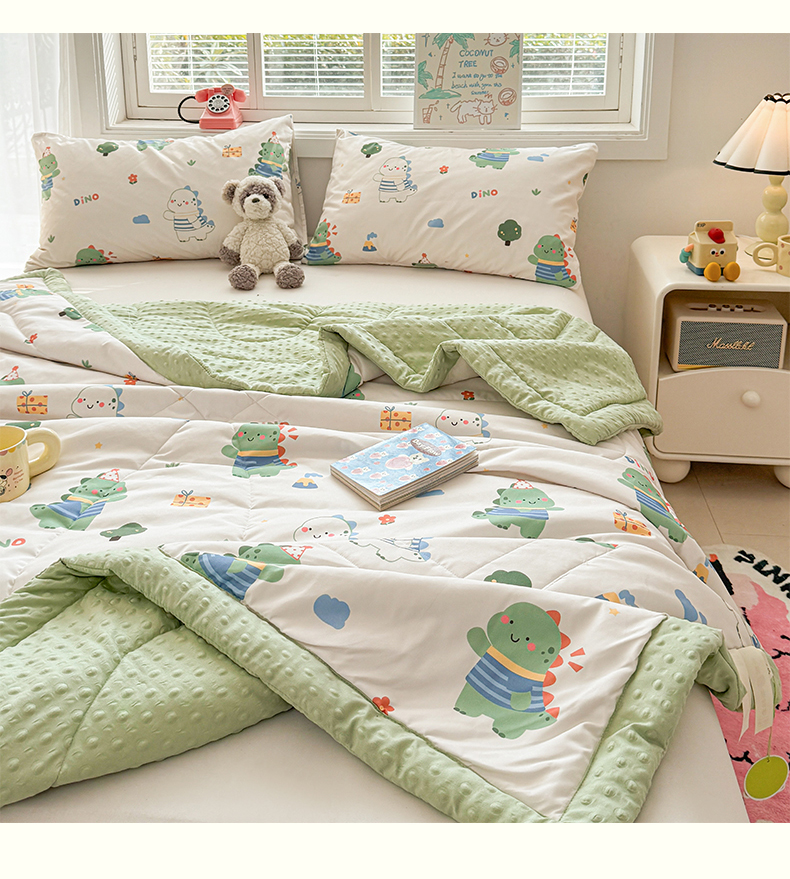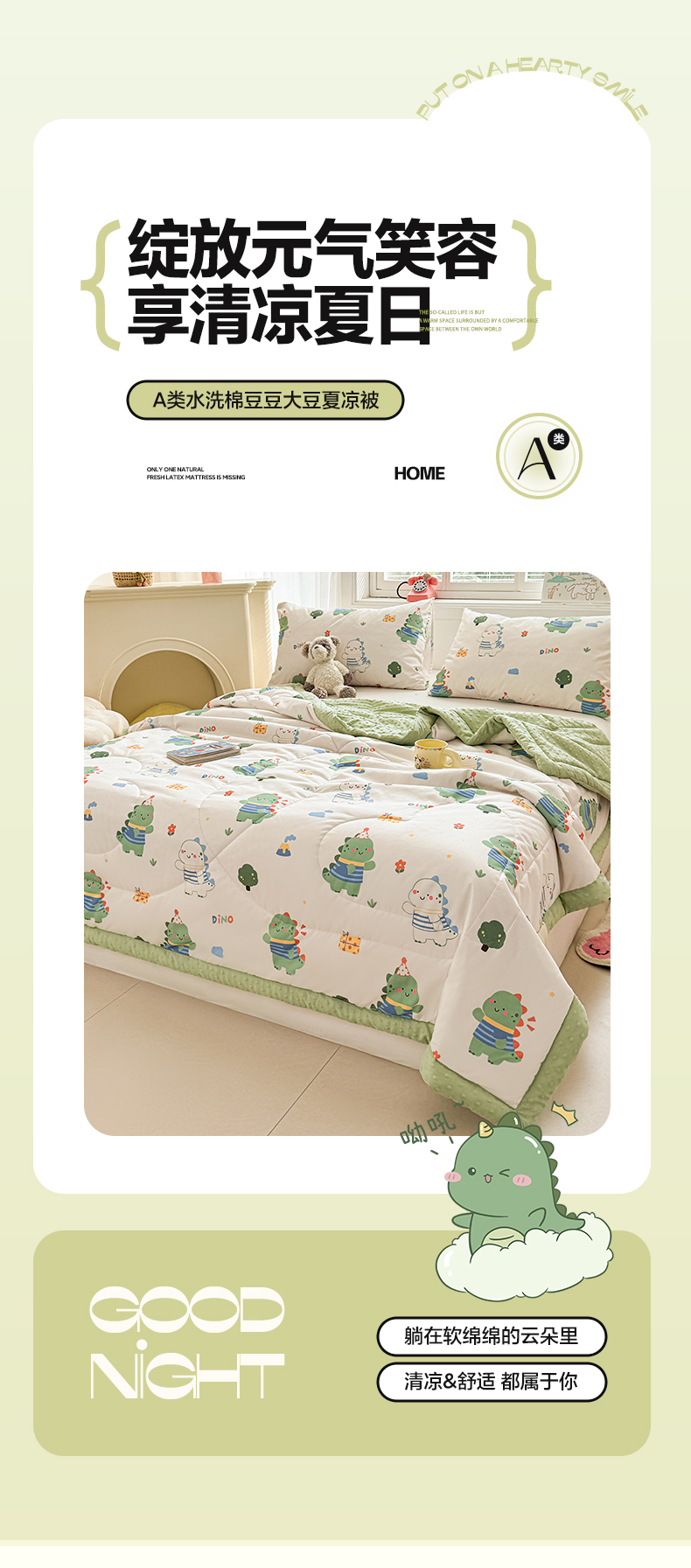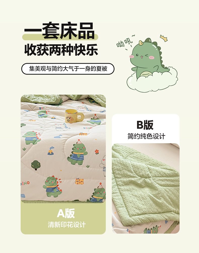 商品名称:悦织语 2026新款水洗棉双层纱豆豆被大豆夏凉被 恐龙日记