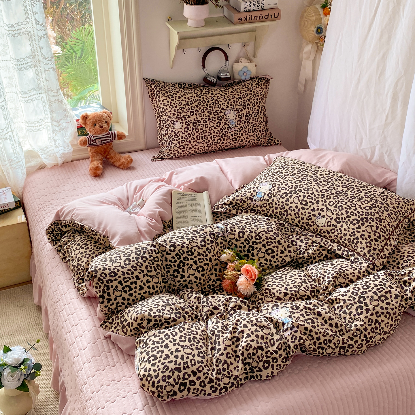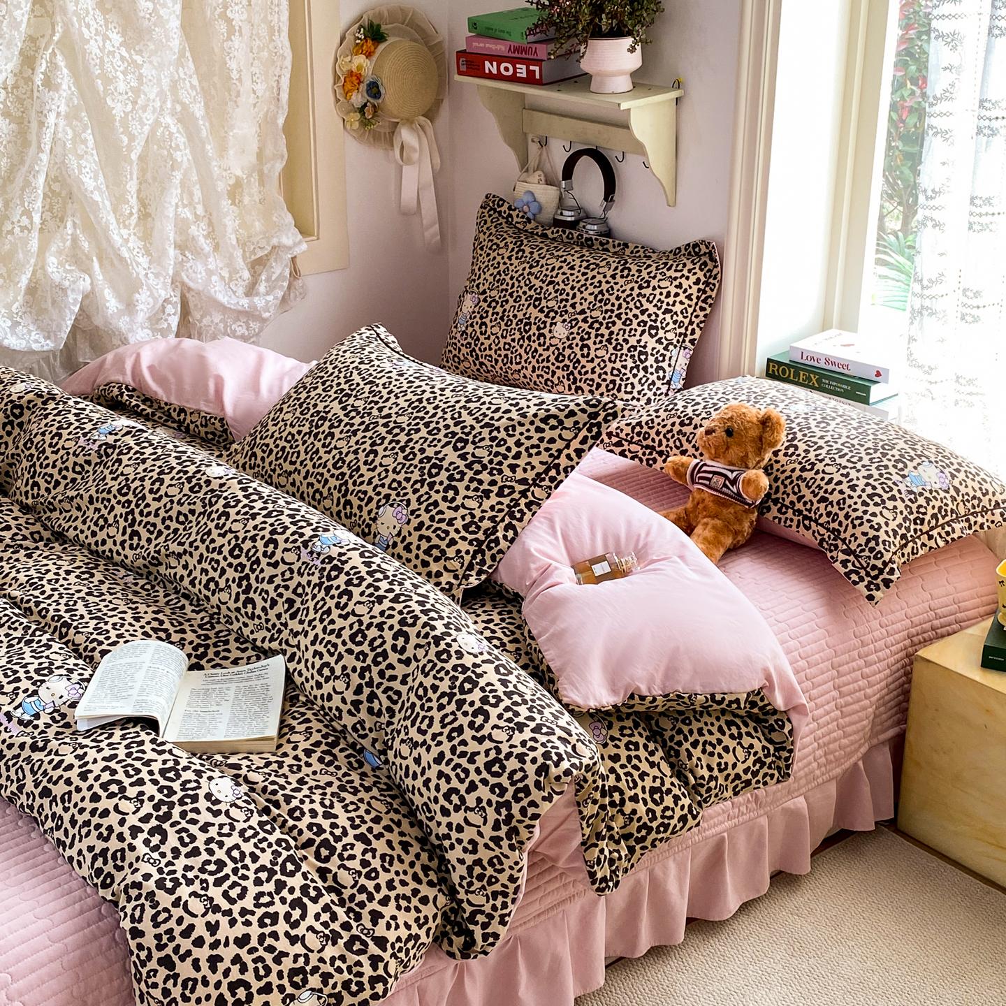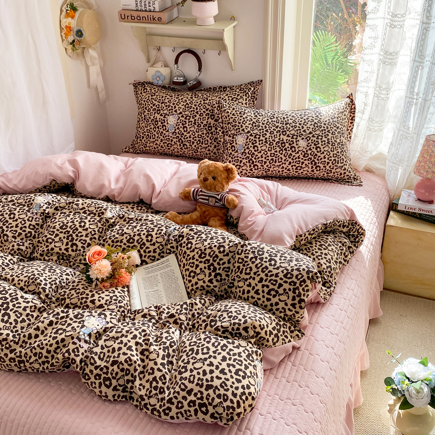富之航家纺 2026新款小清新床盖四件套 豹纹kt
