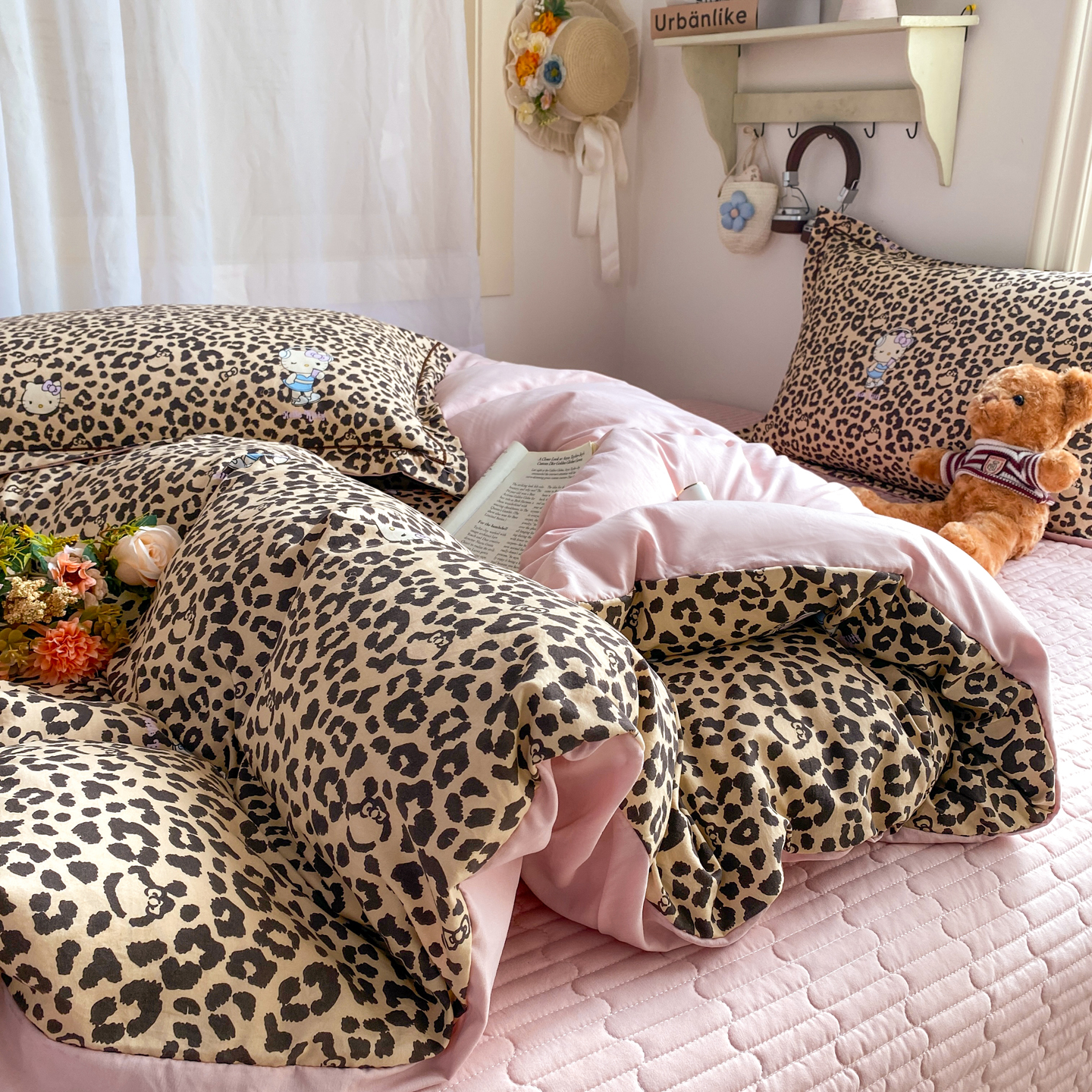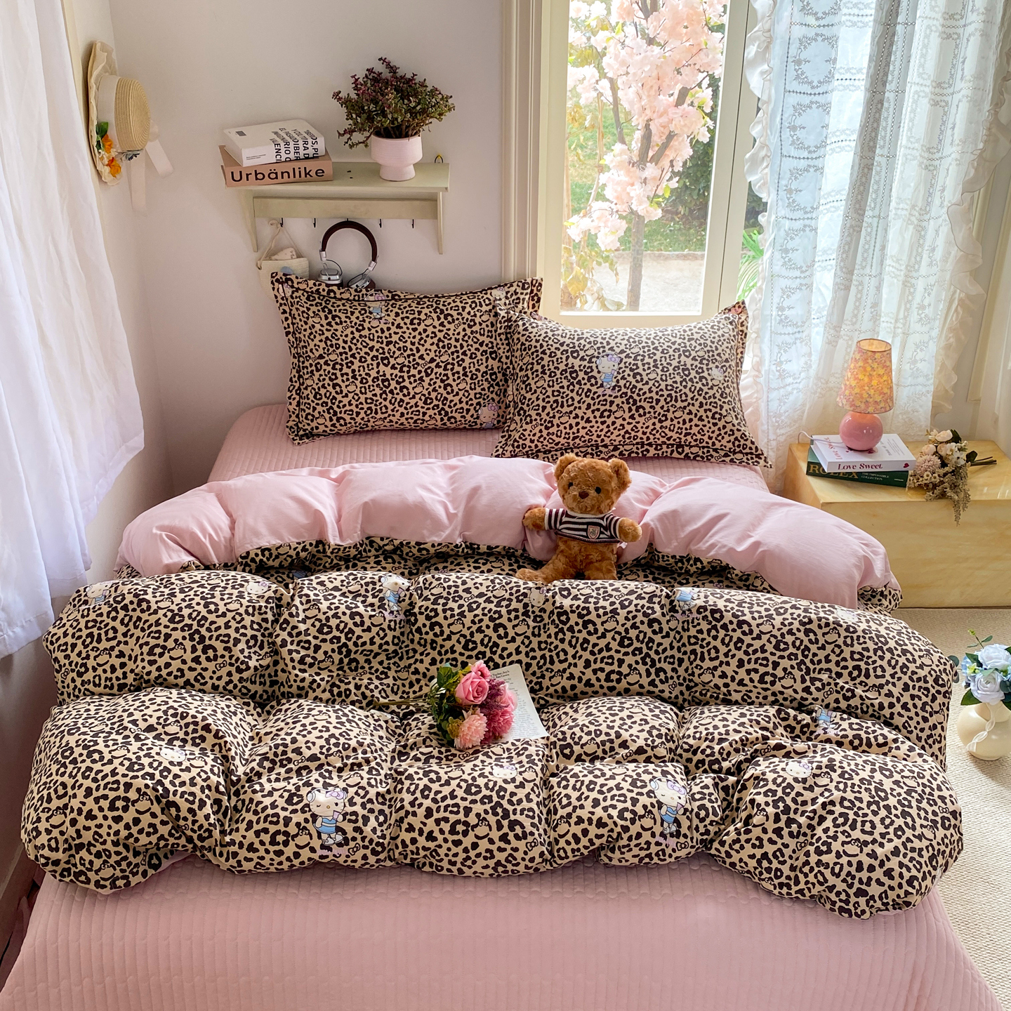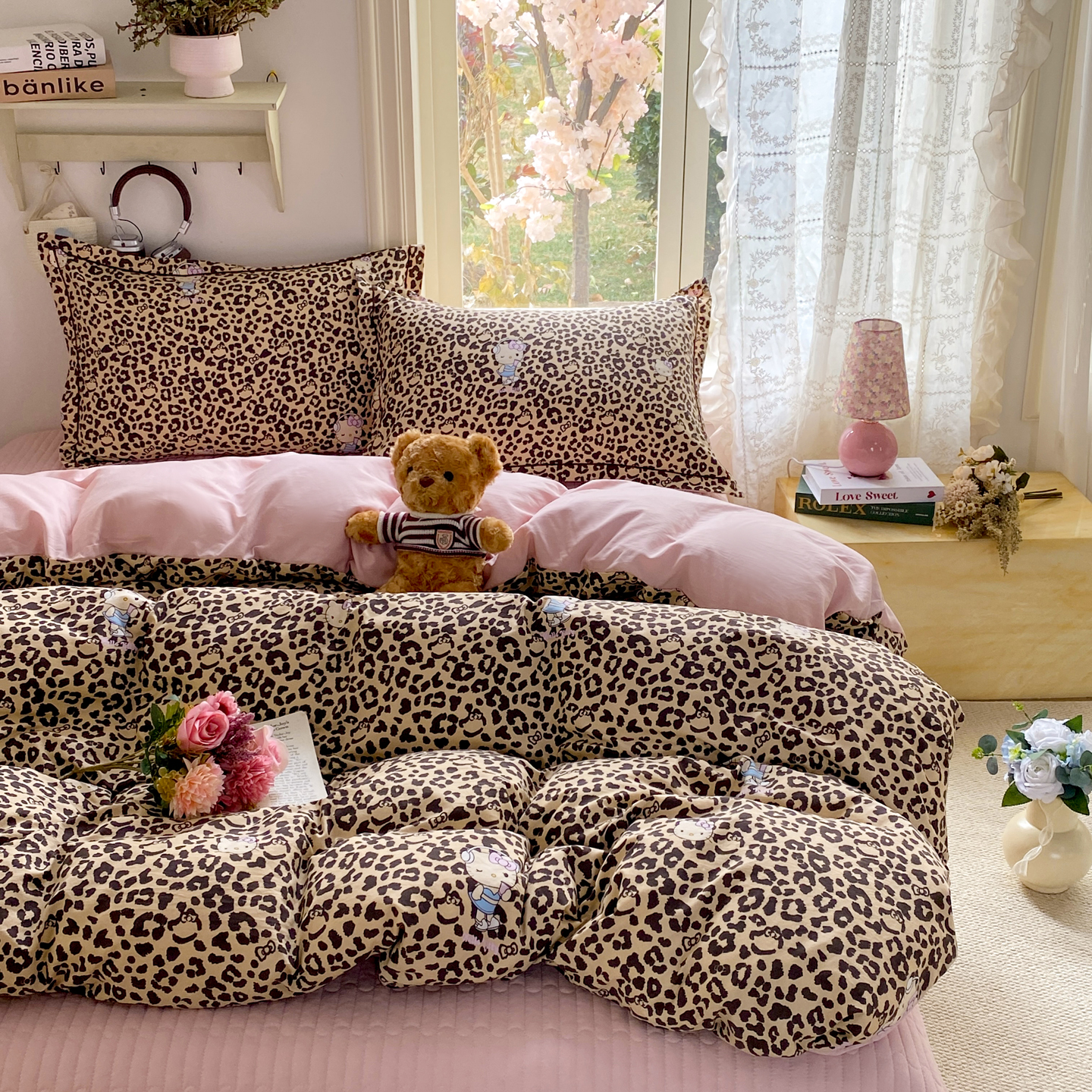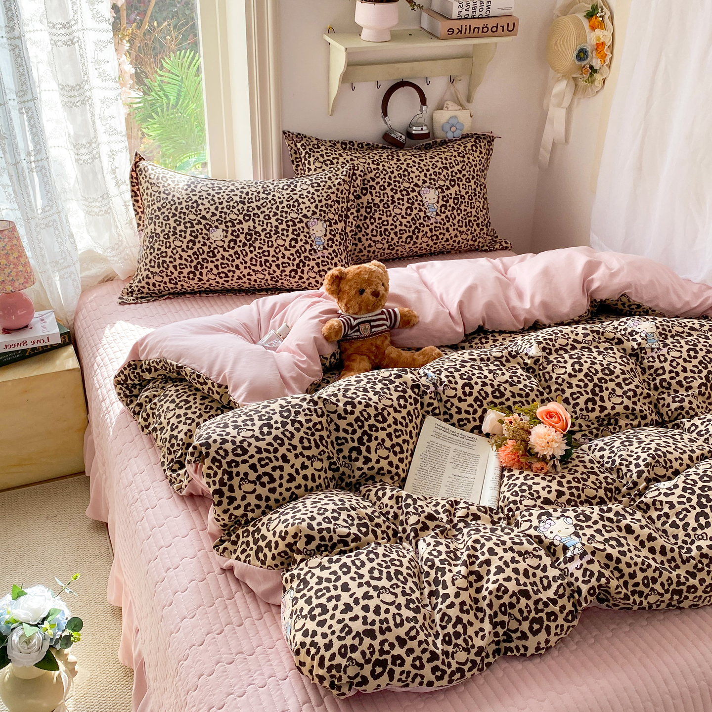 富之航家纺 2026新款小清新床盖四件套 豹纹kt