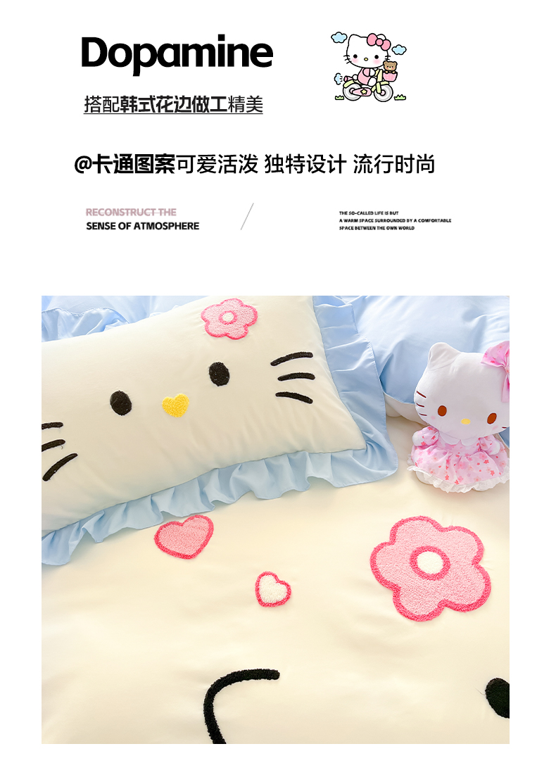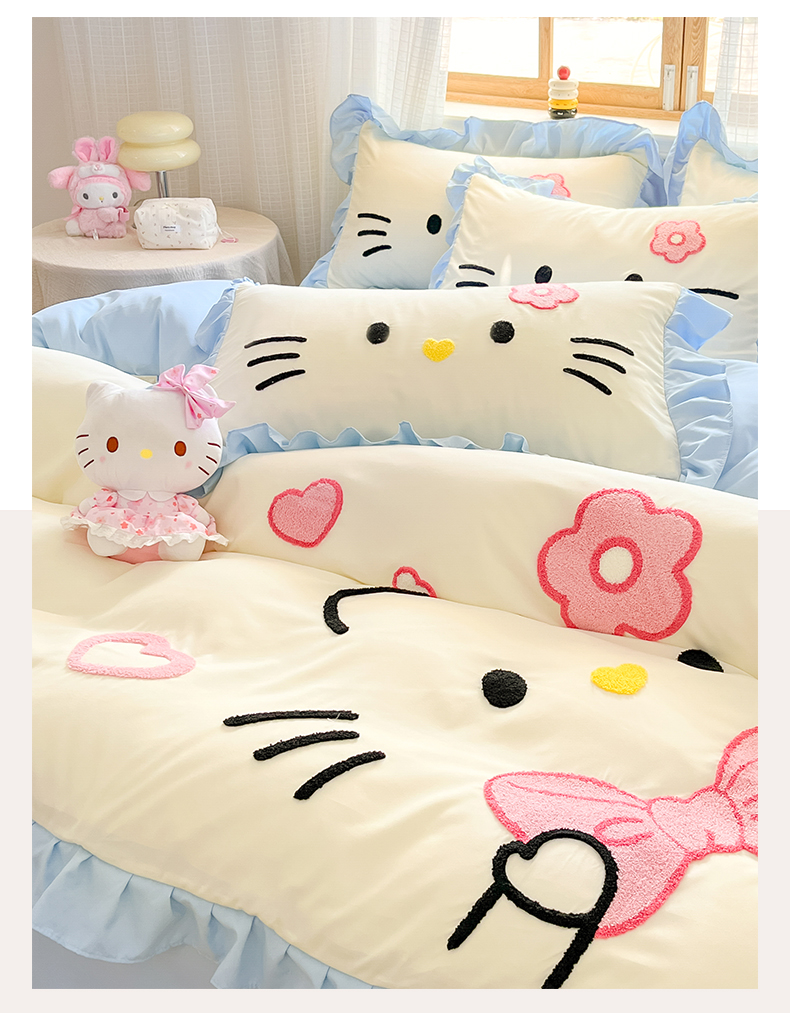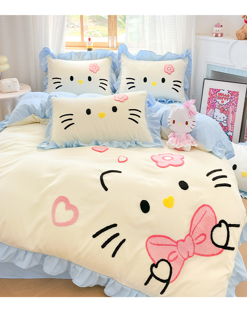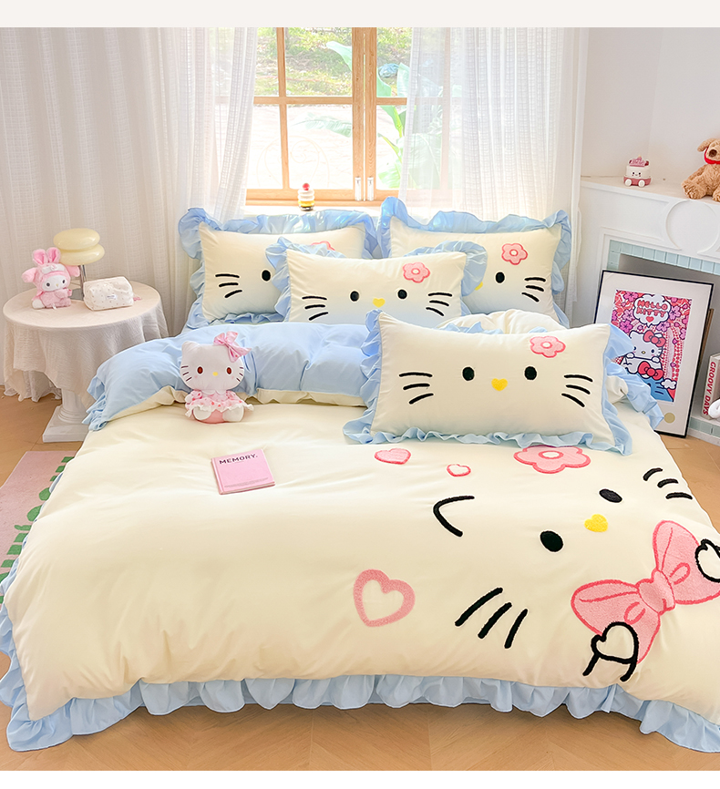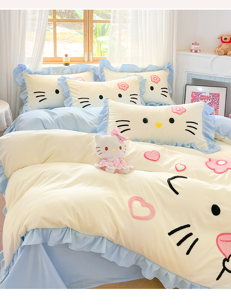 当前位置: 91家纺网 > 商品网购 > 床品套件 > 四件套 > 水洗棉四件套 > 泉欣家纺 2026新款网红可爱卡通 公主风毛巾绣花水洗棉四件套(专版花型) 甜甜猫咪-奶黄蓝