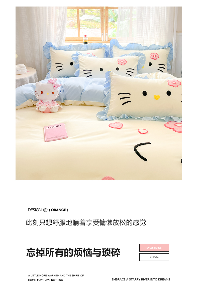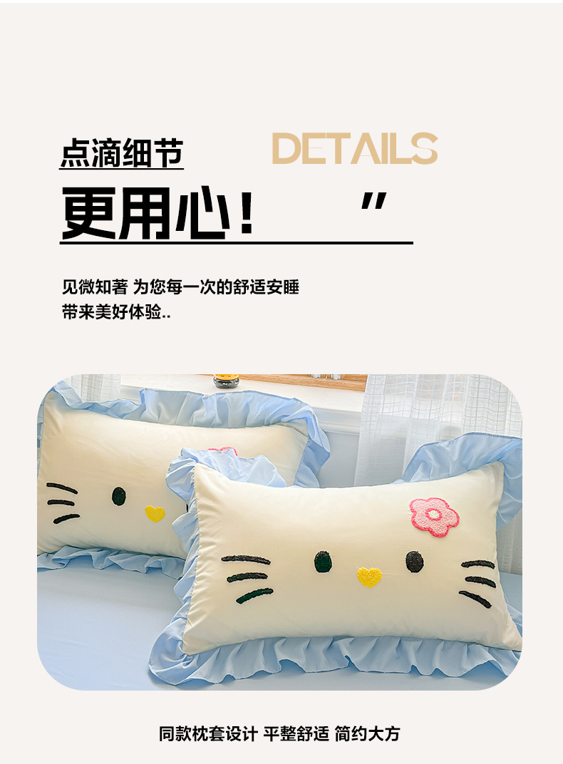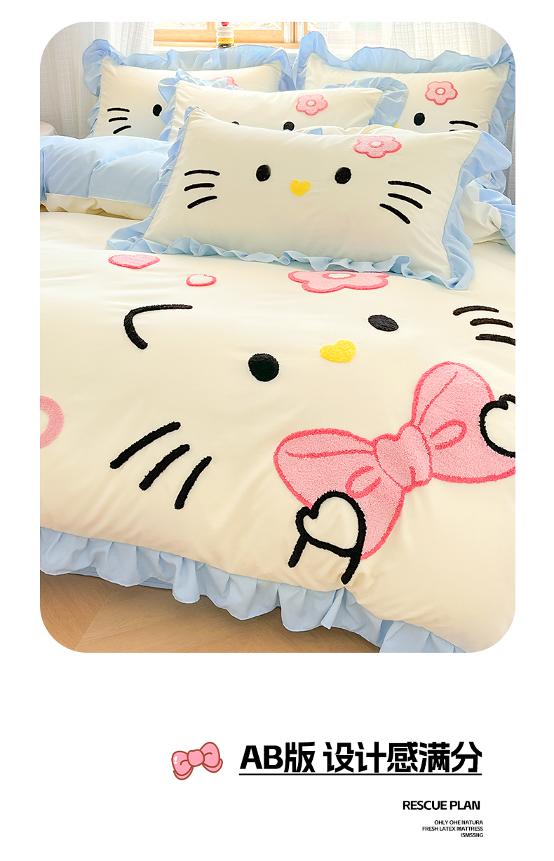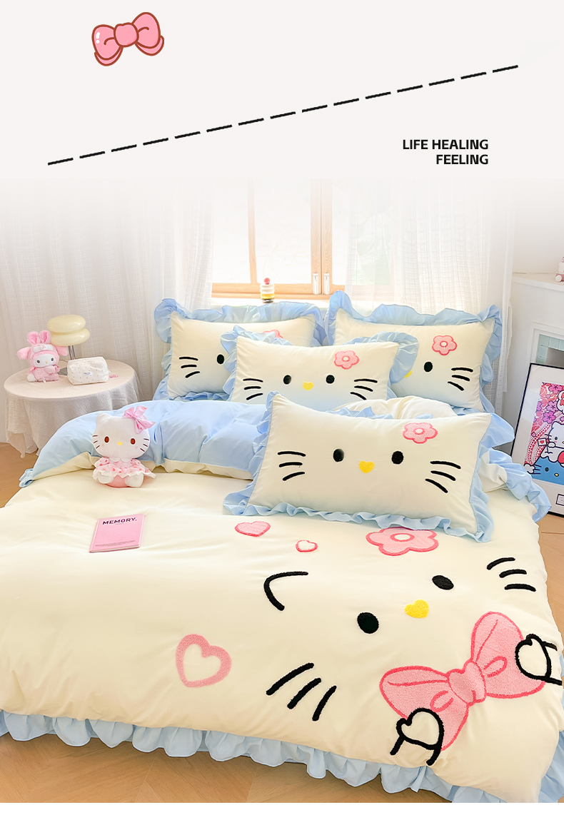 当前位置: 91家纺网 > 商品网购 > 床品套件 > 四件套 > 水洗棉四件套 > 泉欣家纺 2026新款网红可爱卡通 公主风毛巾绣花水洗棉四件套(专版花型) 甜甜猫咪-奶黄蓝