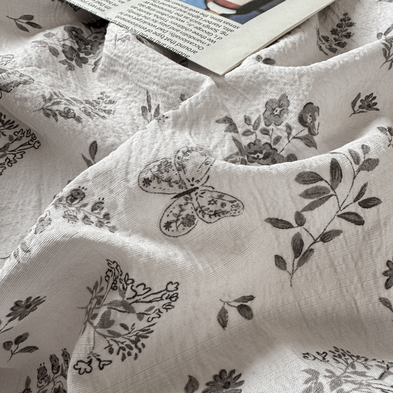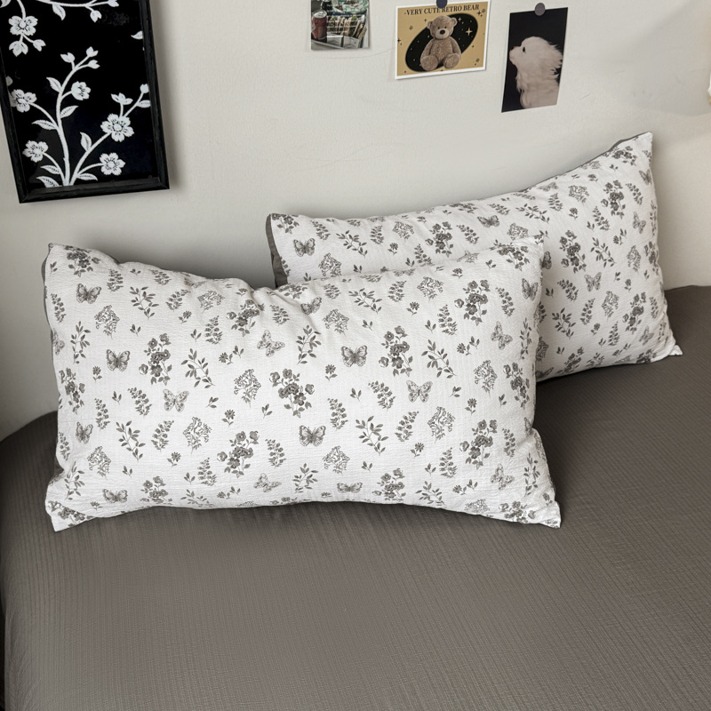 商品名称:雅阁尔家纺 2026新款轻奢复古美拉德风泡芙棉冷淡侘寂风水洗棉双层纱单枕套 素蝶吟
