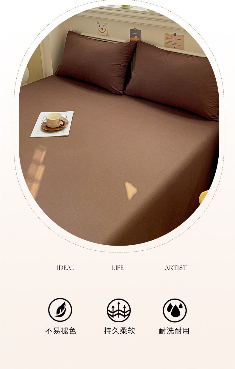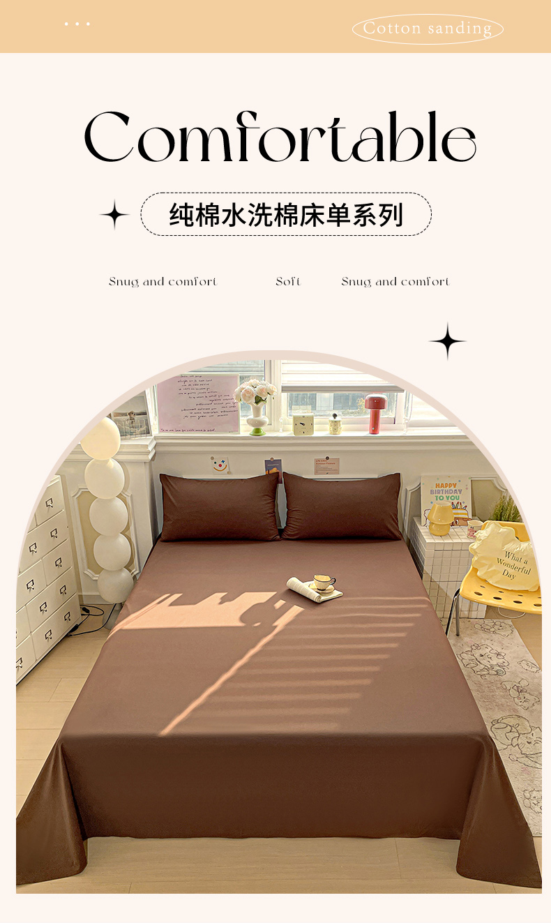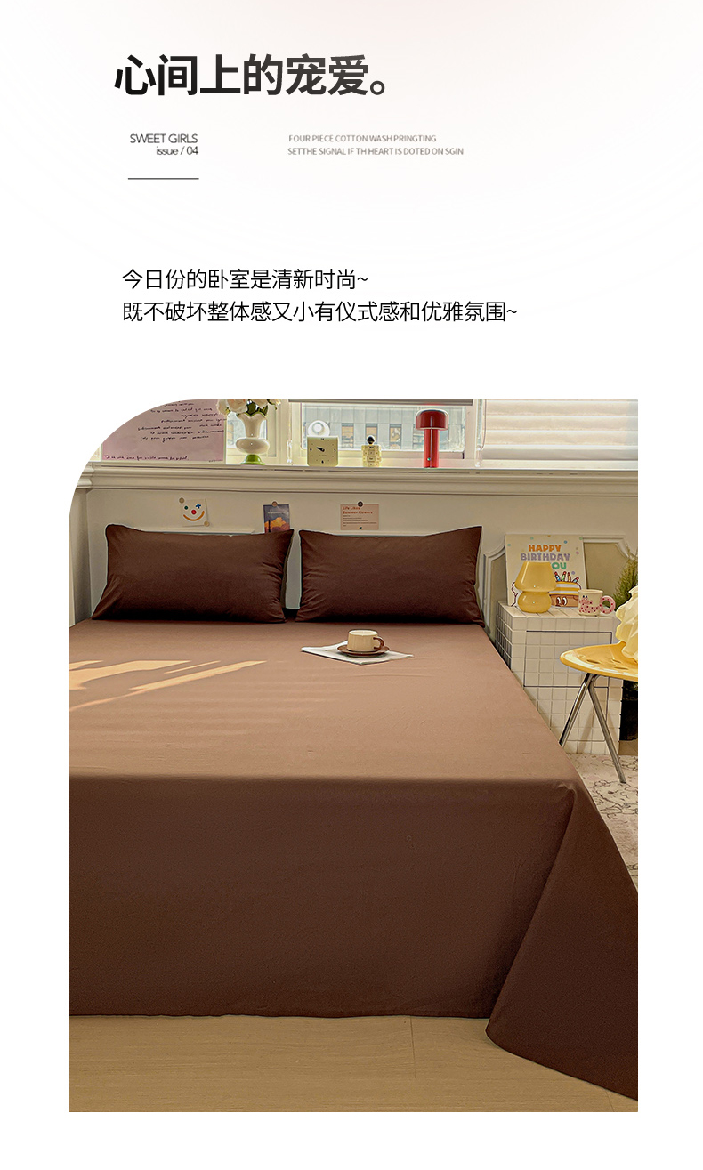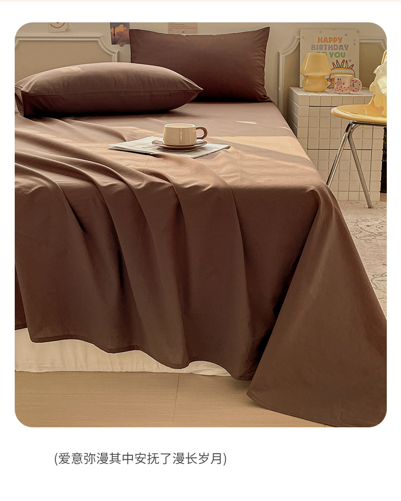 柠萌家居 2026年新款全棉A类母婴级水洗棉纯棉床单纯色系列单品 摩卡