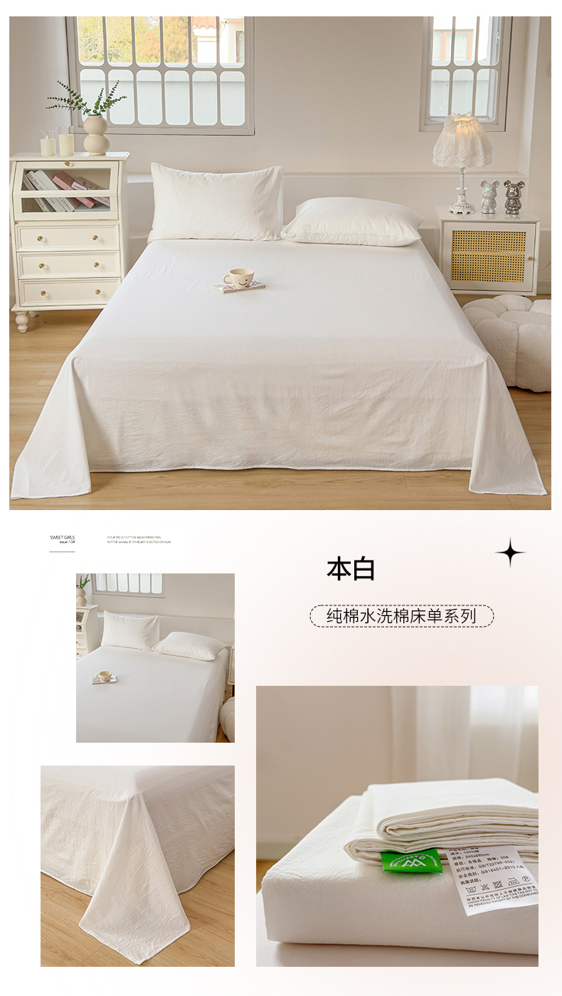 (总)柠萌家居 2026年新款全棉A类母婴级水洗棉纯棉床单纯色系列单品,宝石蓝,薄荷绿,本白,豆沙,繁星蓝,粉紫,枫叶红,高级灰,卡其,马丁桔,摩卡,奶黄,浅粉,浅灰,浅蓝,浅紫,星空蓝,中灰,紫罗兰,组合图仅供参考不可下单