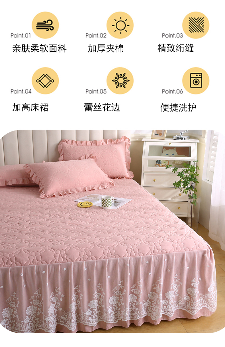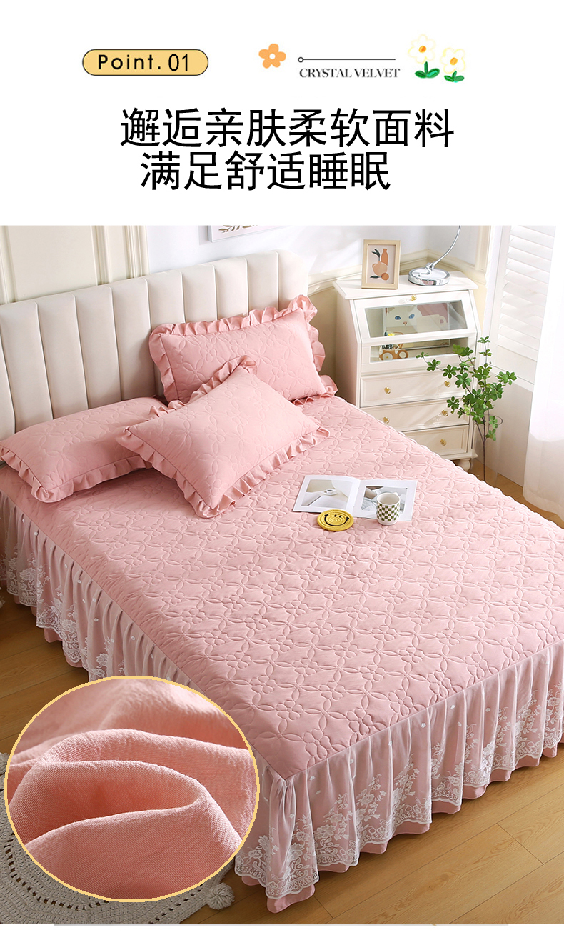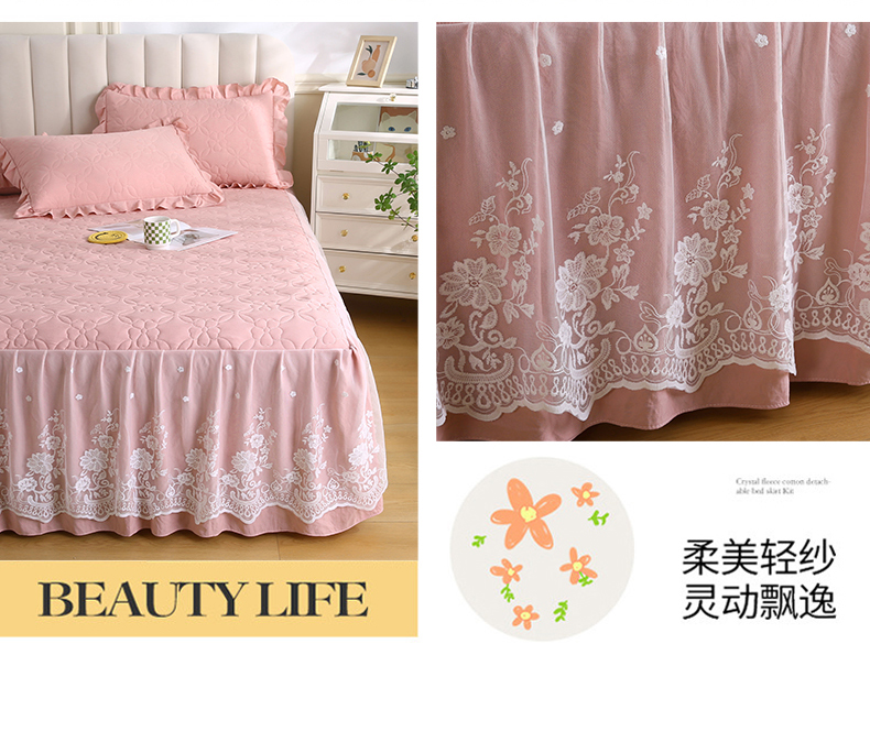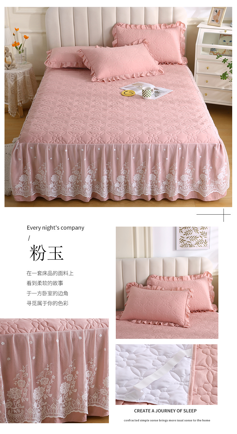 • 91家纺网 家纺一手货源 找家纺 怡源梦 2026新款清新雅致单被套床裙单品床裙单件 粉玉