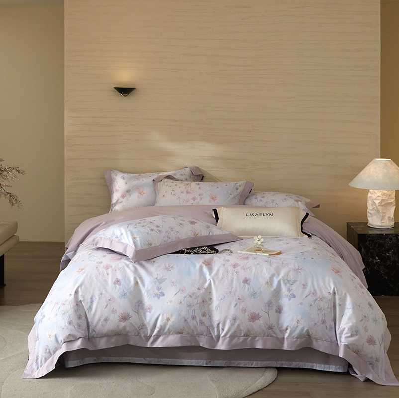 (总)薏思家纺 2025新款全棉100支数码印花生态磨毛轻奢款四件套-珍珠纽扣系列,花弄影-青,花弄影-玉,花弄影-紫,紫纱春日