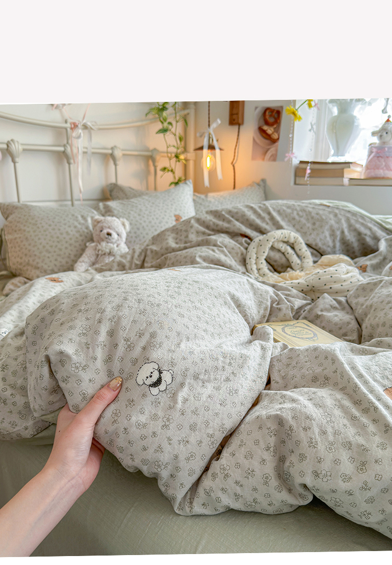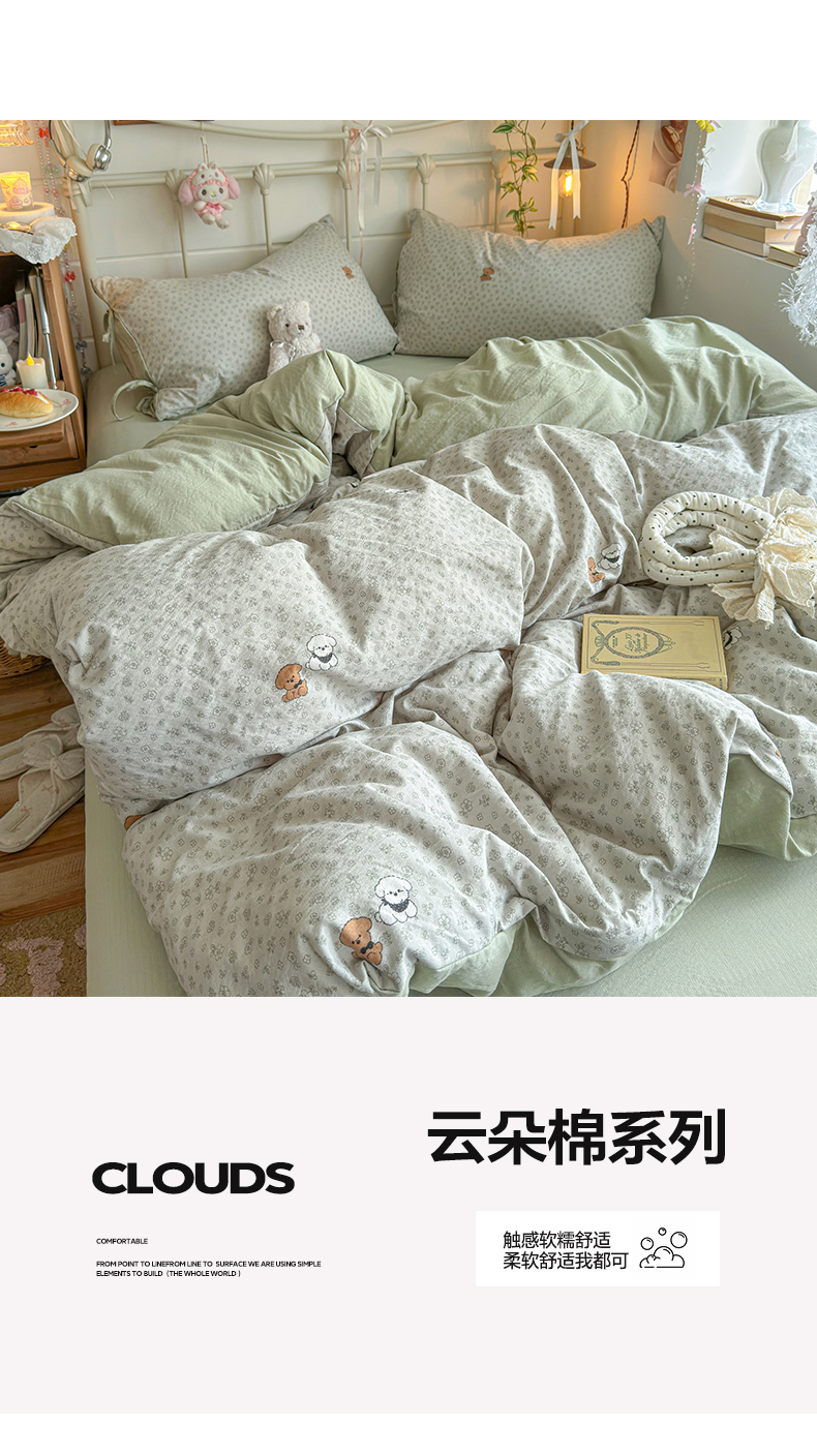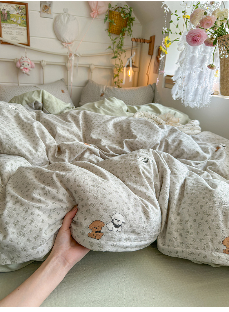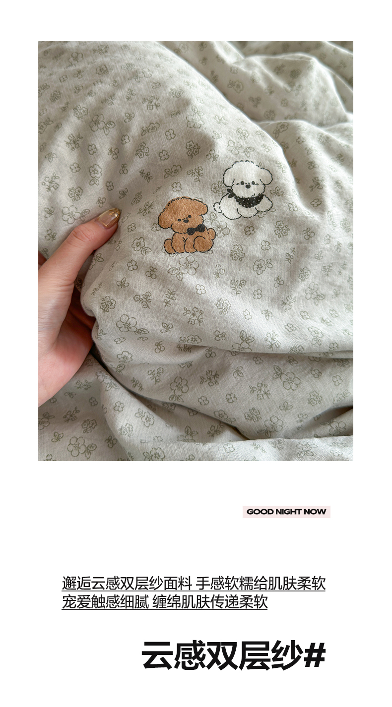 当前位置: 91家纺网 > 商品网购 > 床品套件 > 四件套 > 双层纱四件套 > 优选 2026新款小清新直播热卖款云感双层纱木棉四件套系列(小红书热款推荐) 两只汪汪