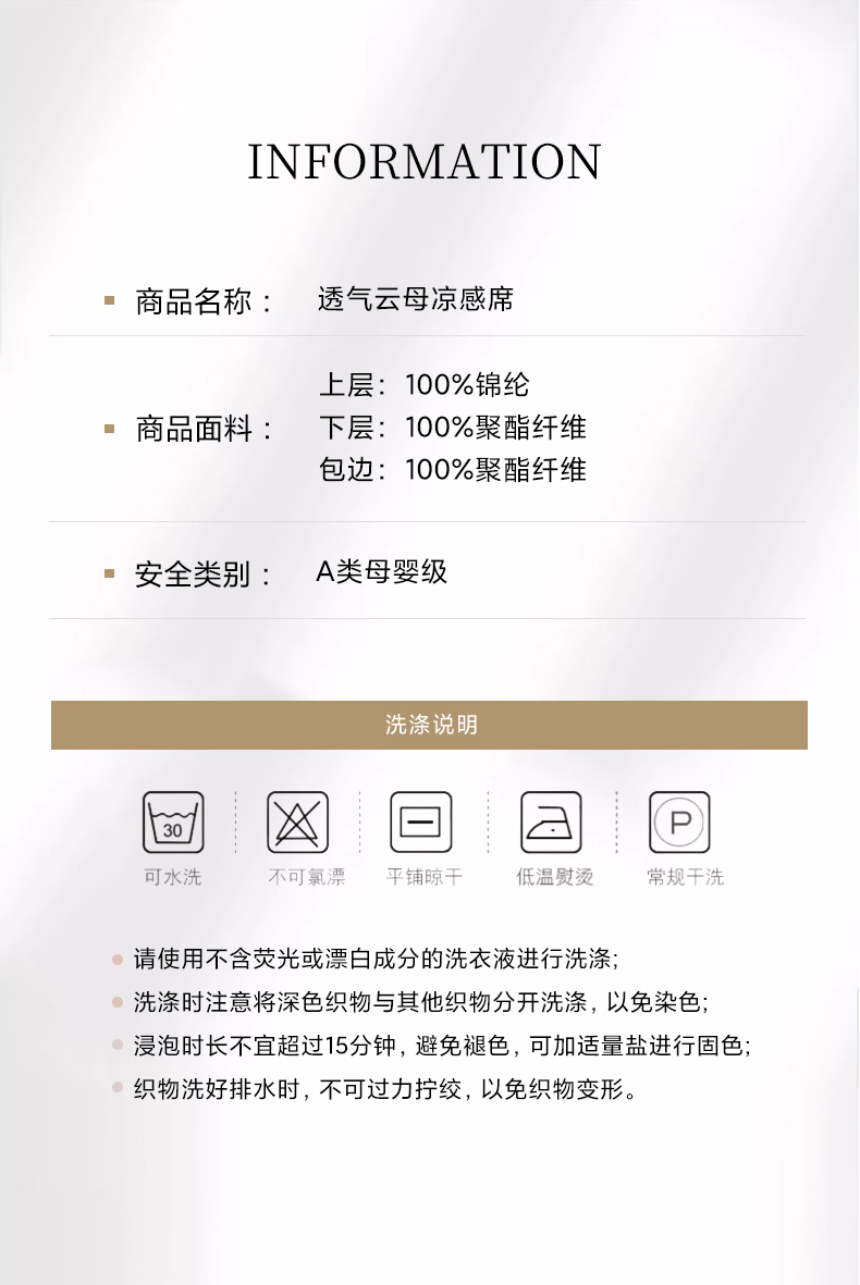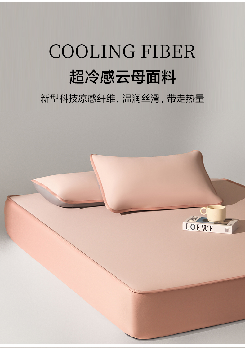 商品名称:禧澜庭 2026春夏新款锦纶凉感冰丝云母凉席可水洗折叠床笠空调席 玉桂粉