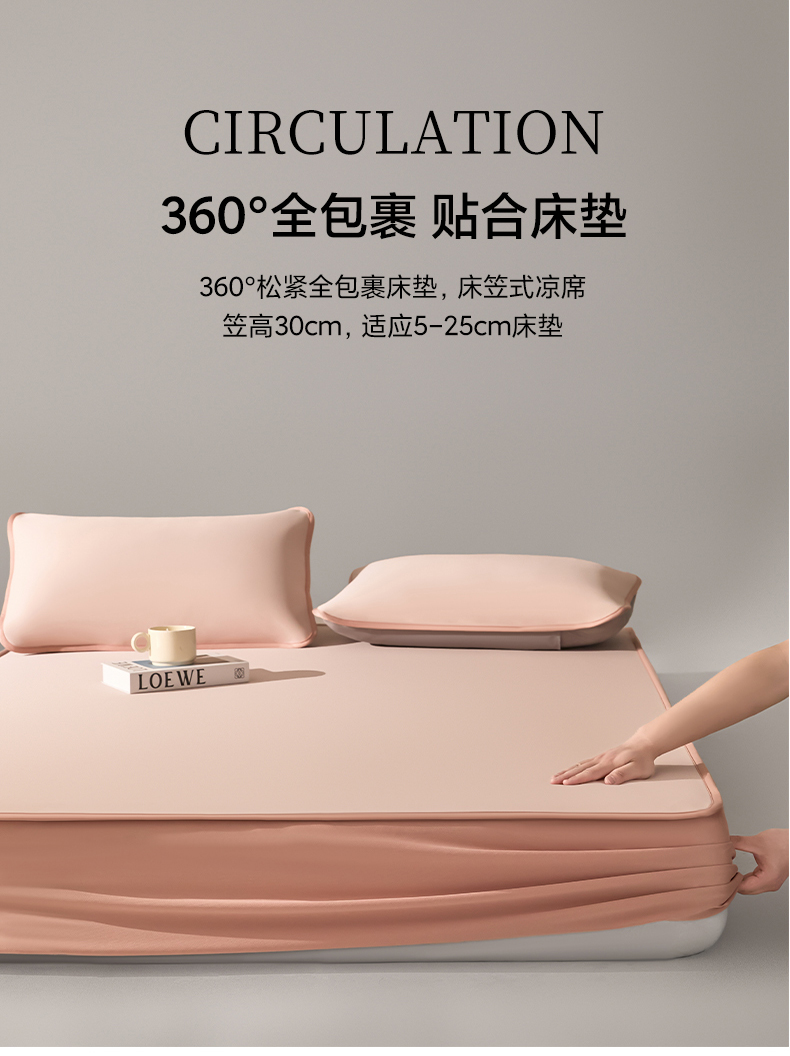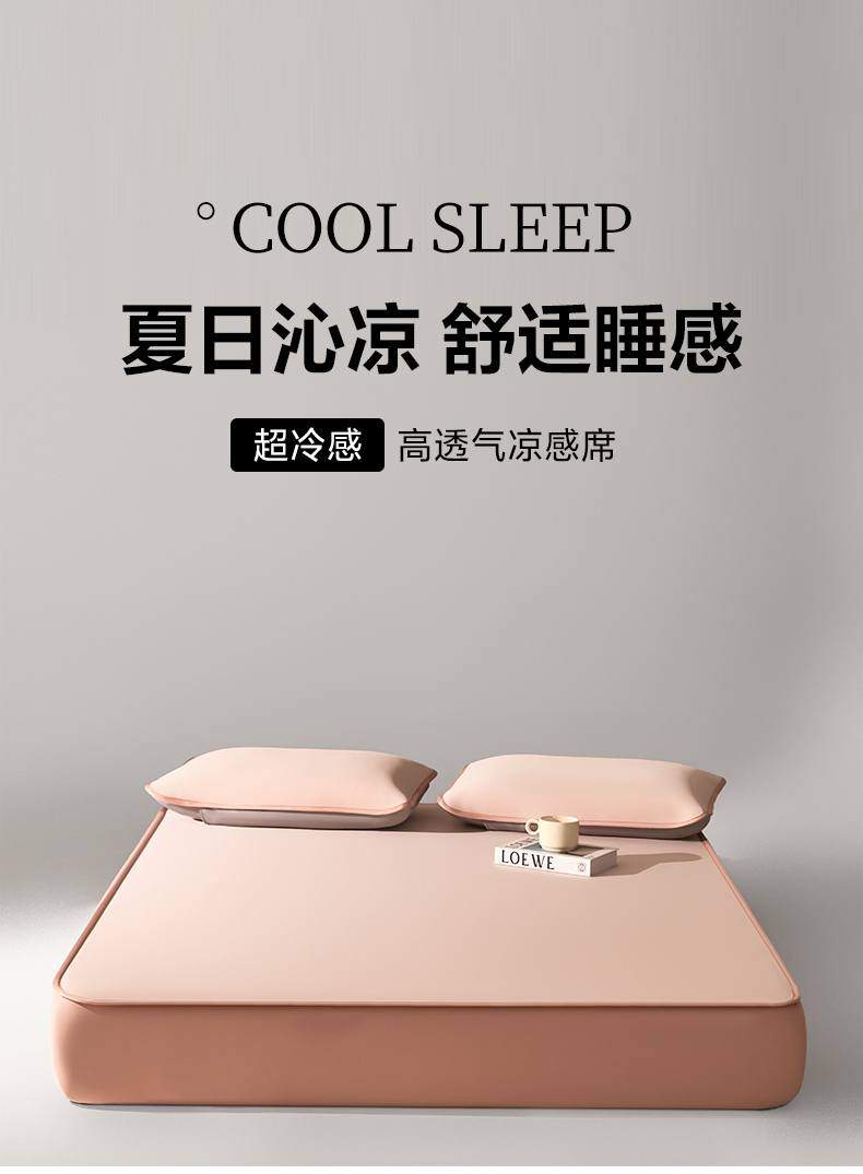 禧澜庭 2026春夏新款锦纶凉感冰丝云母凉席可水洗折叠床笠空调席 玉桂粉