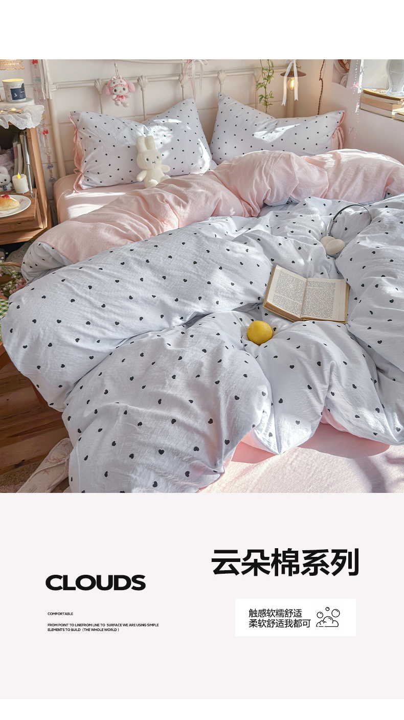 当前位置: 91家纺网 > 商品网购 > 床品套件 > 四件套 > 双层纱四件套 > 优选良品 2026新款小清新直播热卖款云感双层纱木棉四件套系列(小红书热款推荐) 洛可可