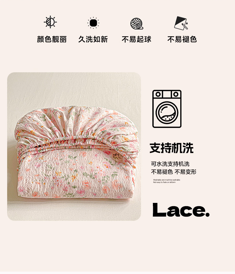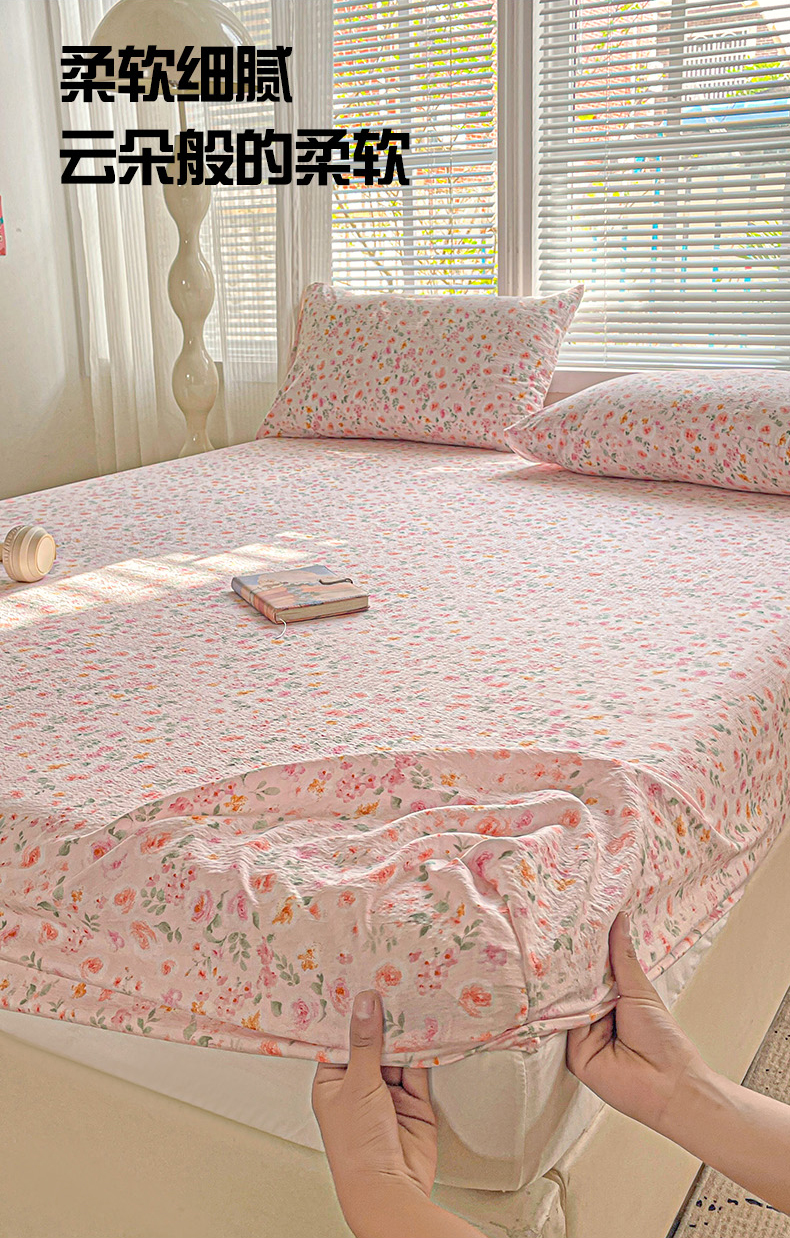 当前位置: 91家纺网 > 商品网购 > 床上用品 > 床笠 > 优选 2026新款ins小清新木棉双层纱印花床笠床垫保护罩枕套三件套 素锦