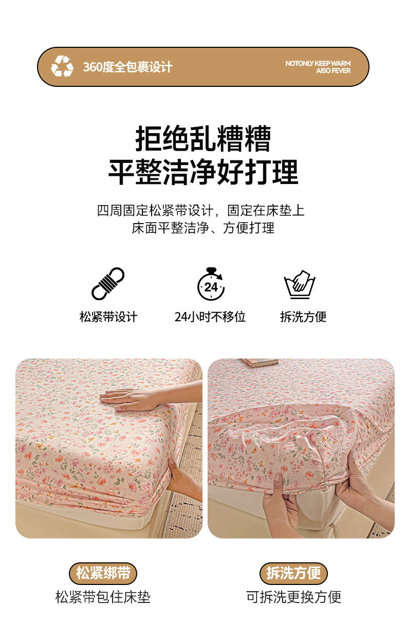 • 91家纺网 家纺一手货源 找家纺 优选 2026新款ins小清新木棉双层纱印花床笠床垫保护罩枕套三件套 素锦
