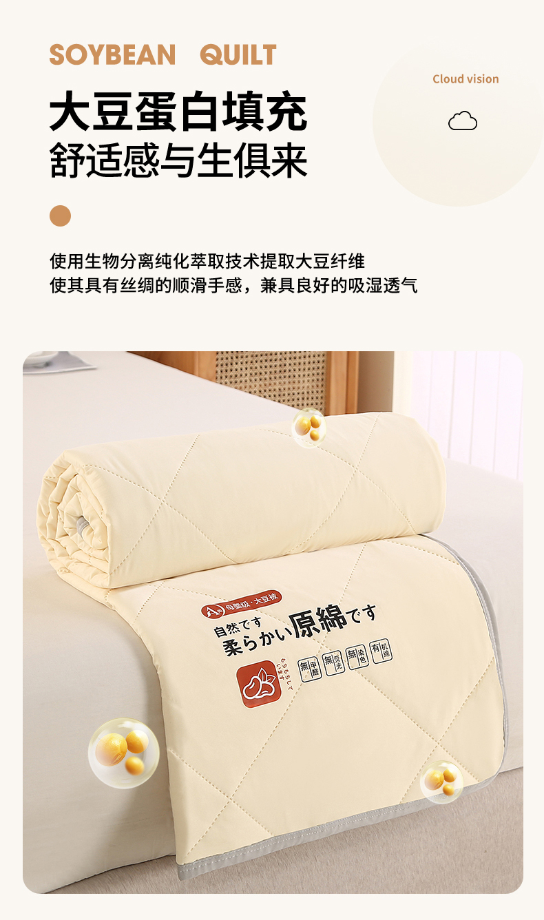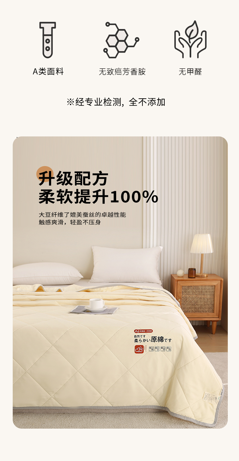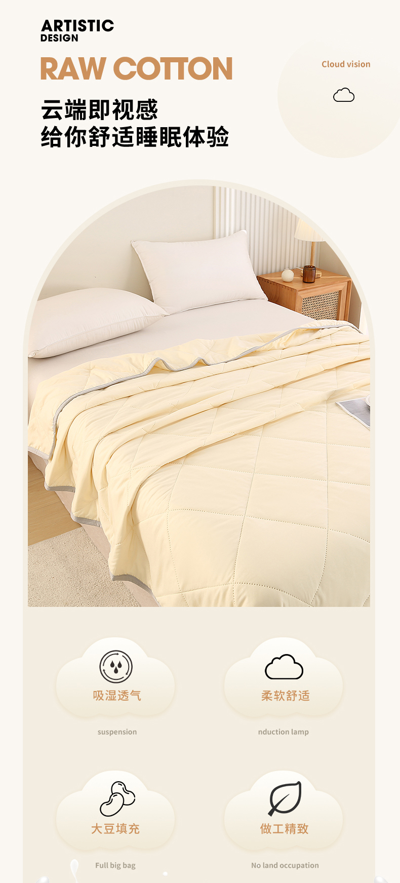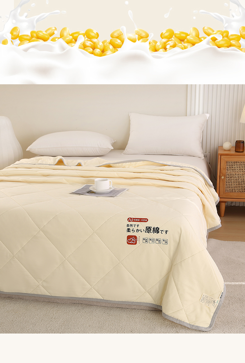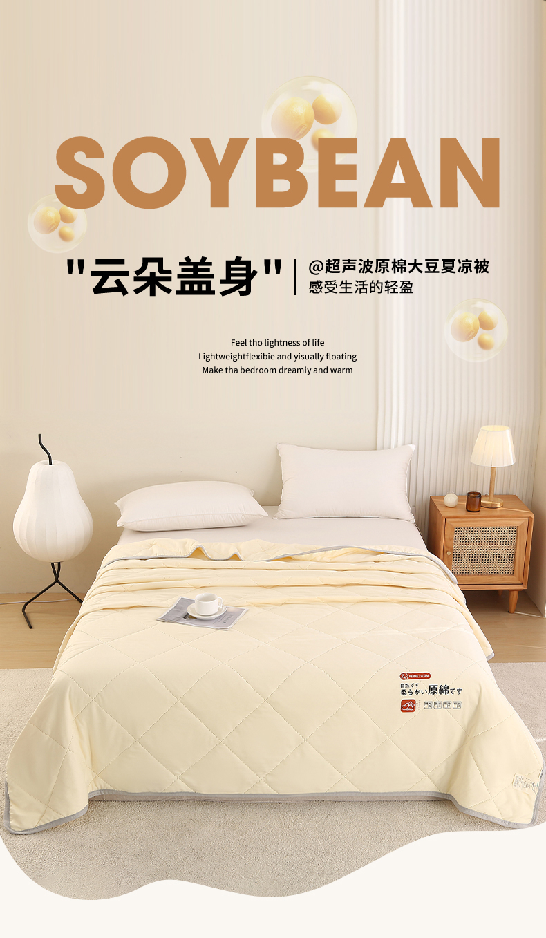 被子 > 夏被 > 薇玛仕 2026新款外贸跨境电商礼品烫画款超声波原棉大豆夏凉被空调被单双人薄被子 超声波--原棉米黄