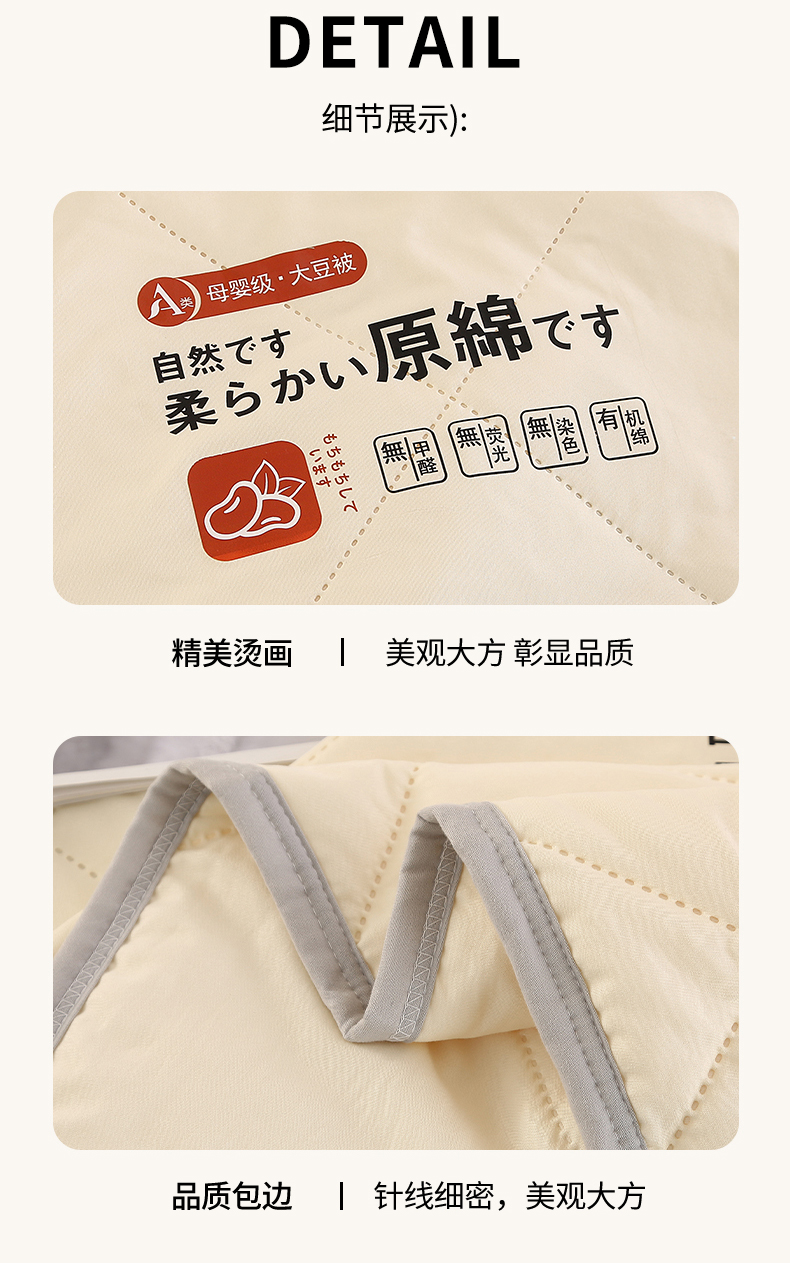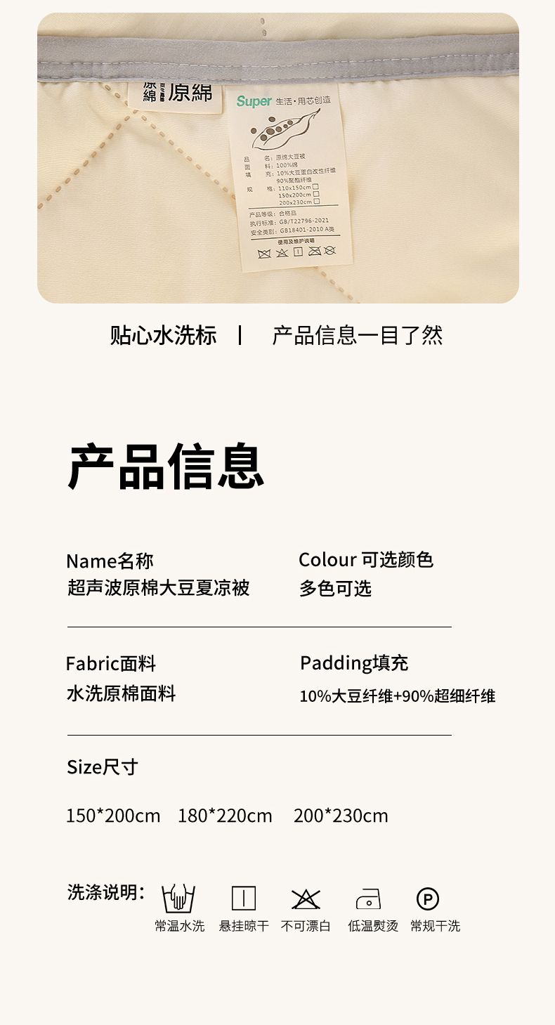 商品名称:薇玛仕 2026新款外贸跨境电商礼品烫画款超声波原棉大豆夏凉被空调被单双人薄被子 超声波--原棉米黄