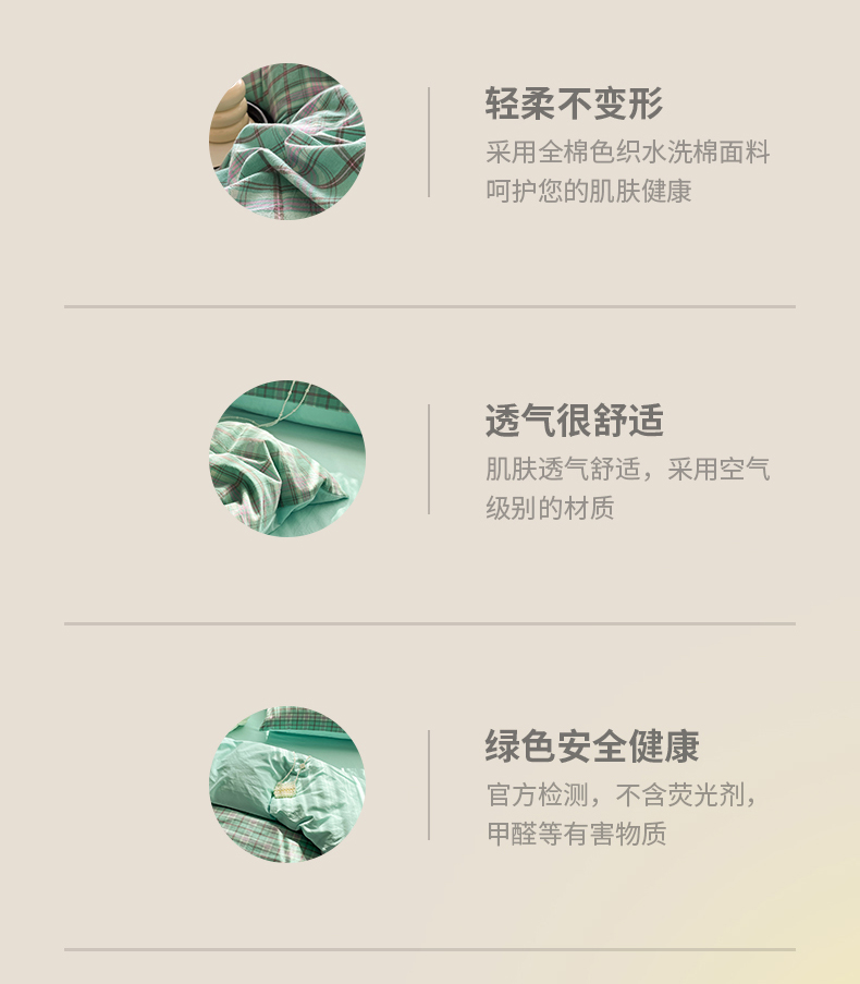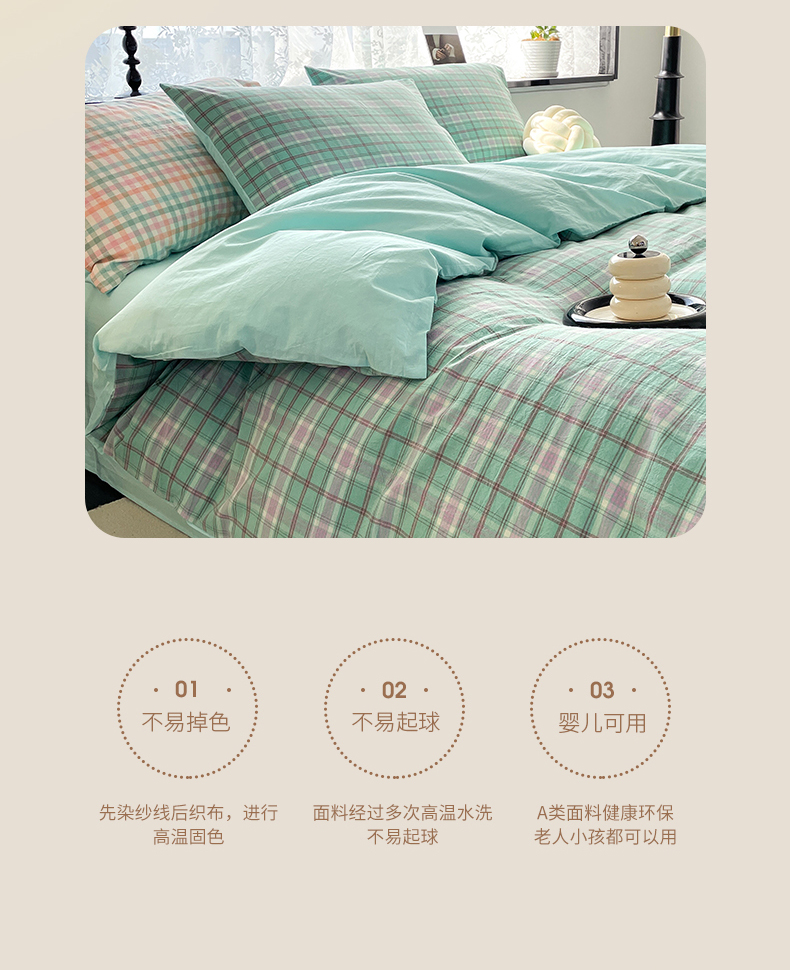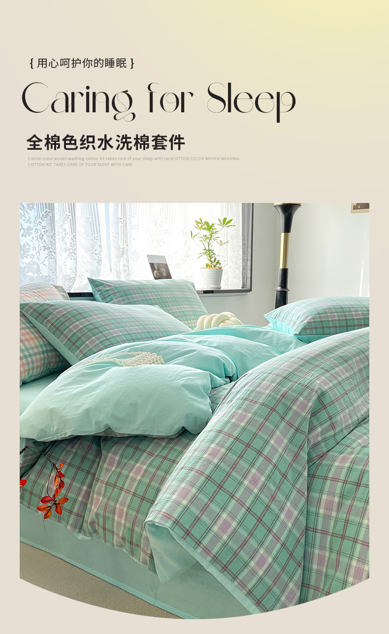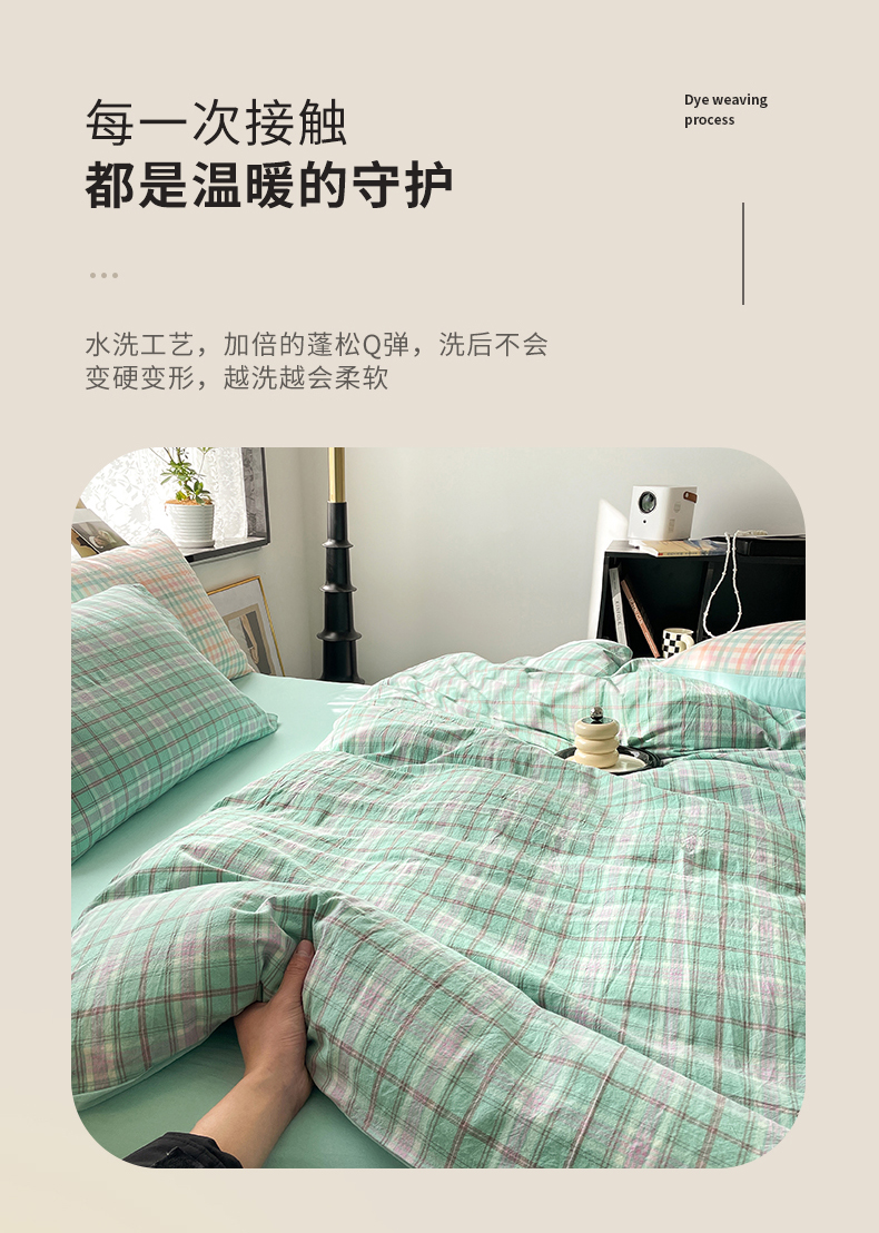当前位置: 91家纺网 > 商品网购 > 床品套件 > 四件套 > 全棉普通四件套 > 春皖家纺 2026新款色织AB版水洗棉三件套四件套单品系列(四件套风格一) 素雅-情调
