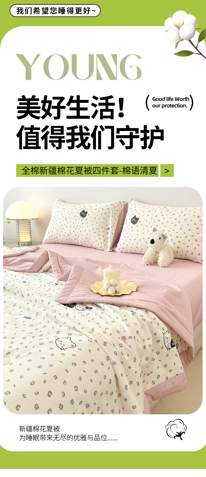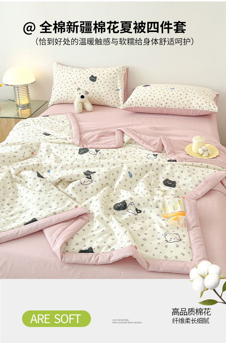 当前位置: 91家纺网 > 商品网购 > 床品套件 > 四件套 > 夏被四件套 > 一加一 2026新款全棉新疆棉花夏被夏凉被空调被四件套-棉语清夏 甜蜜伙伴