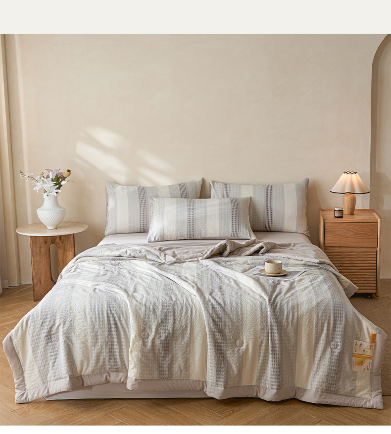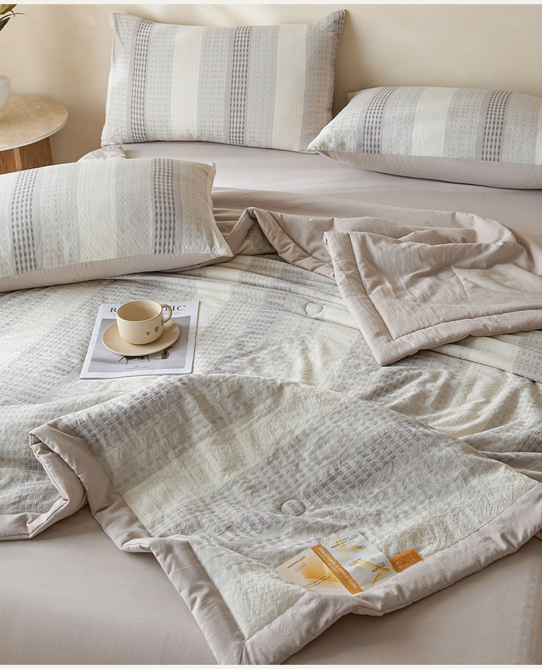• 91家纺网 家纺一手货源 找家纺 一加一 2026新款凉感提花大豆夏被夏凉被空调被四件套-简约生活 简约生活-灰
