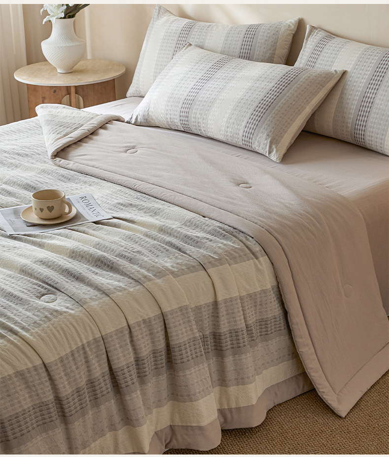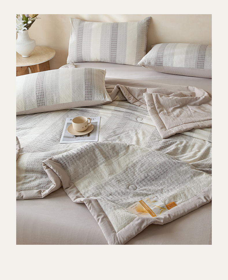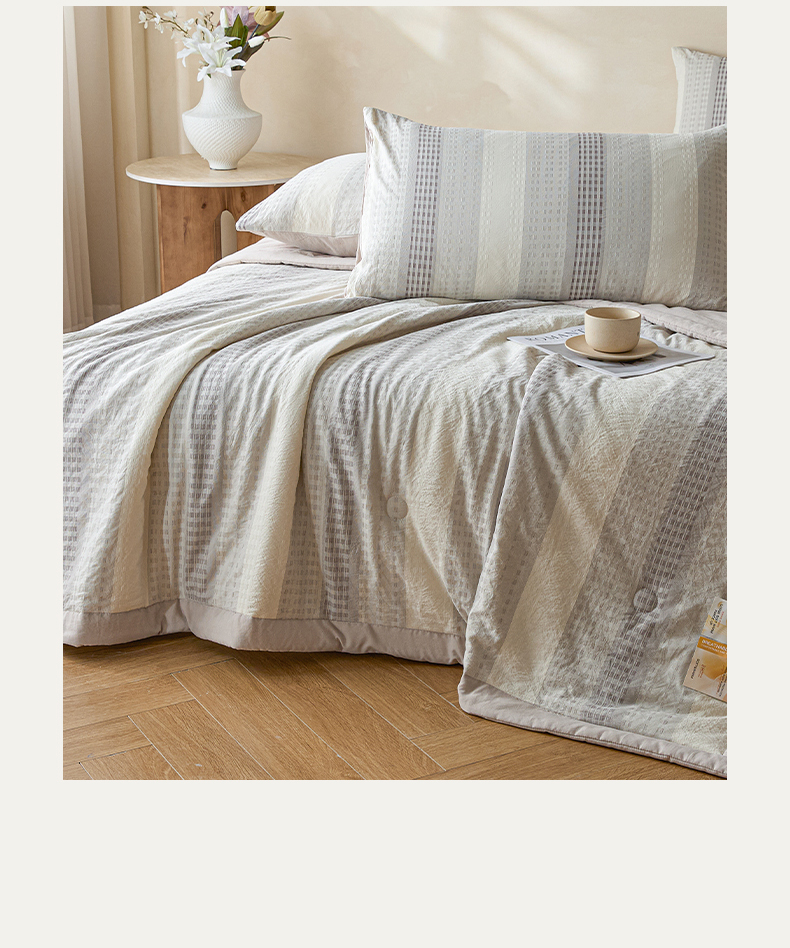 (总)一加一 2026新款全棉无印超柔水洗色织凉感夏被四件套-日式云柔,冬至白,秋分白,秋分咖,小满灰,小满棕