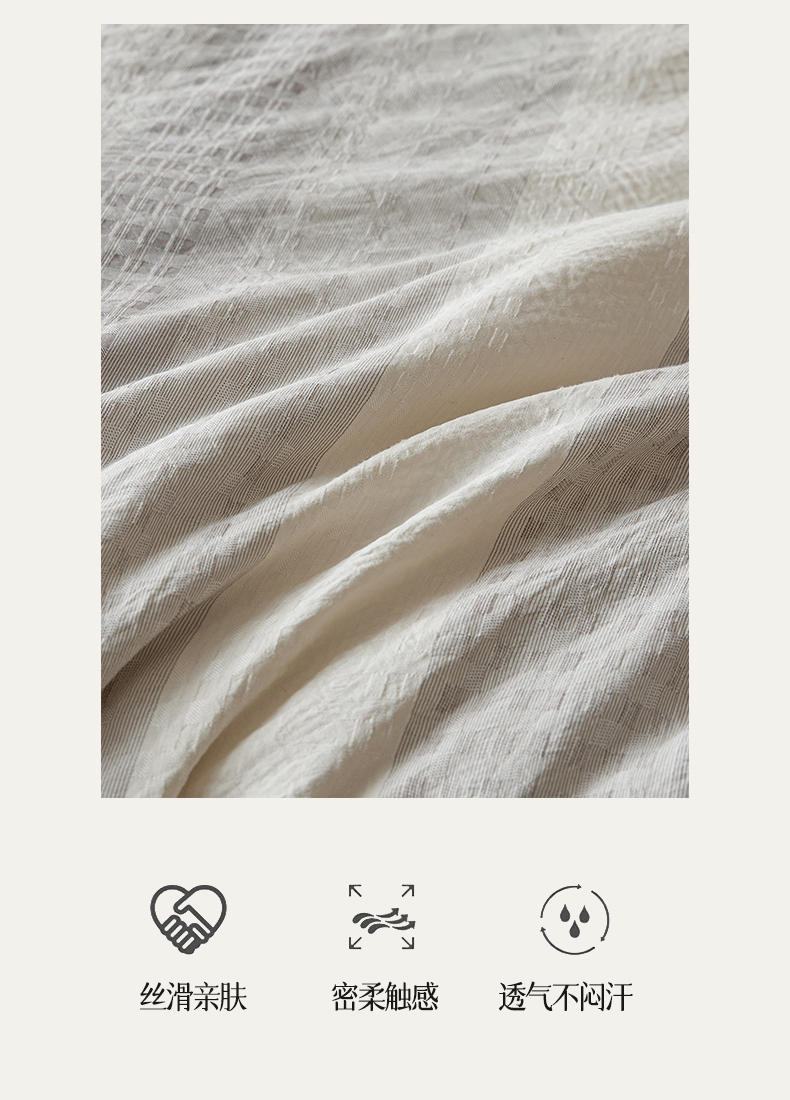 • 91家纺网 家纺一手货源 找家纺 (总)一加一 2026新款全棉无印超柔水洗色织凉感夏被四件套-日式云柔,冬至白,秋分白,秋分咖,小满灰,小满棕